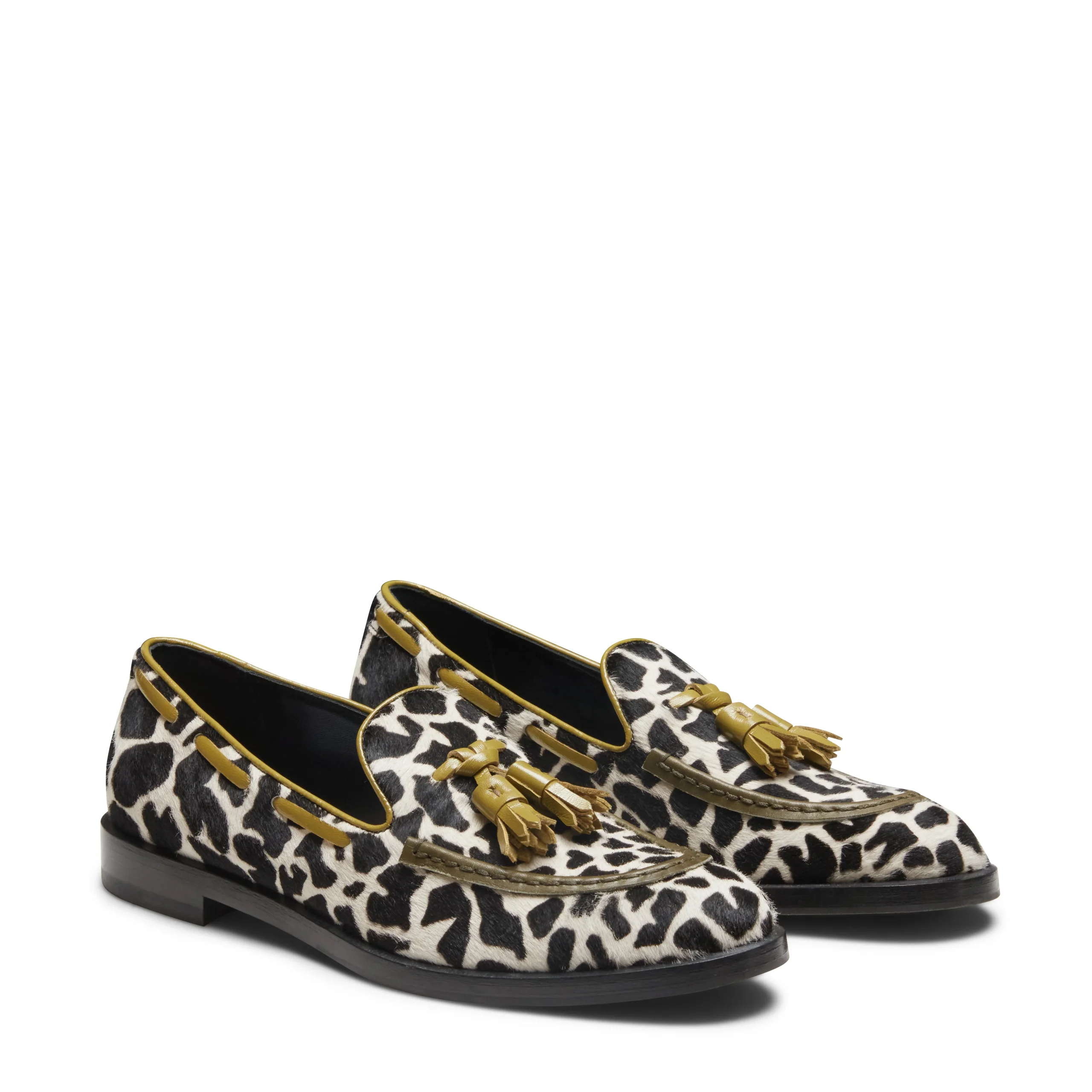Iconico mocassino Brera realizzato in morbida pelle effetto horsy in una sofisticata fantasia animalier. Si caratterizza per gli abbinamenti dei dettagli presenti sulla tomaia, il giro mocassino e le nappine sono in colore a contrasto tra loro. Suola in cuoio con mezzo tacco in gomma. br>Art. 68126