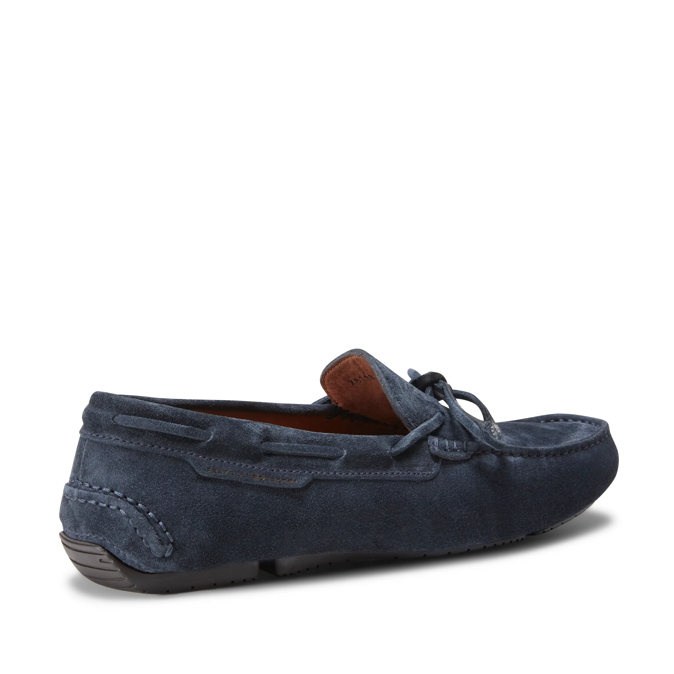 Mocassino driver con lavorazione tubolare realizzato in morbida pelle scamosciata color blu marine. La tomaia è caratterizzata da cuciture a mano e da lacci in suede. Calzatura fresca e leggera perfetta per un look estivo dinamico.Art. 28138
