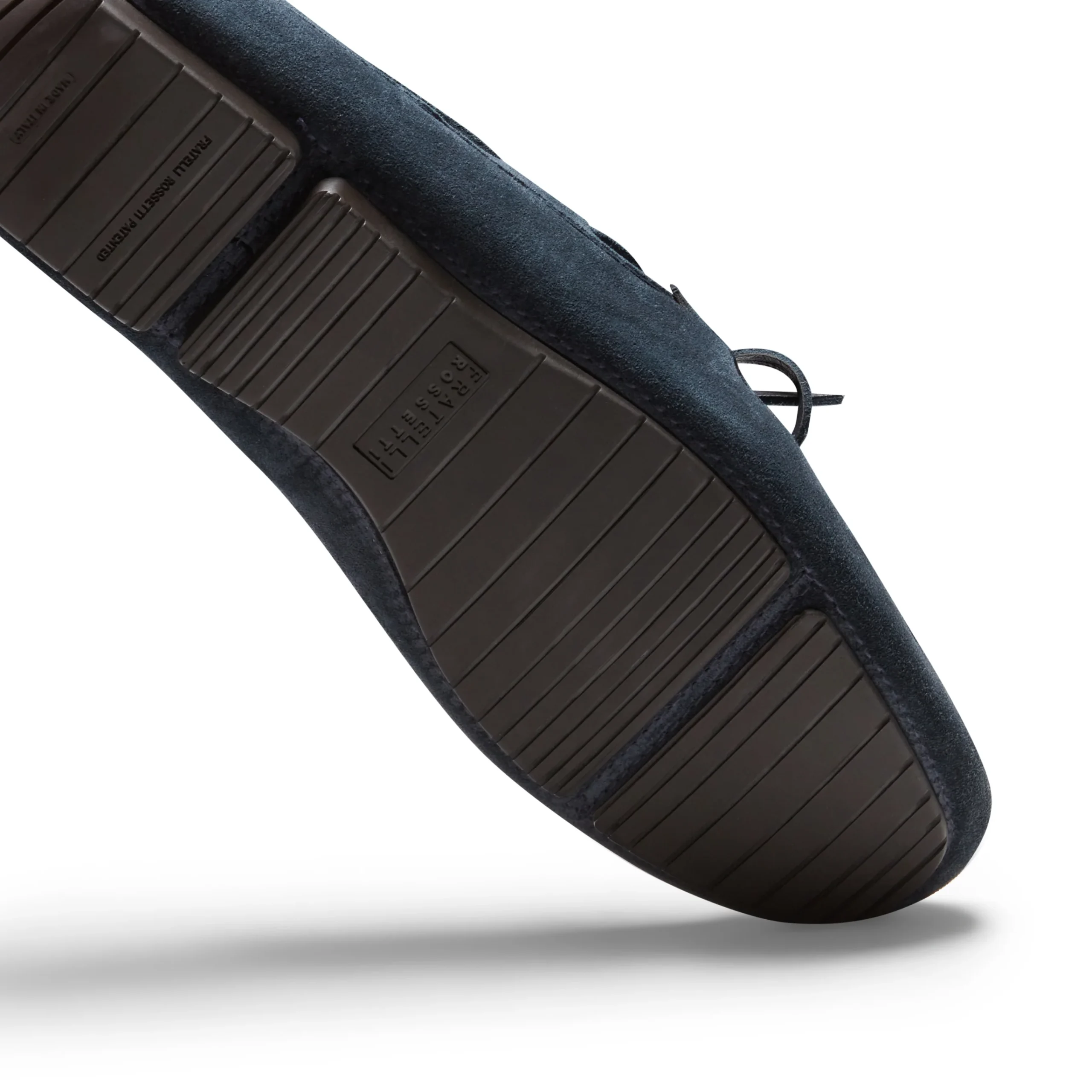 Mocassino driver con lavorazione tubolare realizzato in morbida pelle scamosciata color blu marine. La tomaia è caratterizzata da cuciture a mano e da lacci in suede. Calzatura fresca e leggera perfetta per un look estivo dinamico.