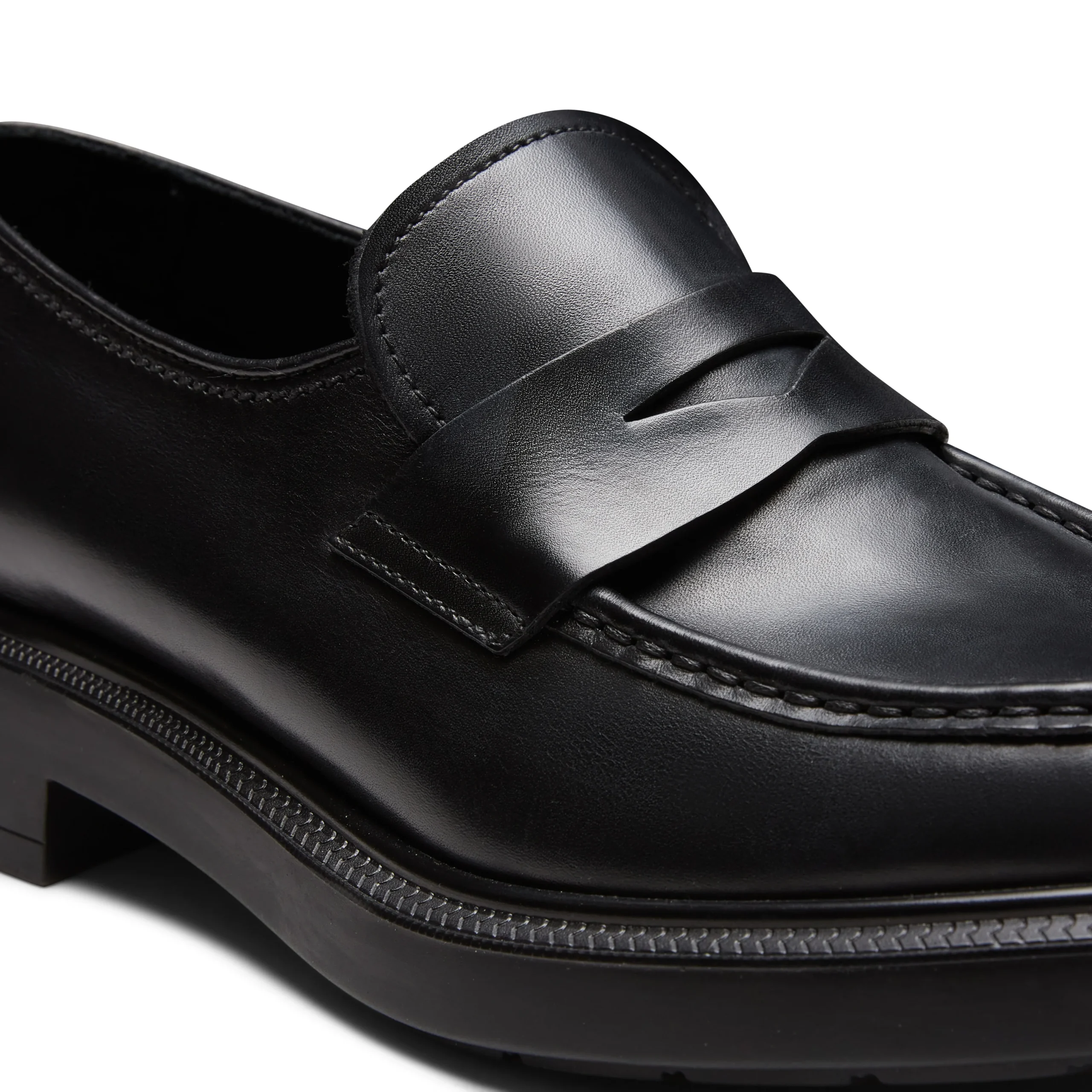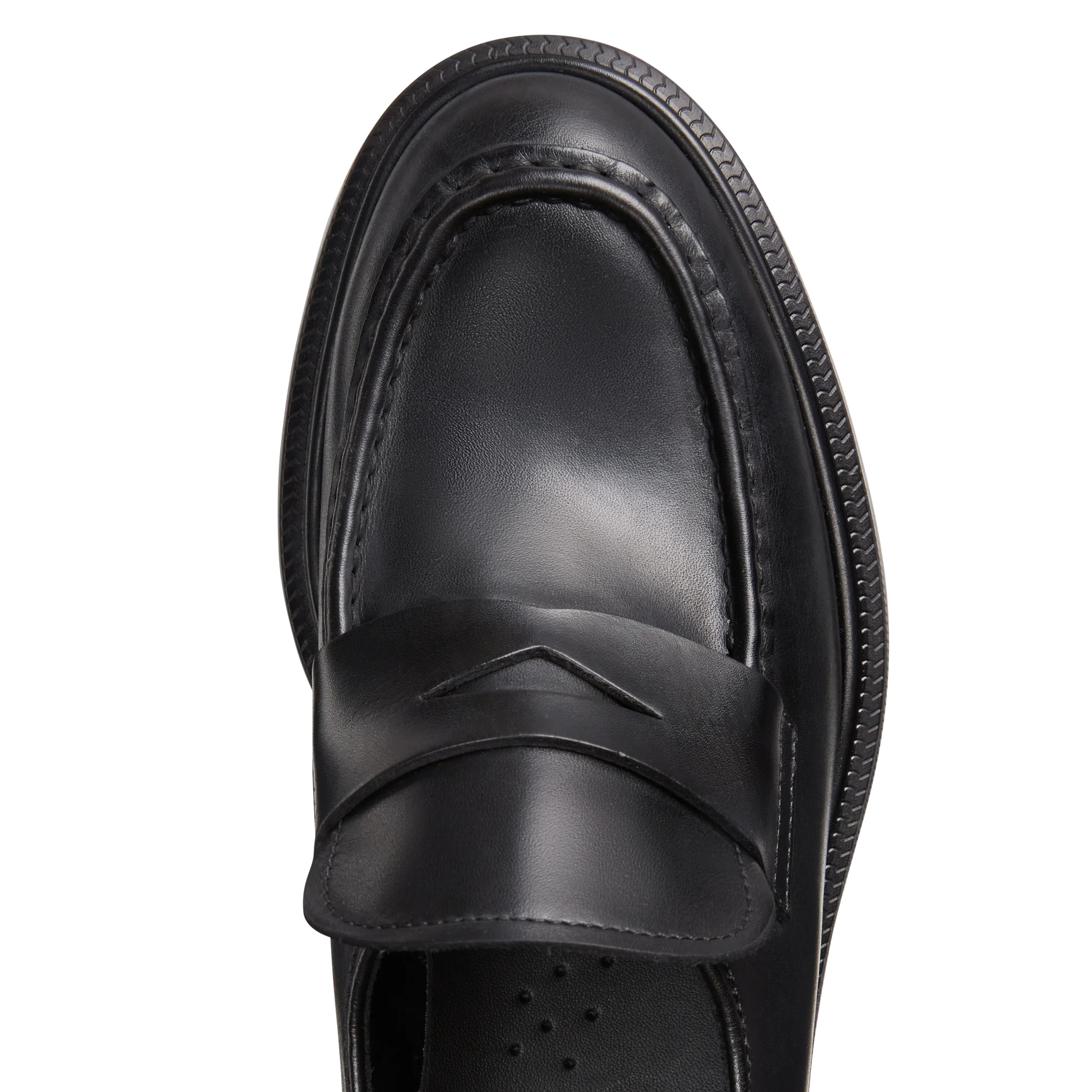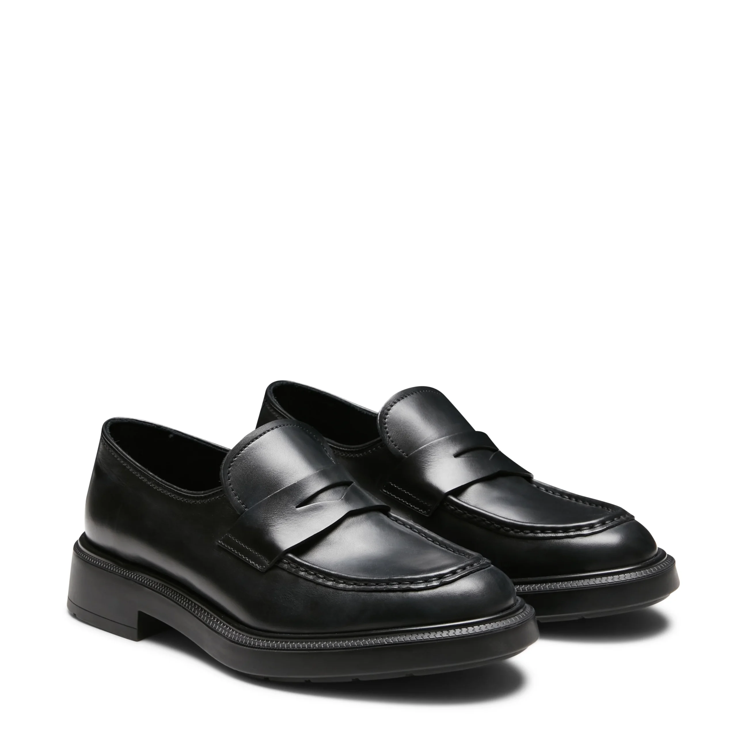 Mocassino con fascetta realizzato in morbida pelle liscia nera con leggero effetto anticato. Caratterizzato da un look maschile ed essenziale, ispirato alla tradizione anglosassone. La suola in gomma leggera e resistente assicura comfort, rendendo questa calzatura funzionale e versatile.