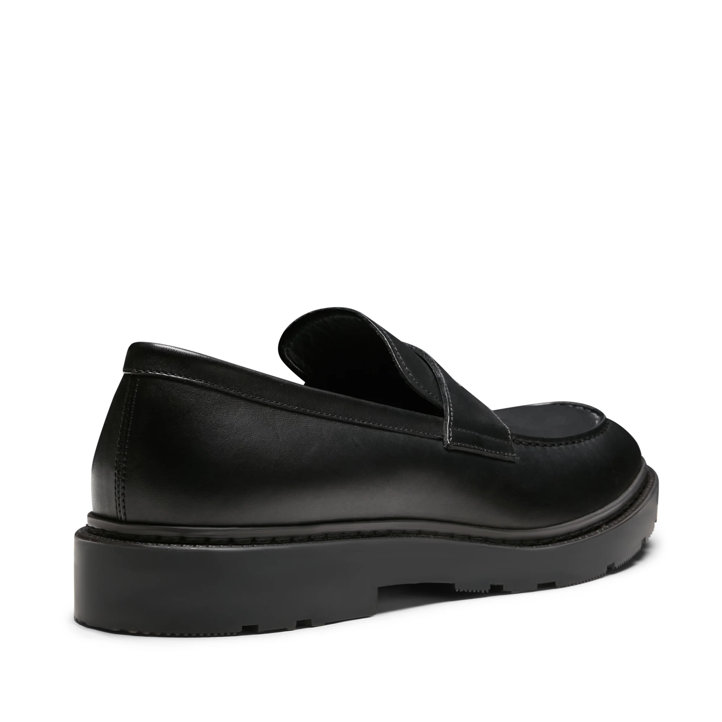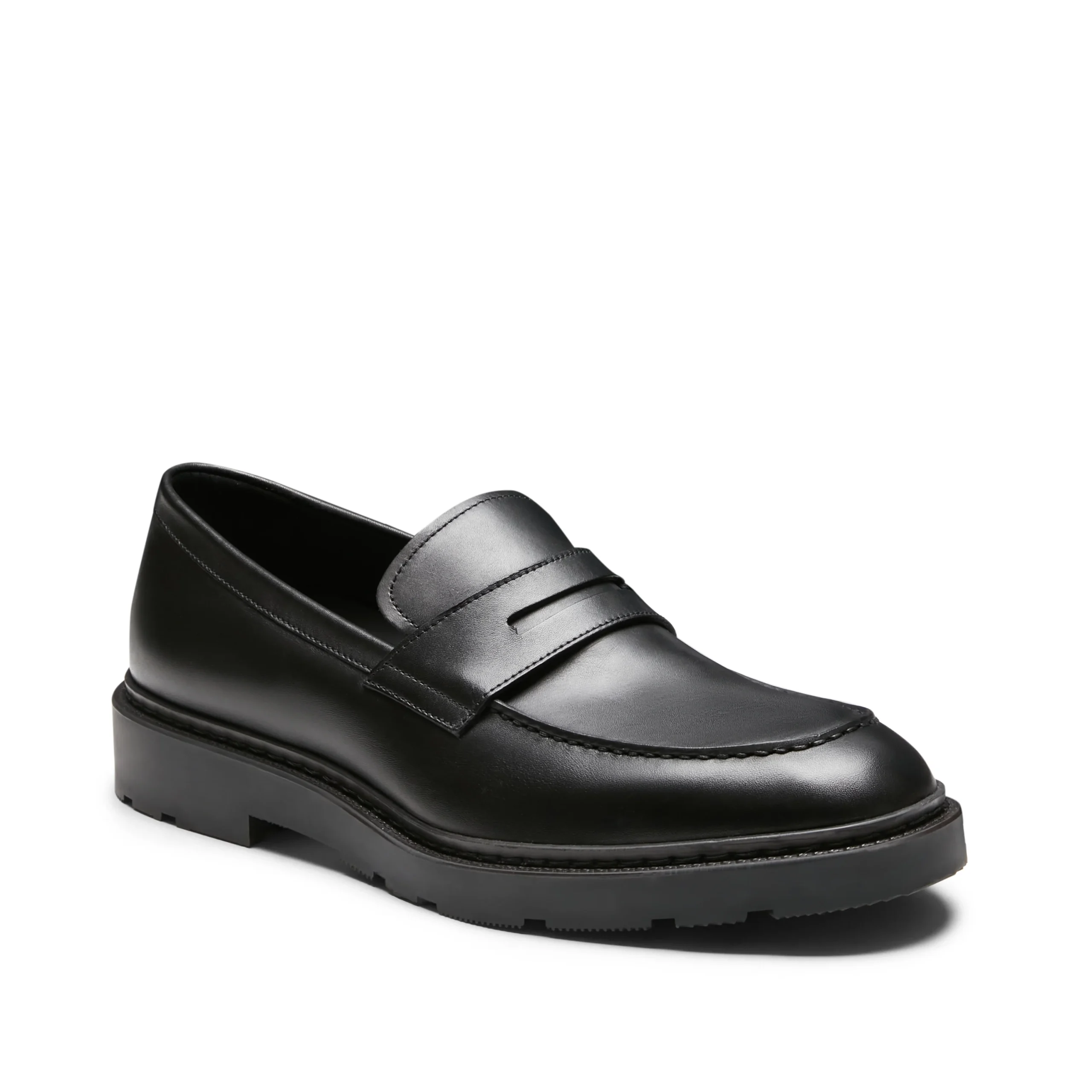 Mocassino a fascetta con bordo accentuato e forma arrotondata, realizzato in pelle liscia nera con un leggero effetto anticato Calzatura dallo stile classico ed esclusivo, un perfetto connubio tra aspetto formale e carattere distintivo. Suola in poliuretano con guardolo cucito a mano, caratterizzata da uno strato superiore morbido e flessibile per il comfort del piede, il battistrada garantisce invece robustezza e grip antiscivolo.