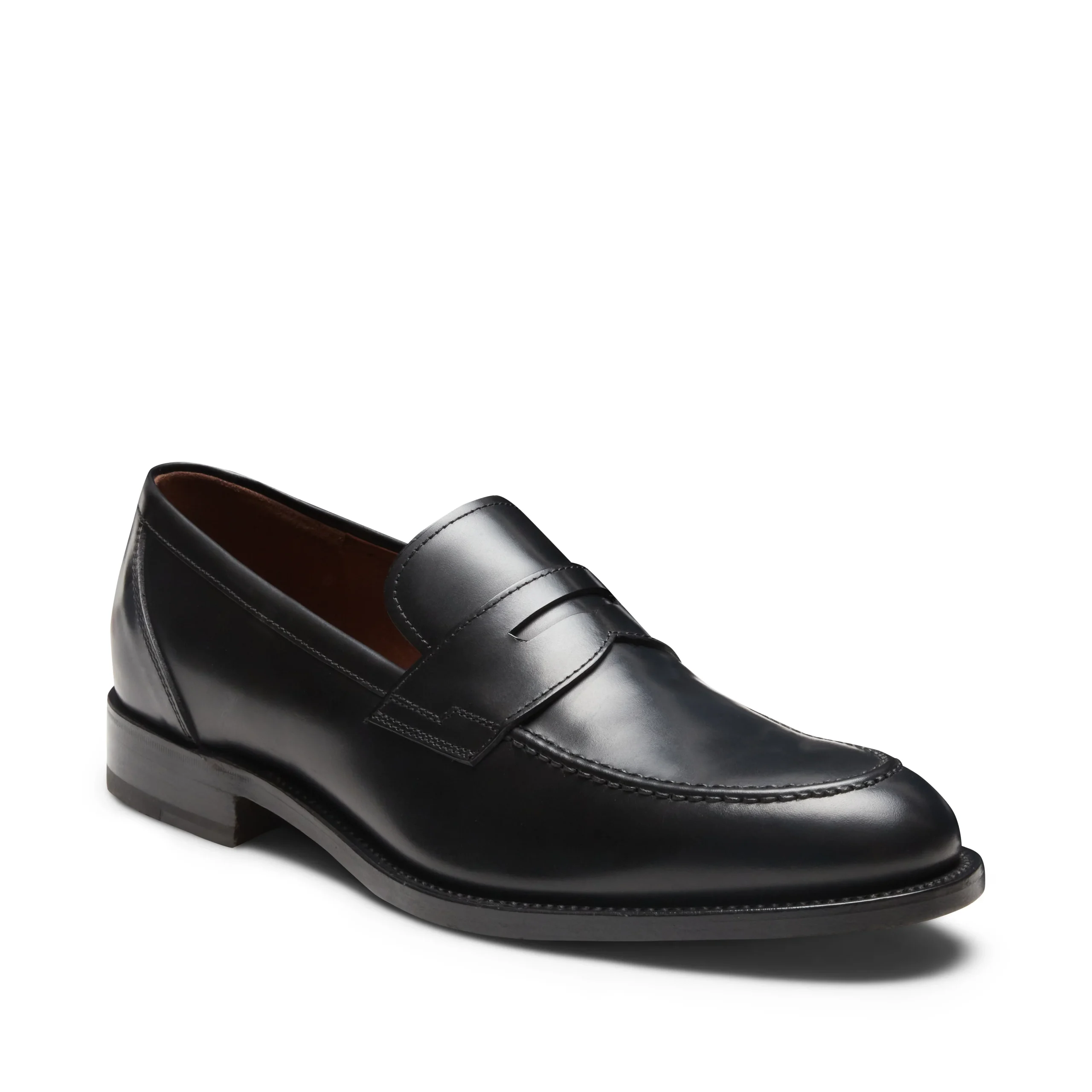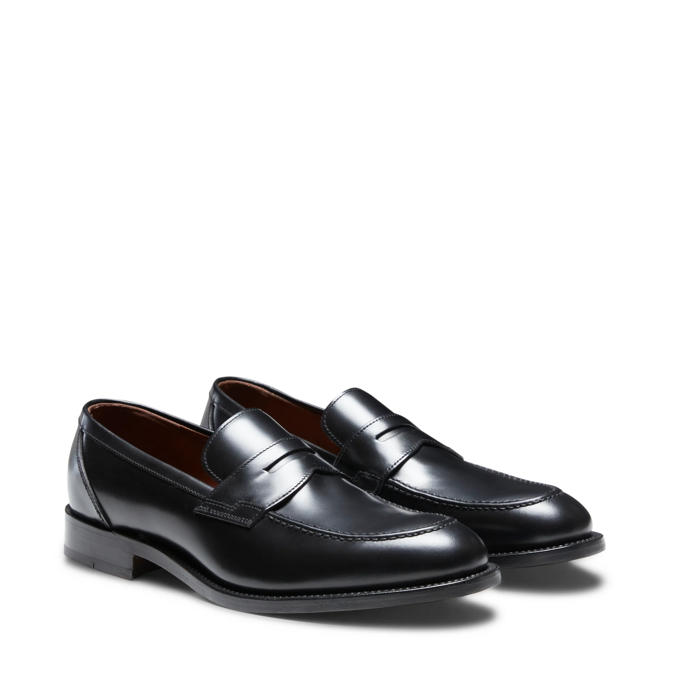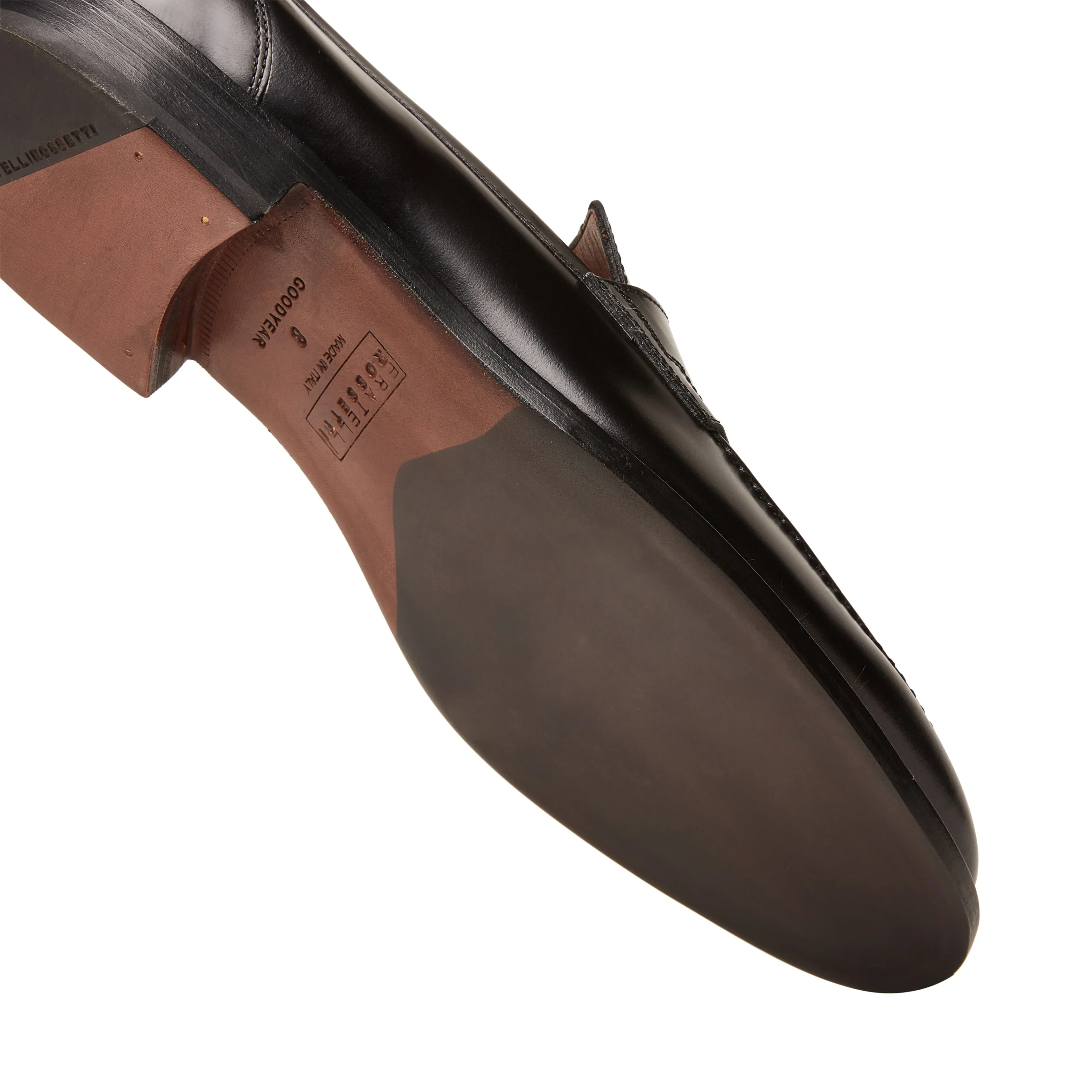 Mocassino con fascetta sobrio ed elegante, ispirato alle forme tradizionali anglosassoni. Realizzato in pelle liscia nera rifinita con spazzolatura abrasiva che conferisce lucentezza e una maggiore intensità cromatica su punta e tallone. Suola in cuoio caratterizzata dalla pregevole lavorazione Goodyear che garantisce comfort e durata nel tempo.