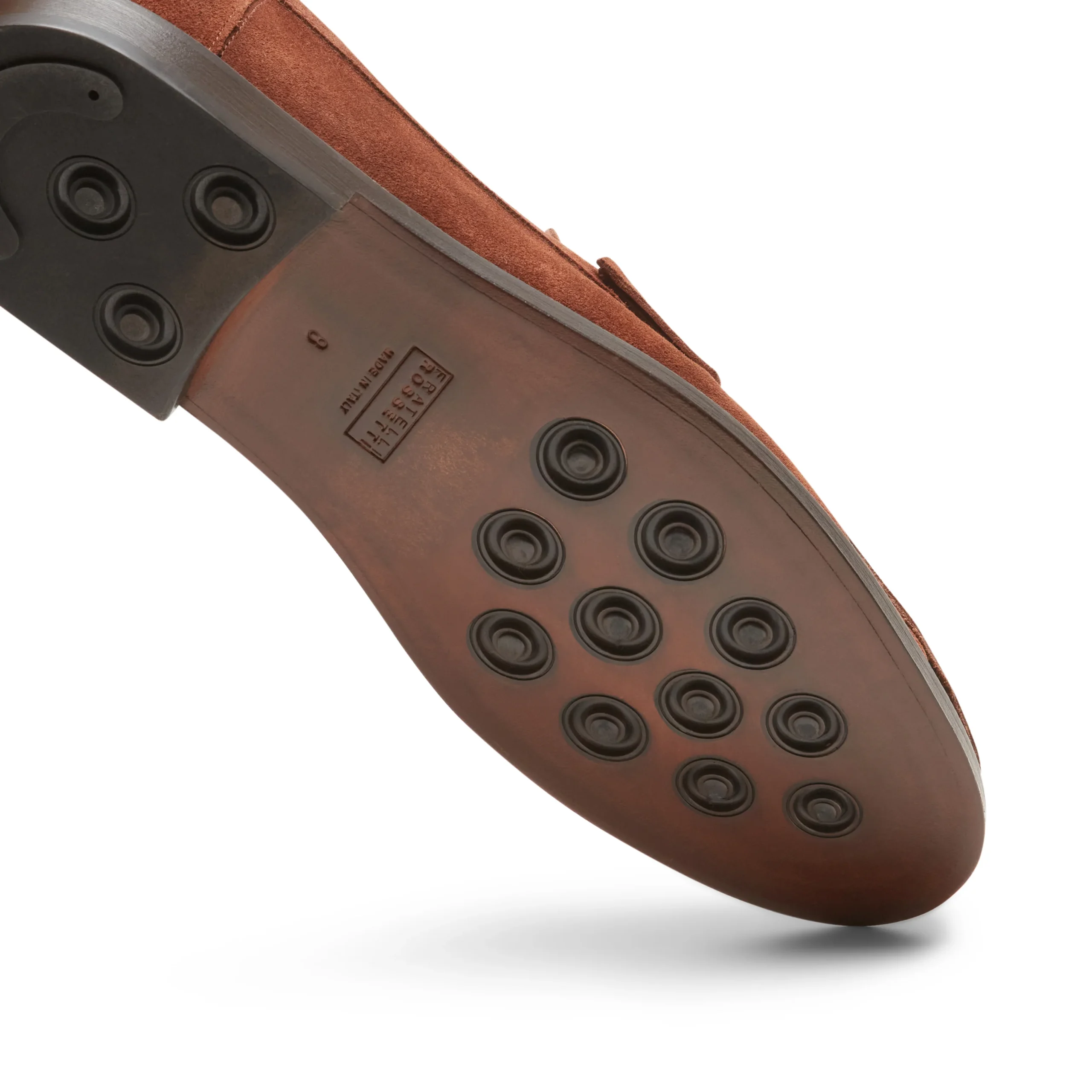 Mocassino con fascetta a costruzione tubolare realizzato in morbida pelle scamosciata con trattamento idrorepellente color cacao. Calzatura estremamente versatile e ricercata con dettaglio di cuciture a mano. Suola in cuoio e mezzo tacco in gomma.