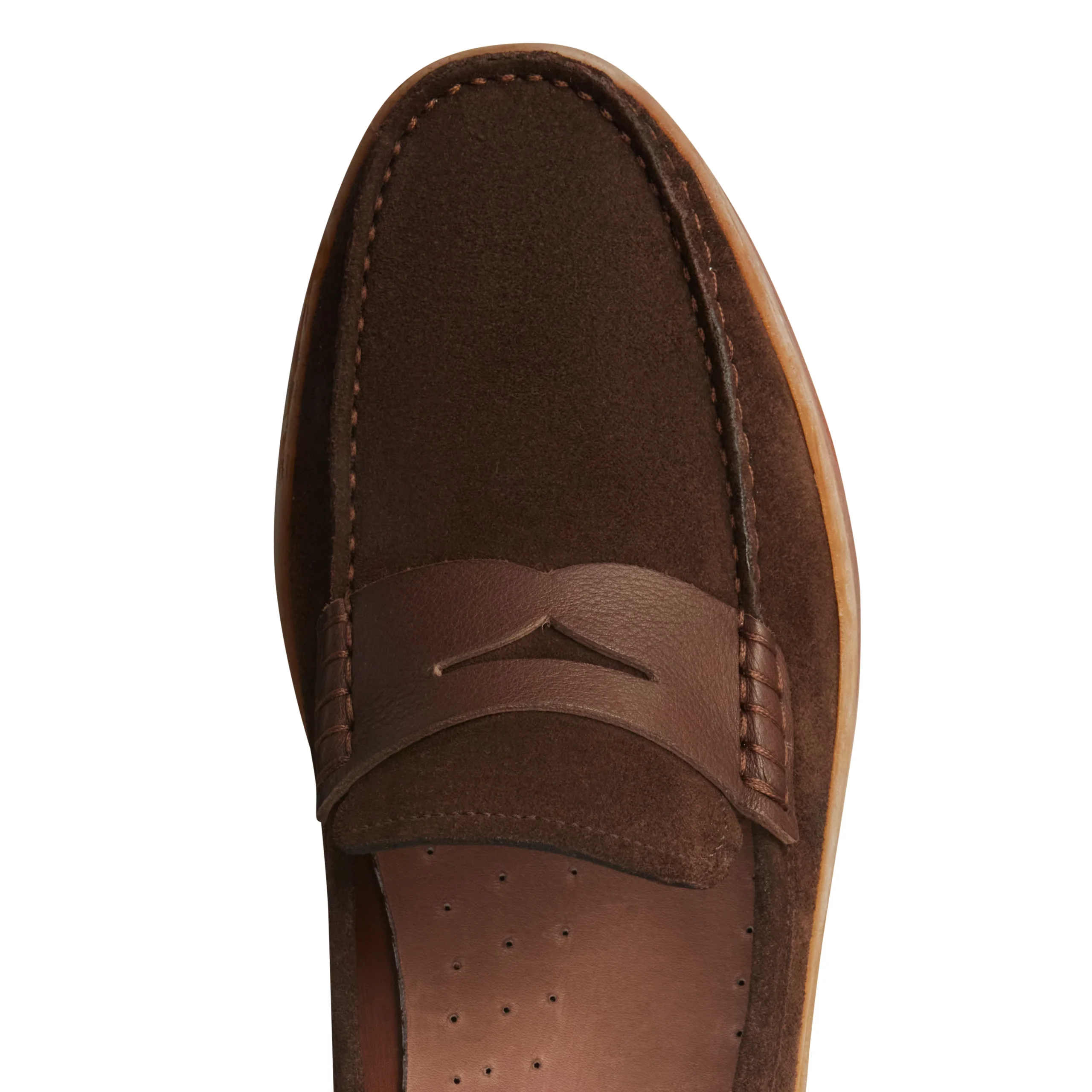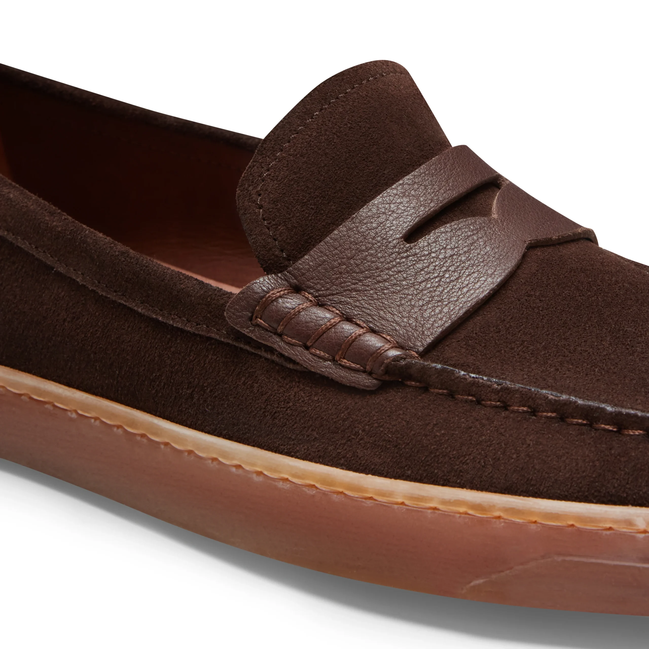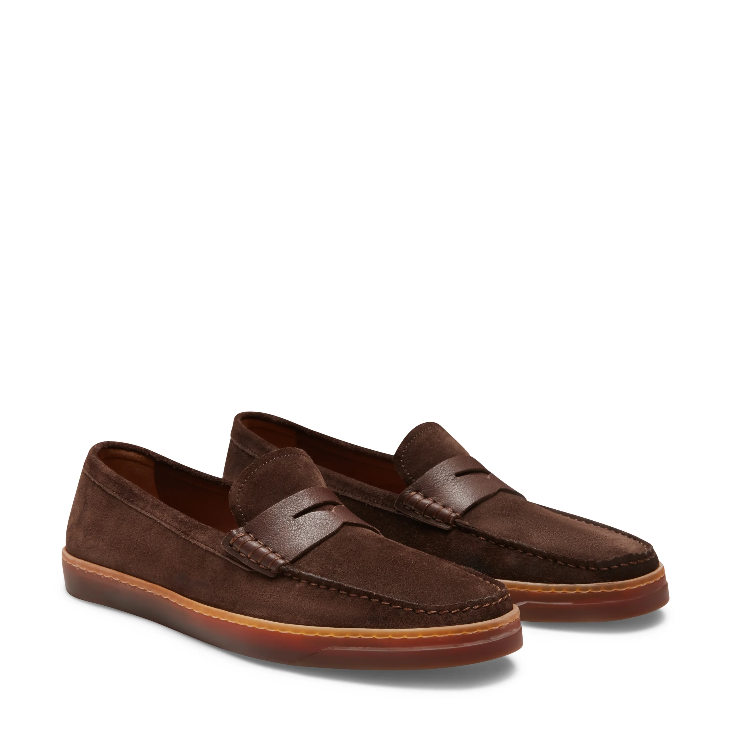 Mocassino con fascetta realizzato in morbida pelle scamosciata marrone, caratterizzato da costruzione tubolare. Questa particolare lavorazione prevede che la tomaia venga intagliata e cucita direttamente sulla forma, con successiva applicazione della mascherina, conferendo alla calzatura un’estetica ricercata e versatile. Il fondo in gomma naturale super flessibile garantisce estrema leggerezza e comfort.