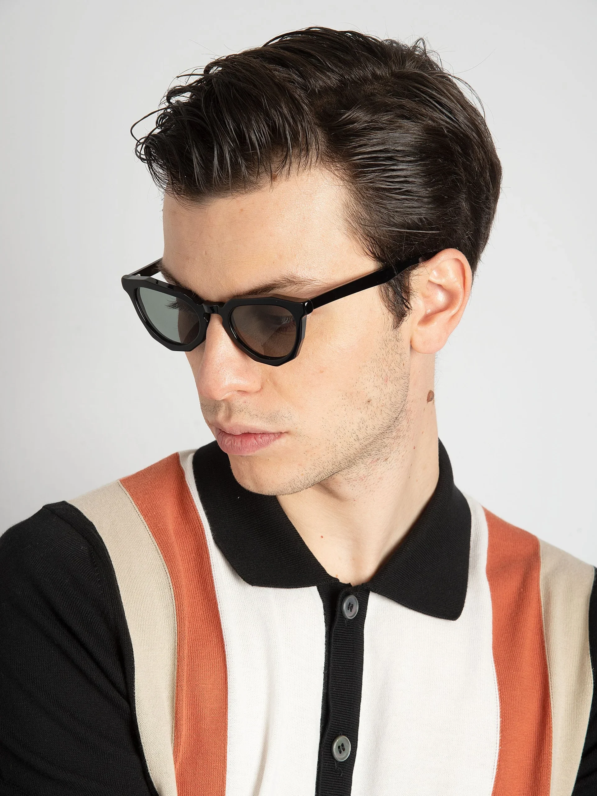 - Montatura color nero lucido e lenti gradient grigio-verde.