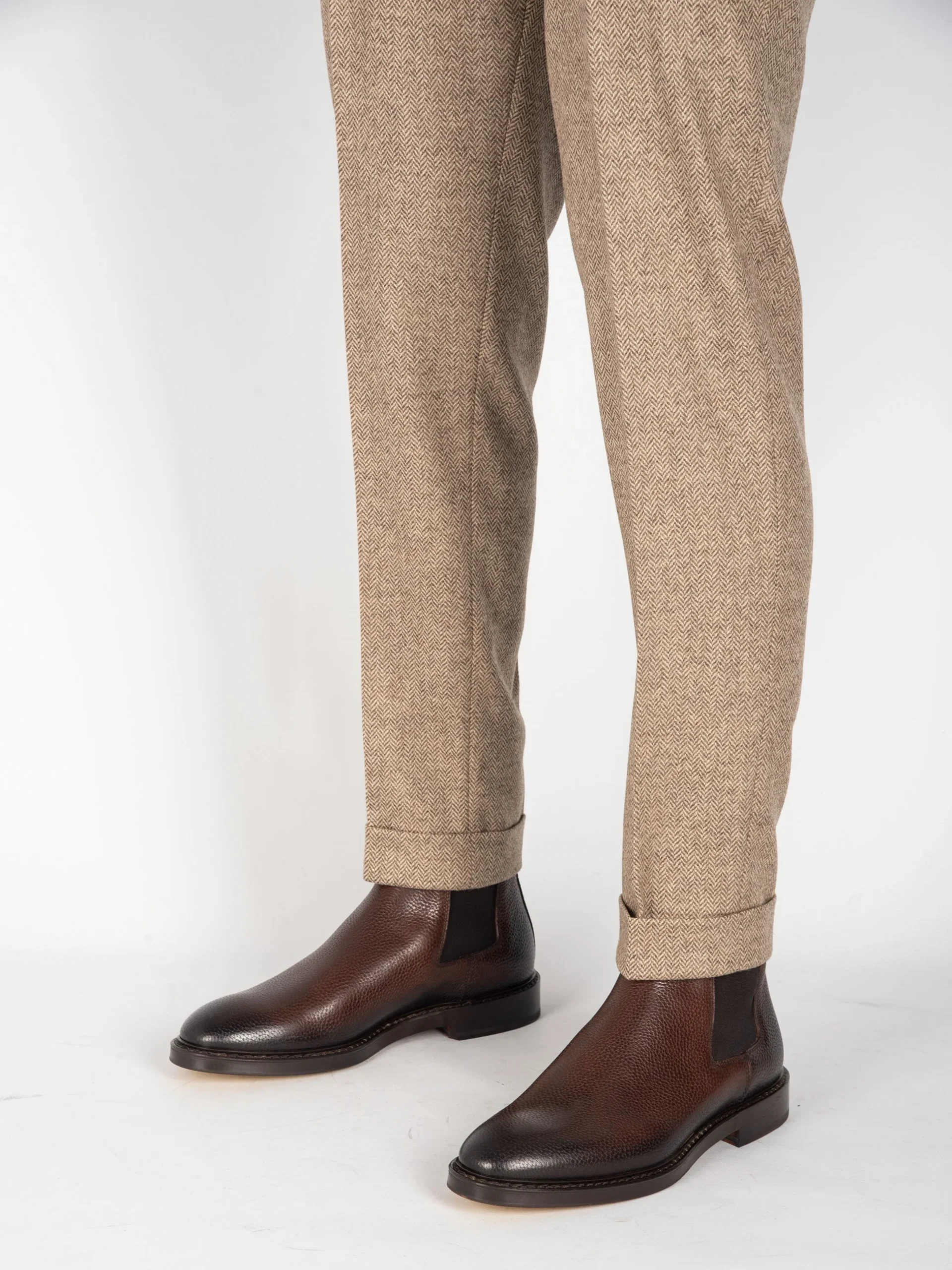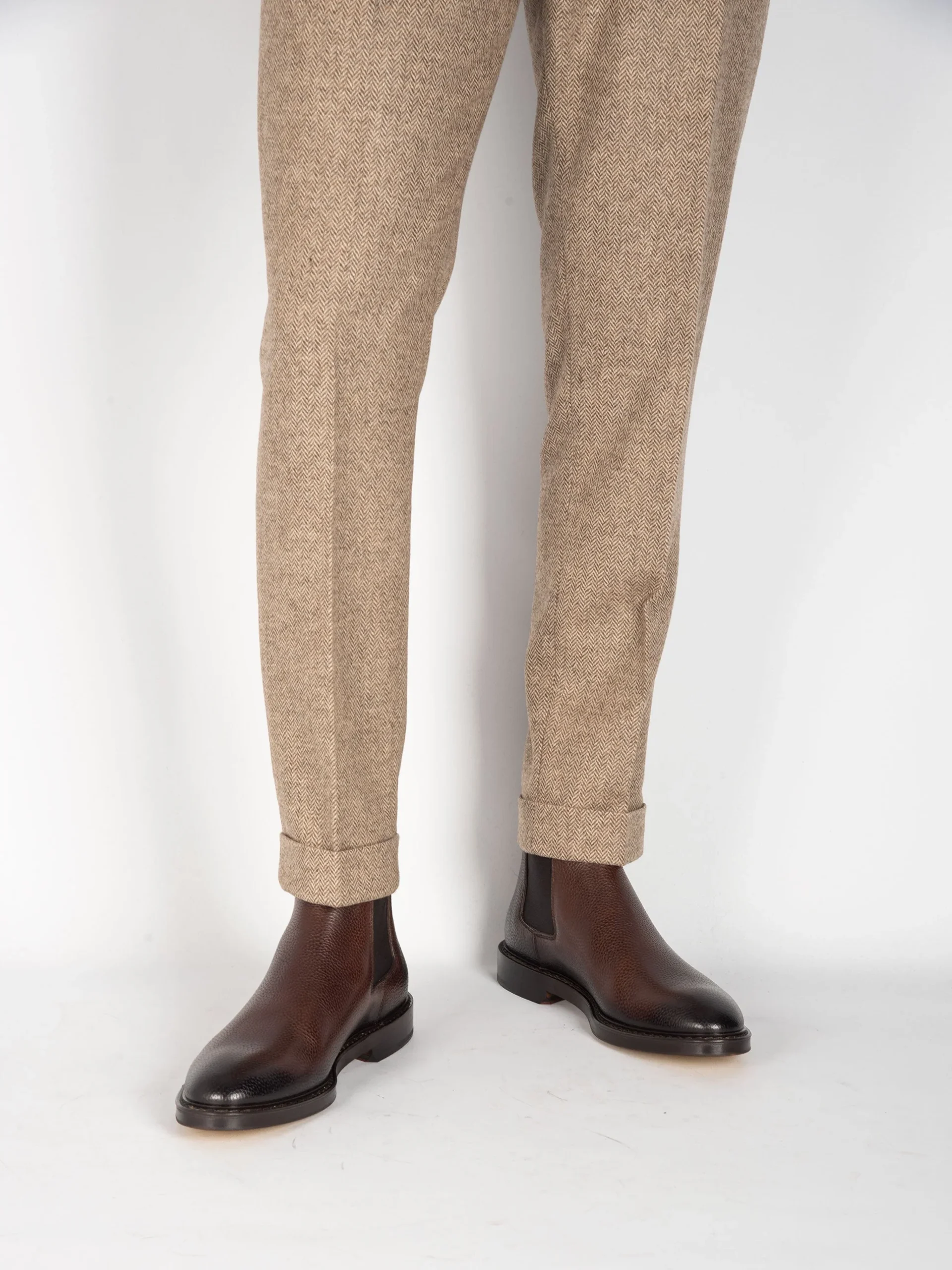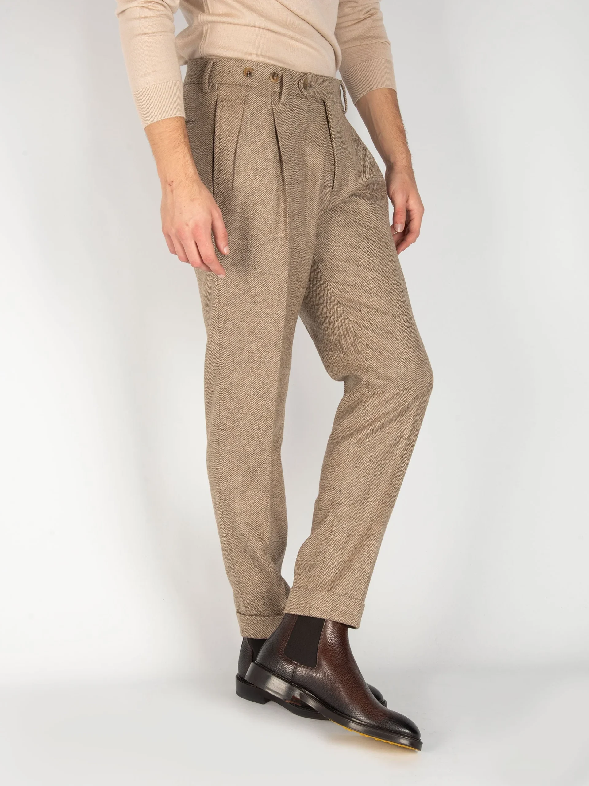 - Pantalone sartoriale in 100% lana spinata.