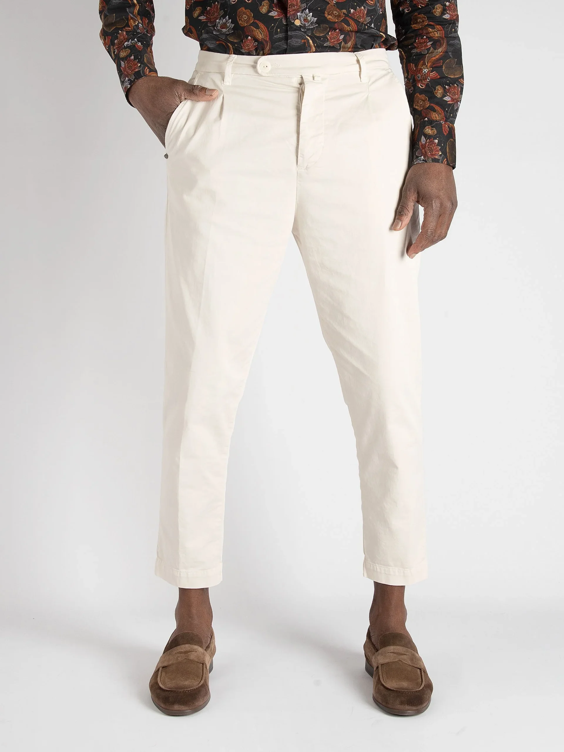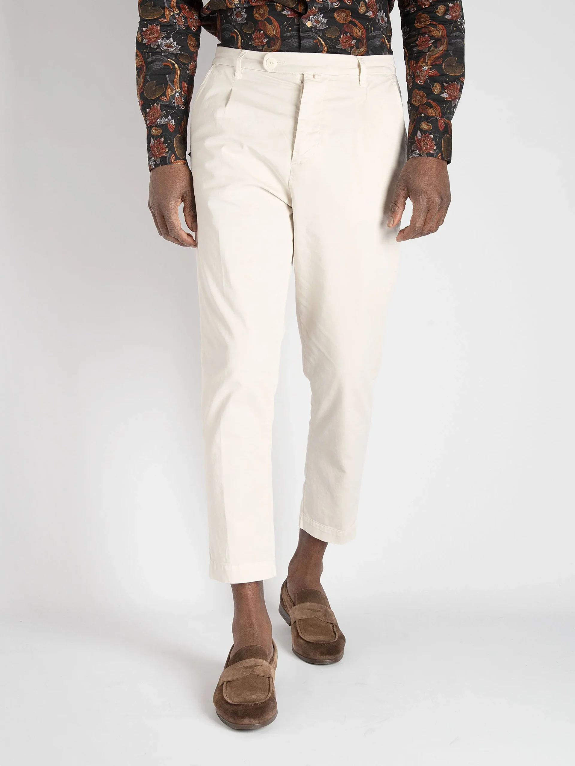 Mod: 0282008261-BURRO Pantalone ad una micro pence in cotone stretch. Allacciatura 5 bottone e chiusura con cinturino. Modello con cavallo morbido e gamba asciutta e fondo 15 cm. Tasche america laterali e passanti in vita. Doppia tasca a filo con bottone sul retro. Composizione: 97% Cotone – 3% Elastan. Made in Europe. Vestibilità stretta: si […]