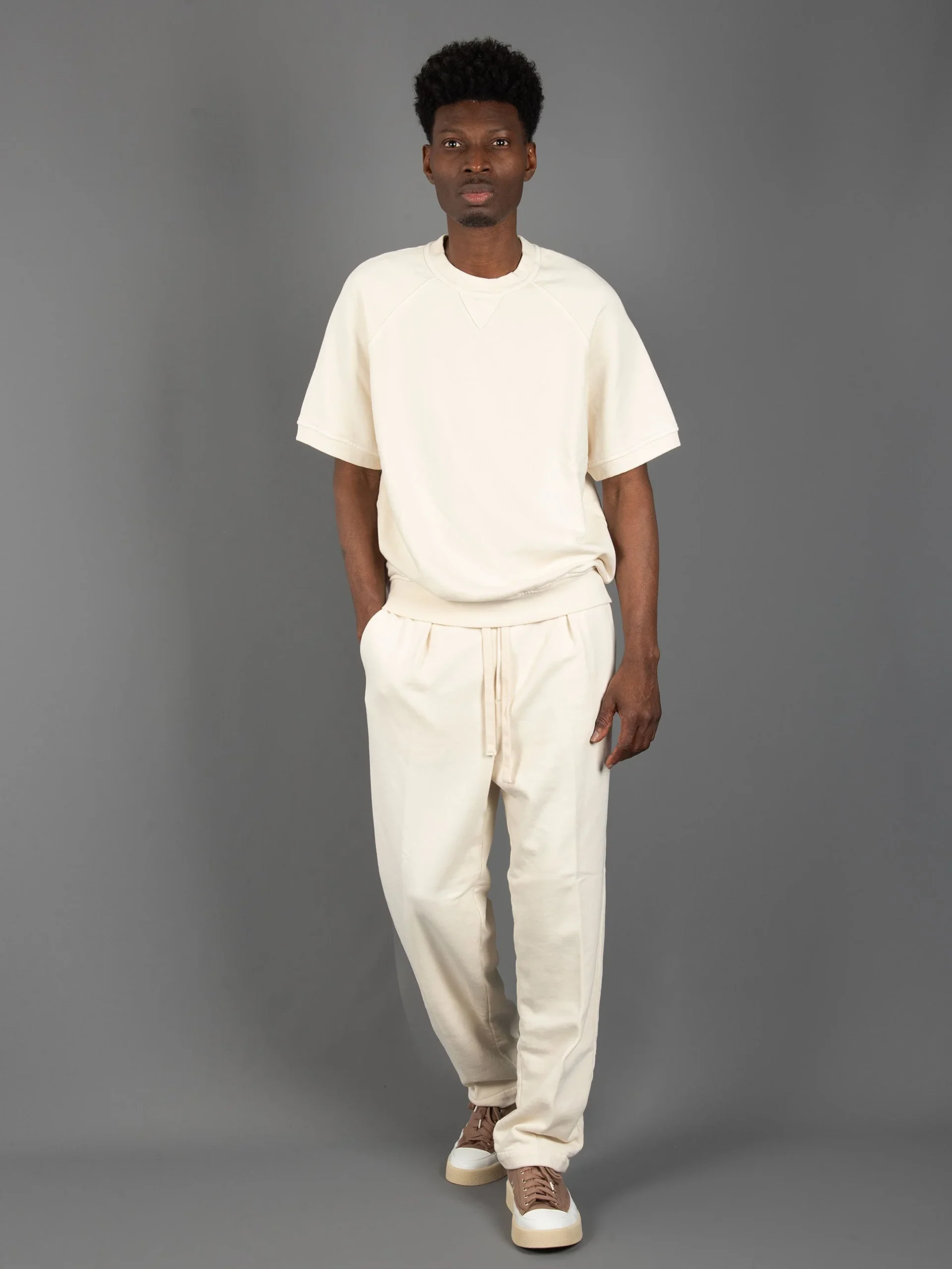 Mod: HENRY01 TP01 BURRO Pantalone in Jersey di cotone con pence. Vestibilità con cavallo morbido. Vita con coulisse nel retro e laccio color corda. Tasche america sui fianchi e doppia tasca sul retro. Fondo pantalone 21cm. Composizione: 100% cotone. 100% prodotto in Italia. Vestibilità morbida. Completa l’outfit con la Maglia. Il modello è alto 187 […]