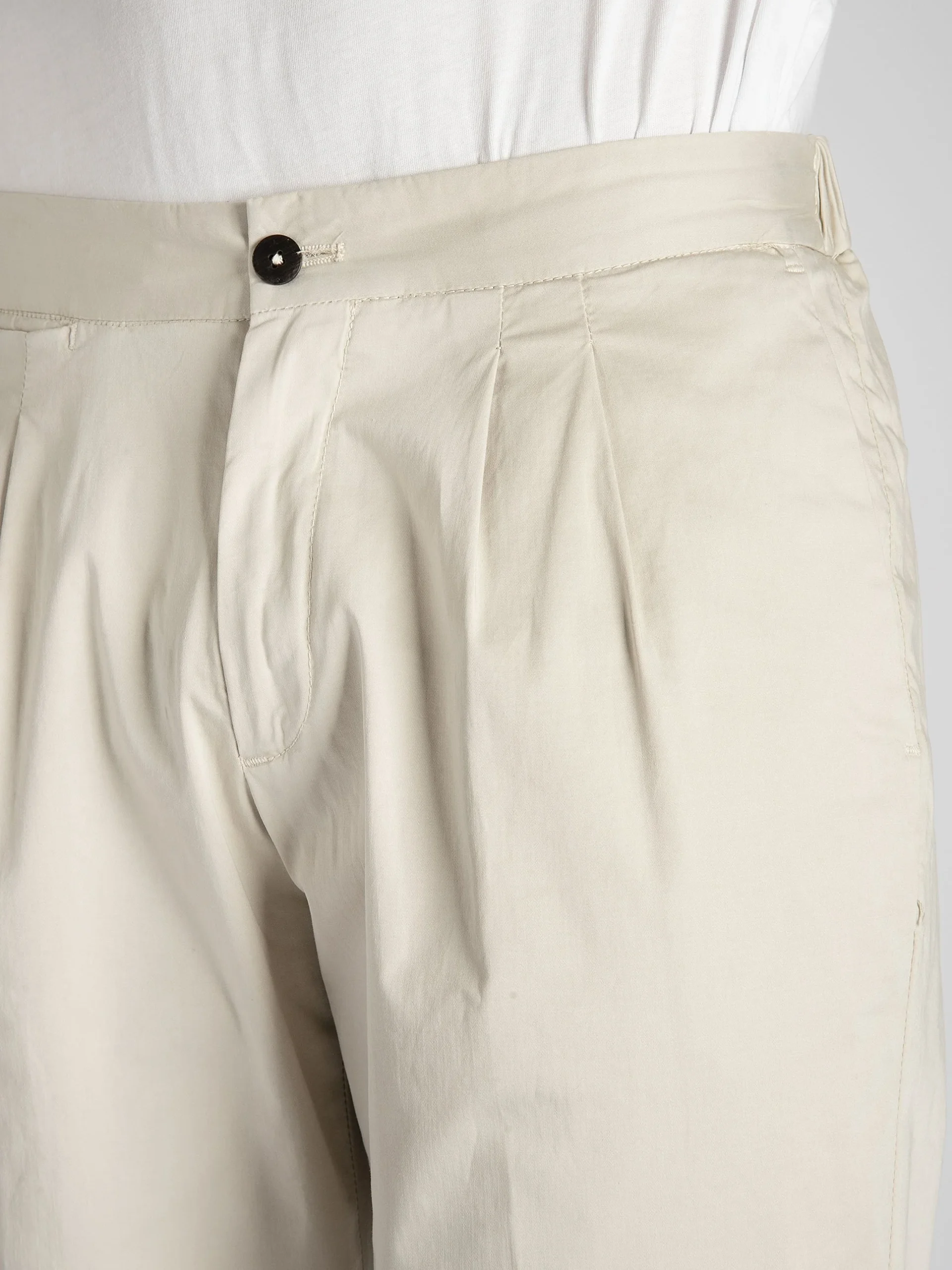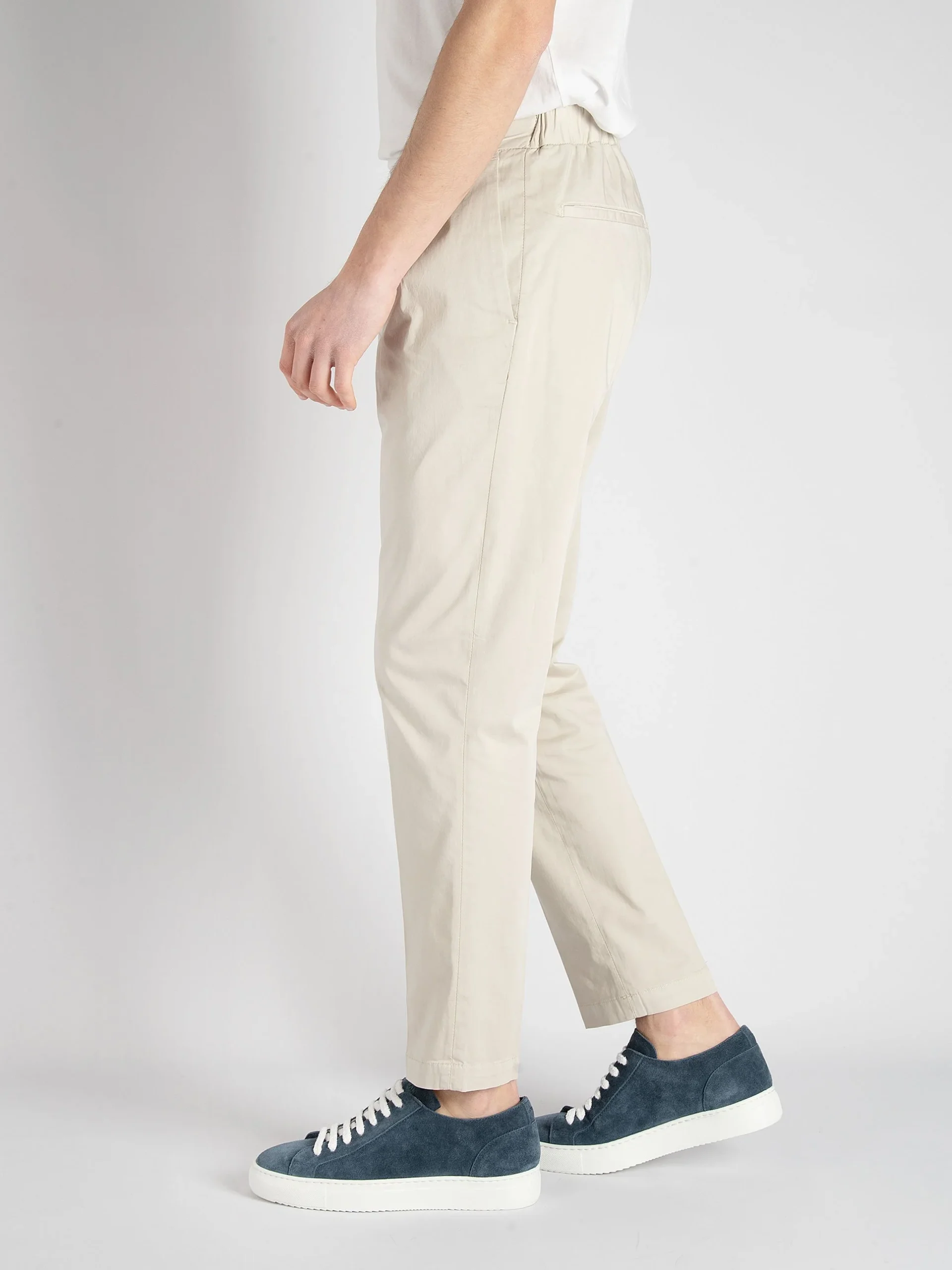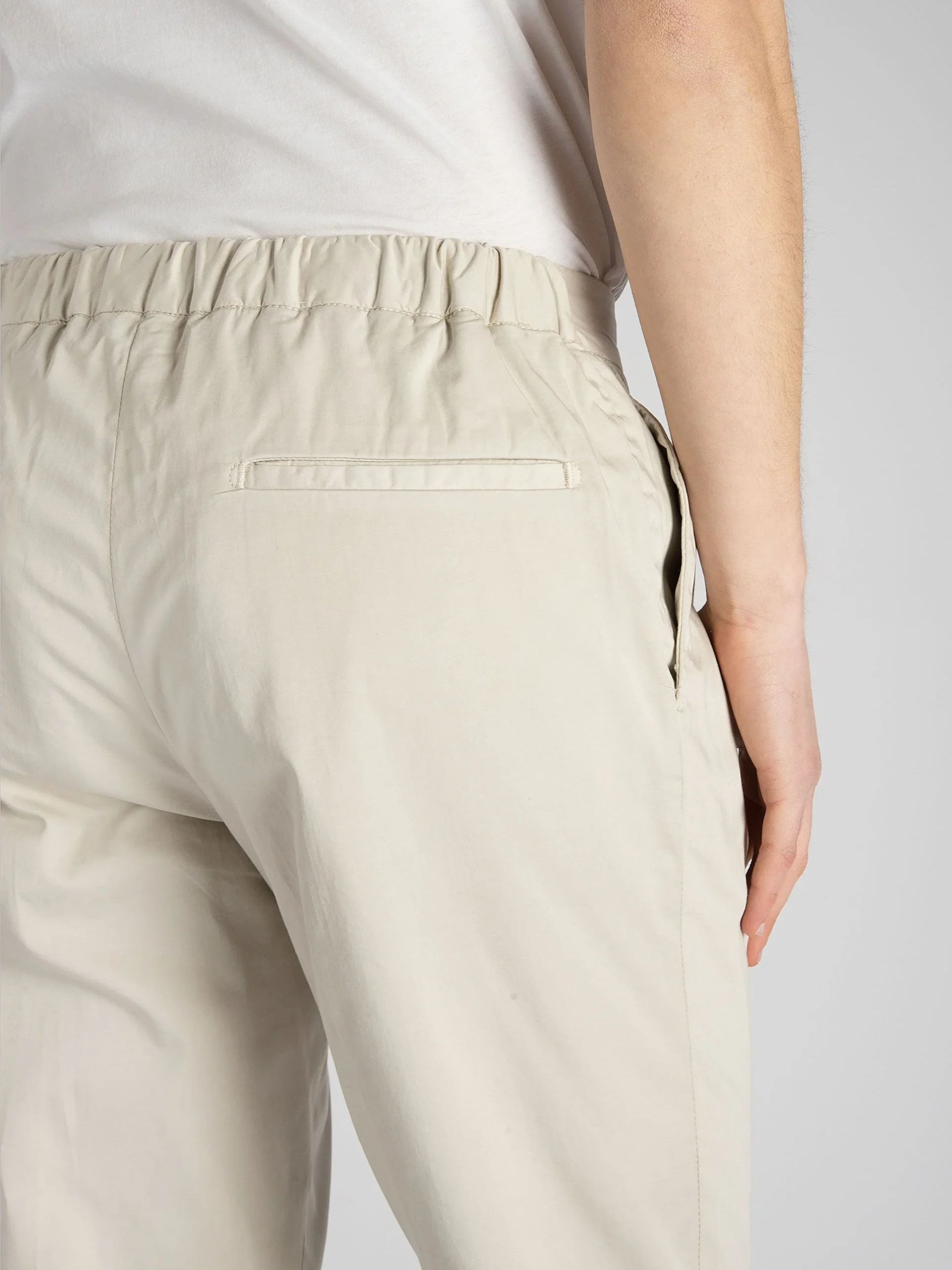 Mod: DVR10G002 GESSO Pantalone sartoriale in raso di cotone. Chiusura centrale con bottone singolo e zip. Bottone in legno lavorato. Montante ibrido in vita, con inserto elastico sul retro. Laccio in cotone interno. Doppia pence in vita, gamba regolare e fondo 17cm. Composizione: 96% cotone, 4% elastan. 100% prodotto in Italia. Il modello è alto […]