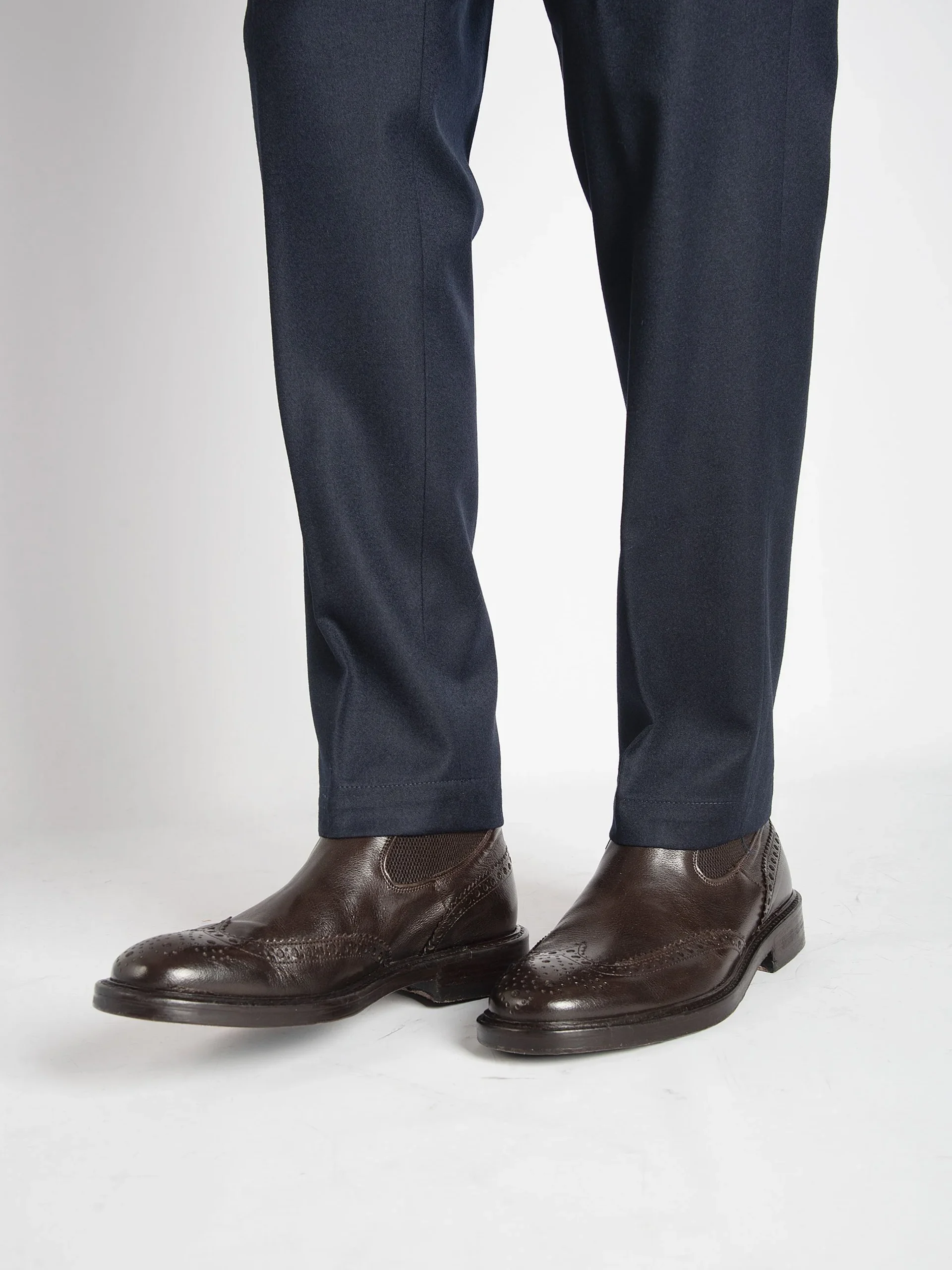 Mod: DVR10CW2012 LEISURE 2 0300 BLU Pantalone sartoriale in lana con doppia pence. Chiusura centrale con bottone e zip. Bottone in legno lavorato. Montante ibrido in vita, con inserto elastico sul retro. Laccio in cotone interno. Vestibilità con gamba regolare e fondo 17cm. Composizione: 99% lana vergine e 1% elastan 100% prodotto in Italia. Il […]