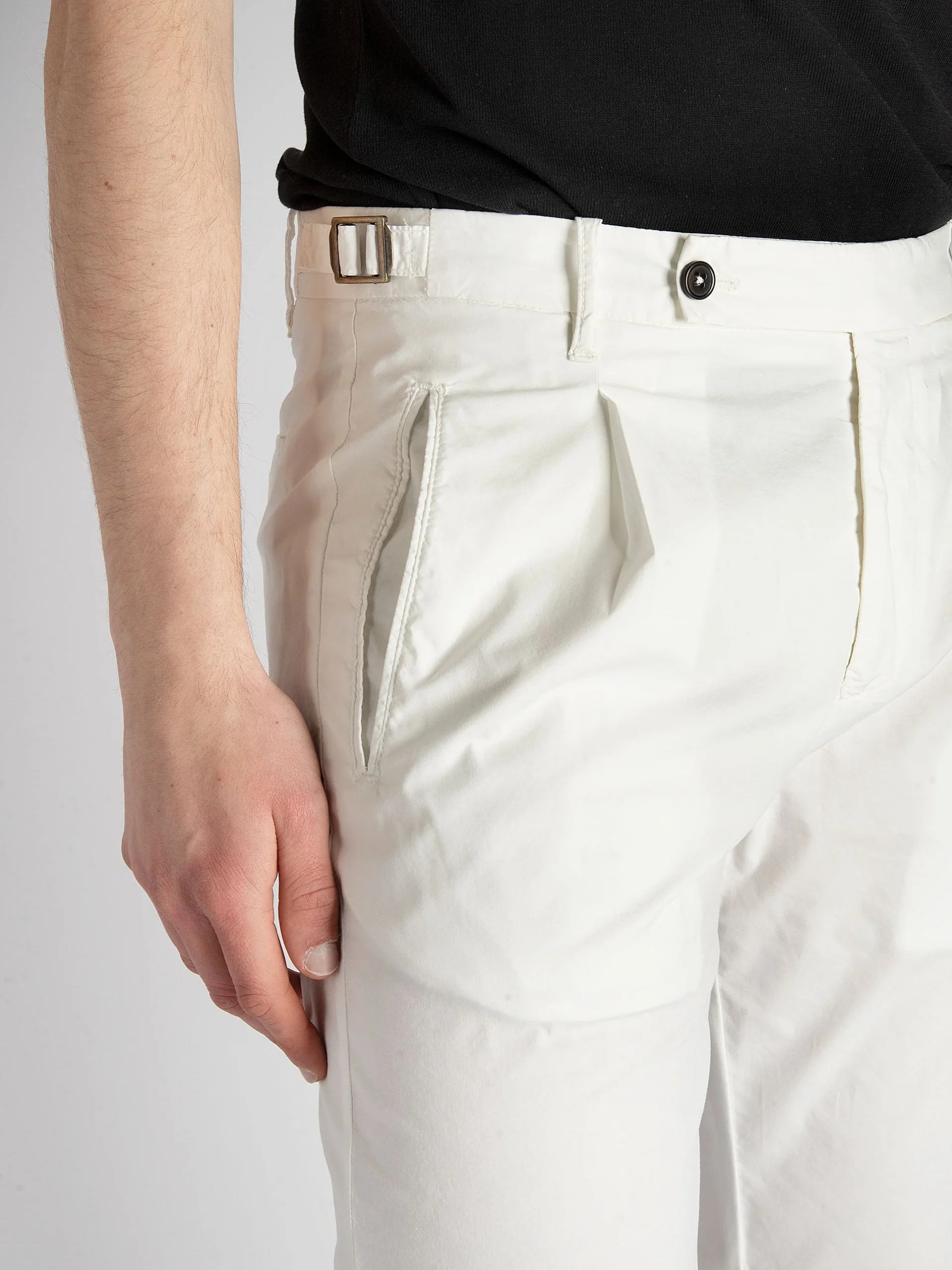 - Tasca filo sul fianco, tasche filo con bottone sul retro.