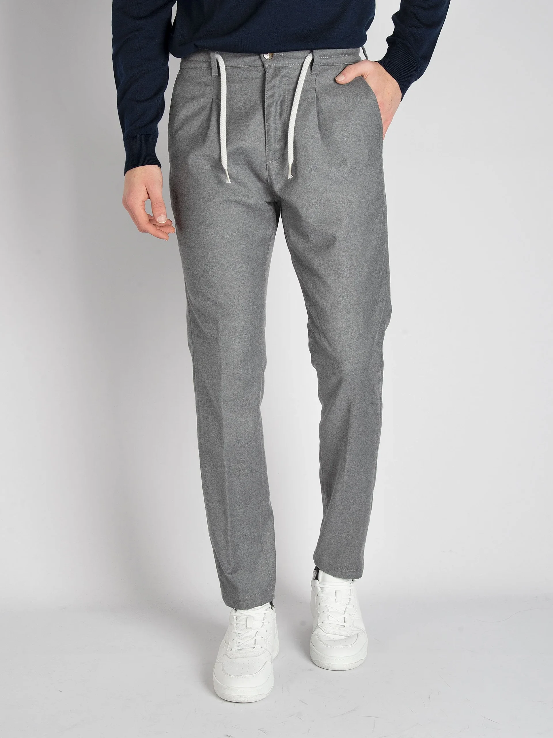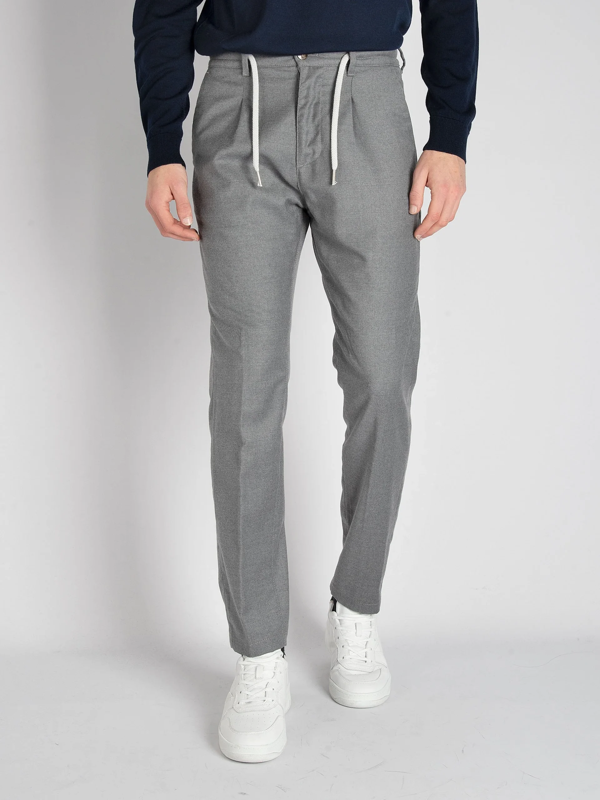 Mod: S.MITTE.835 GRIGIO Pantalone ad una pence in lana. Cintura elasticizzata montata a mano. Chiusura con zip, bottone e coulisse. Laccetto in vita con possibilità di nasconderlo all’interno. Tasche ventre piatto laterali e a filetto e con bottone sul retro. Cavallo morbido, con vestibilità che si asciuga sulla gamba. Composizione: 99% lana e 1% elastan. […]