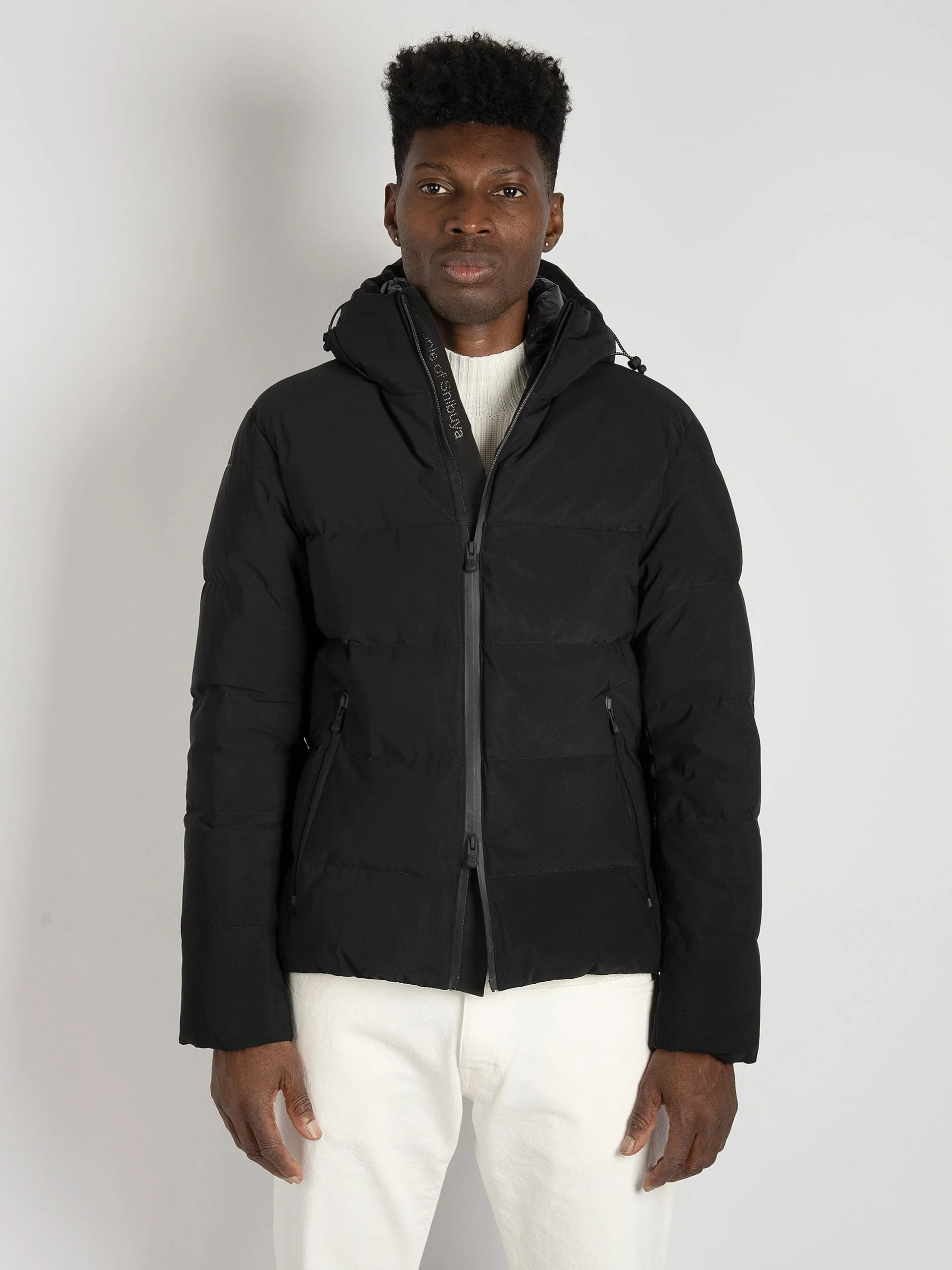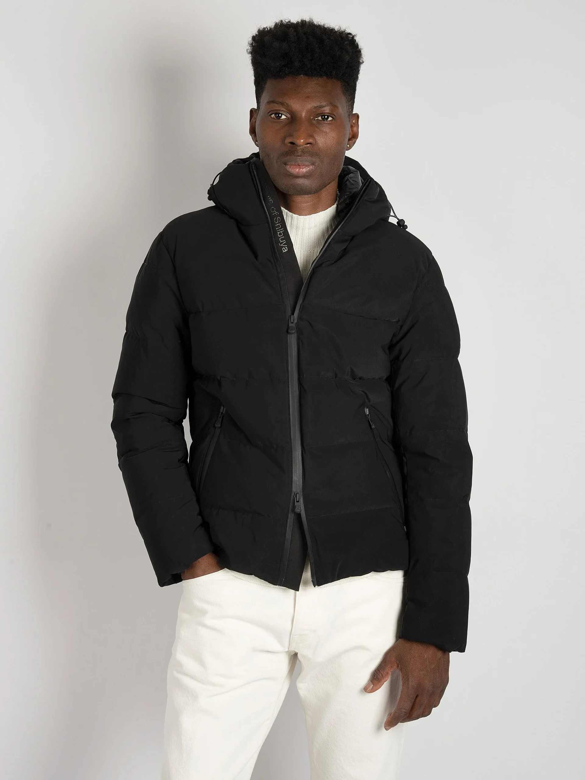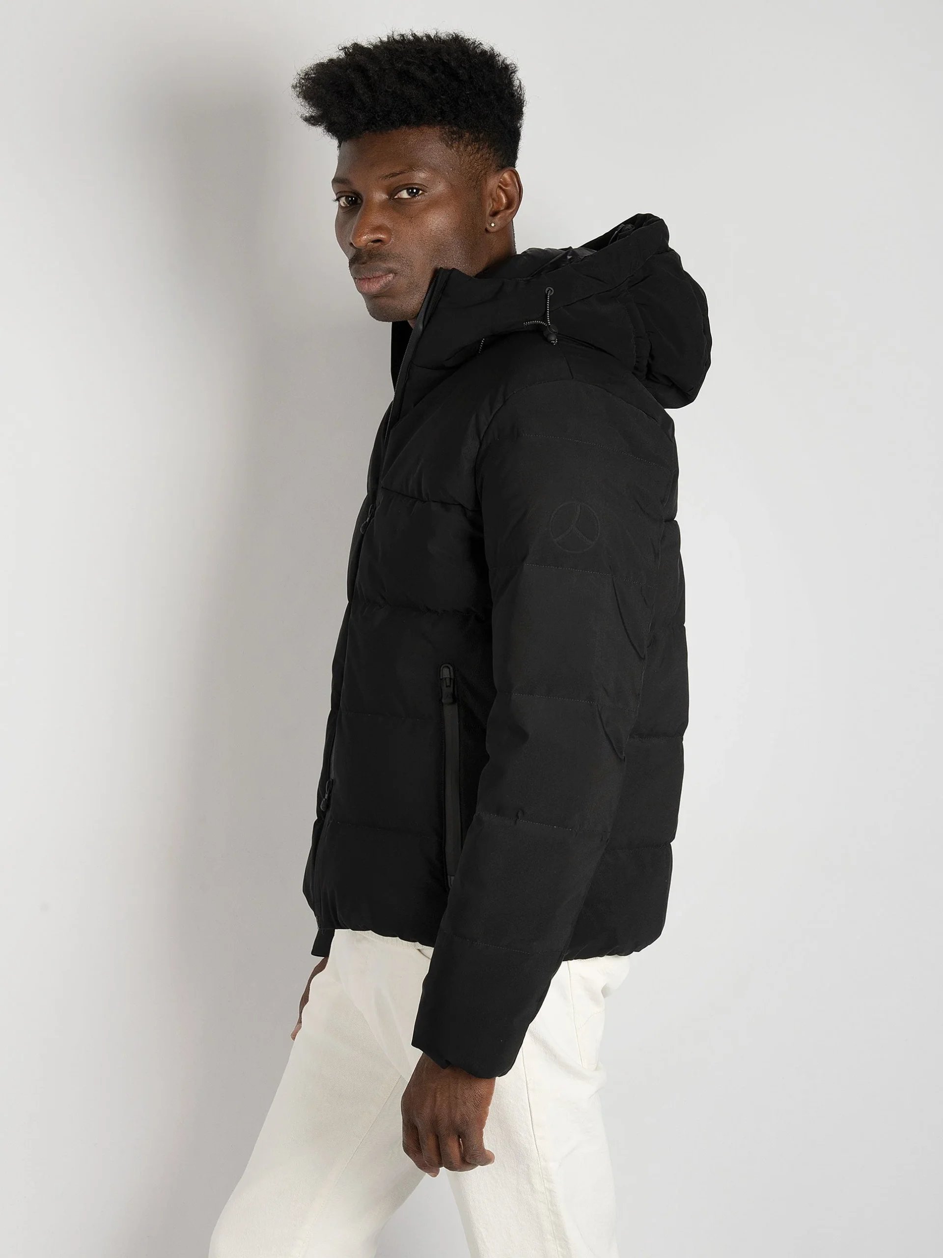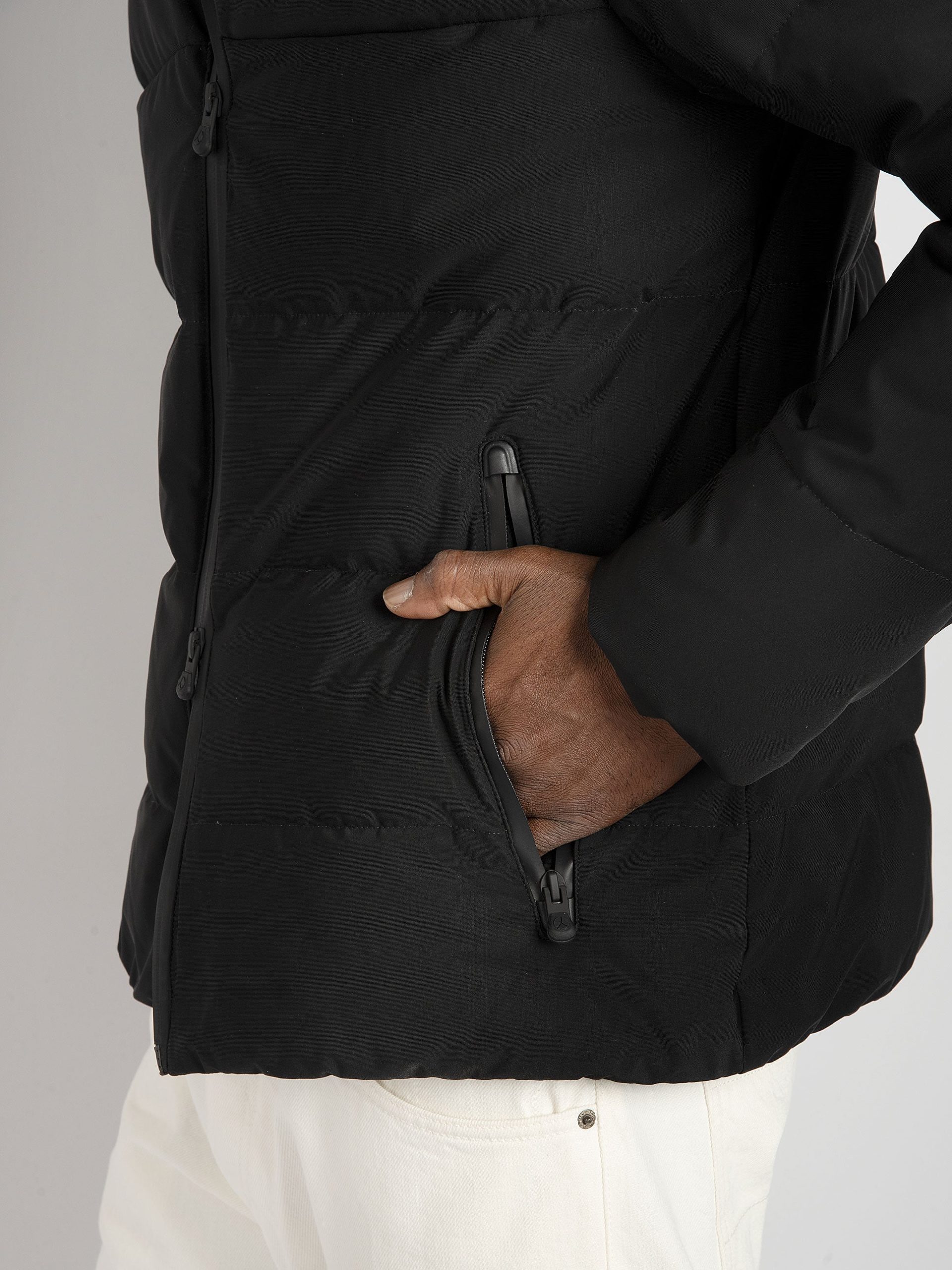 - Giubbino imbottito in nylon opaco con particolari in tessuto tecnico.