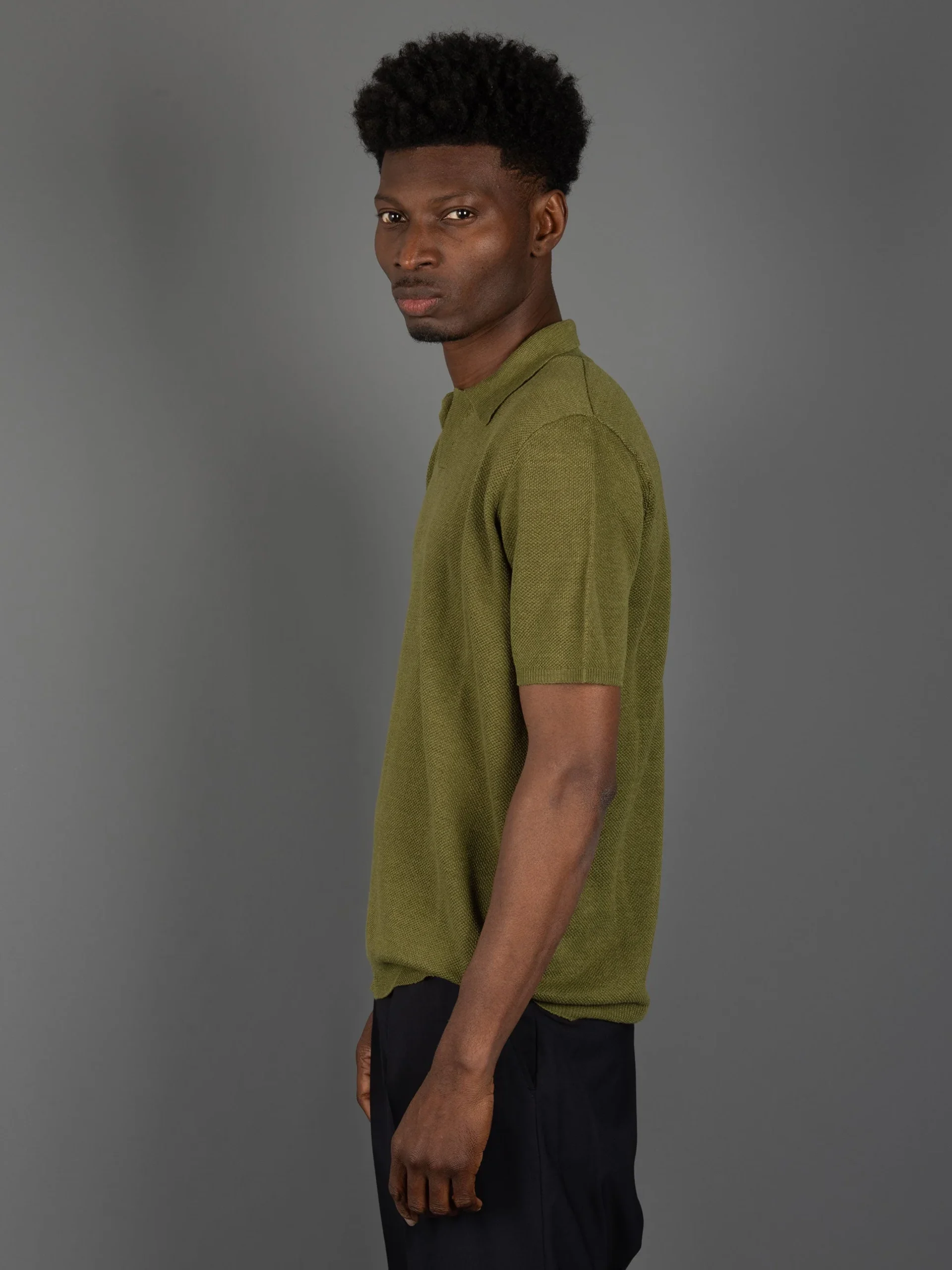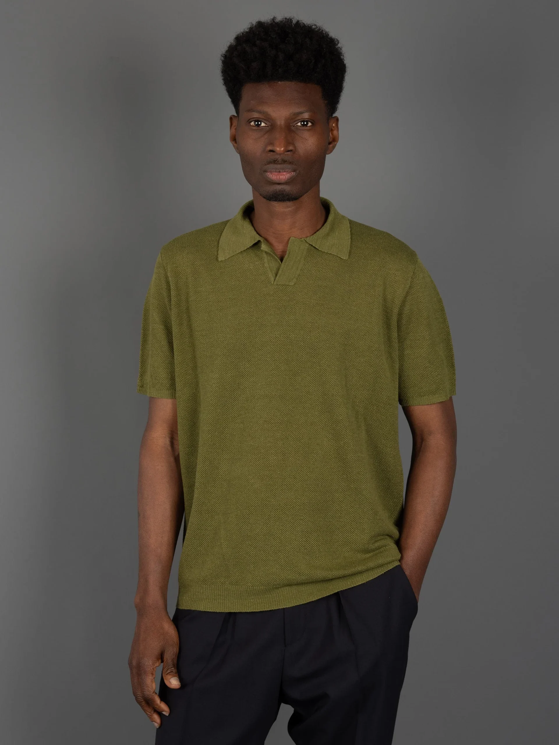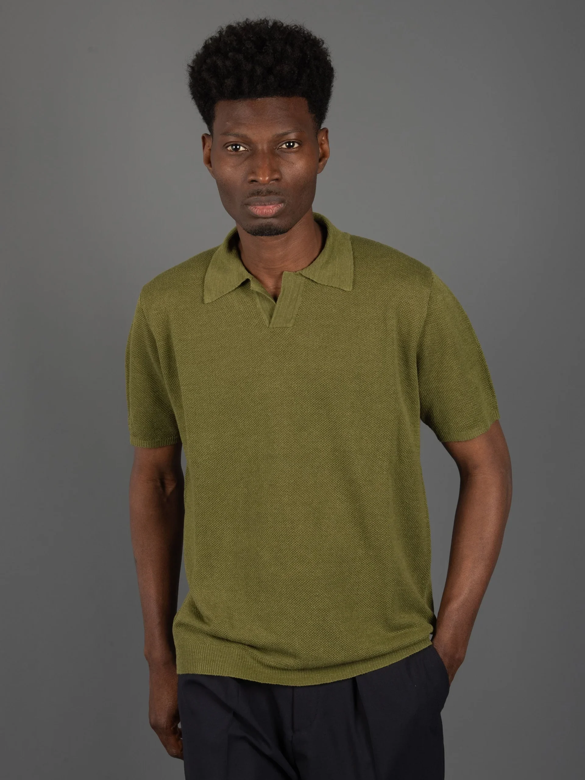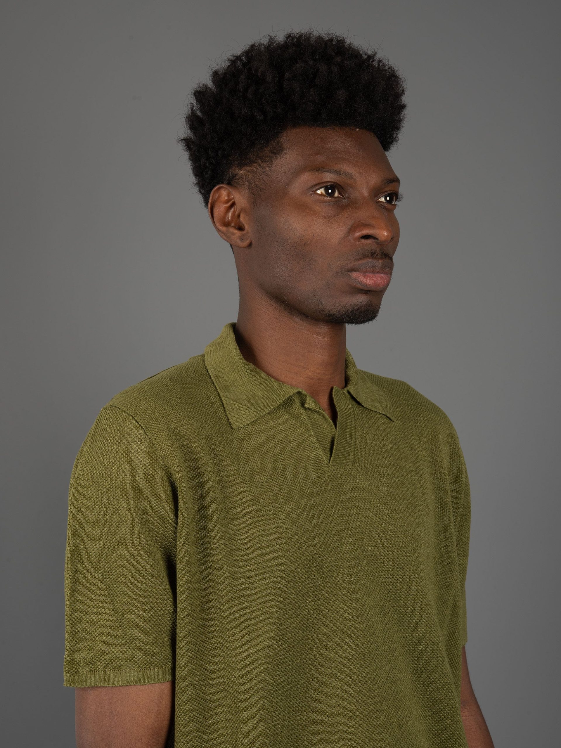 Polo Piquet di Lino- Verde Militare