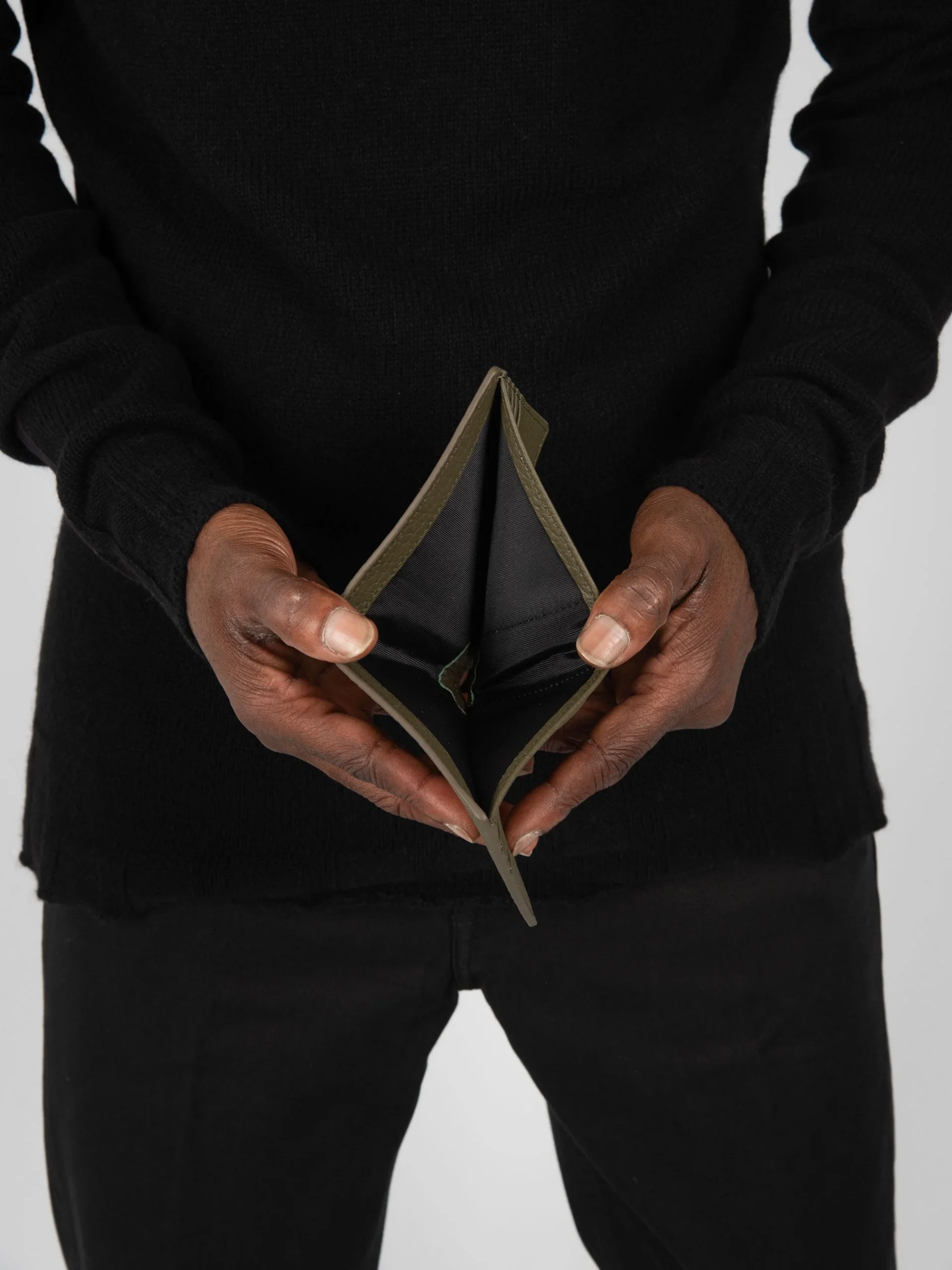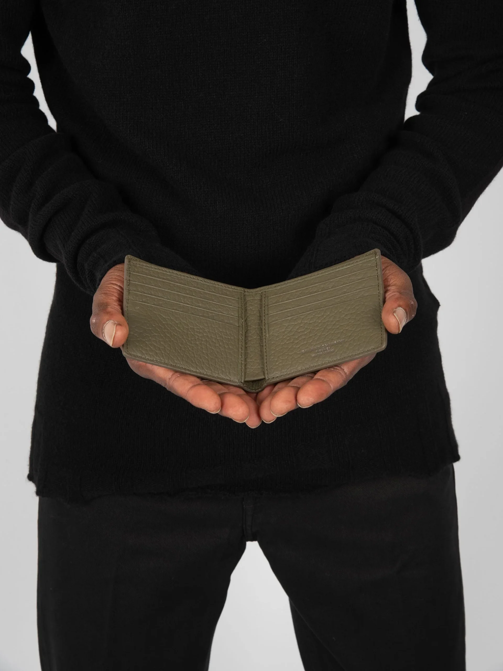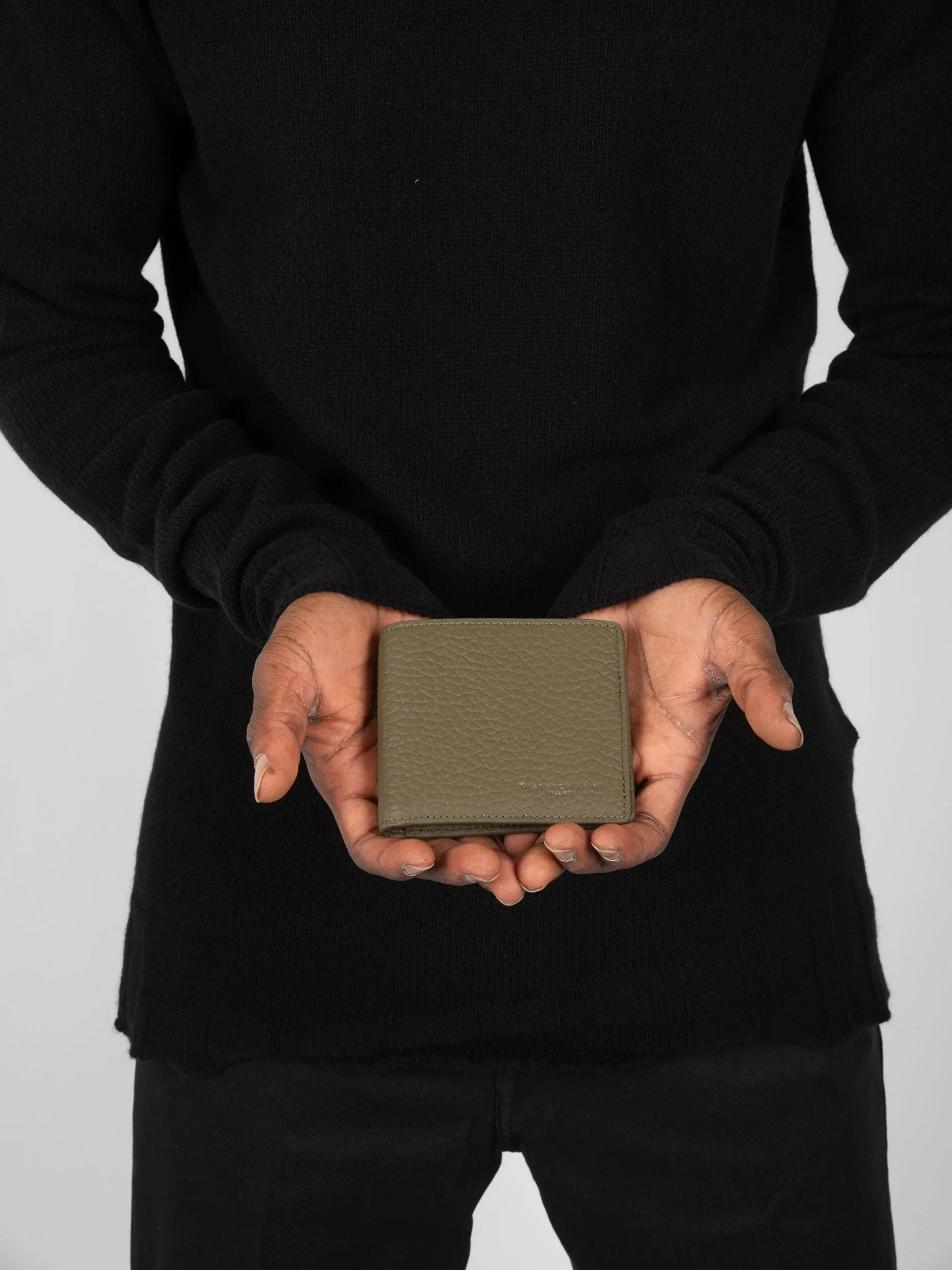 Mod: PF W-18293 TKL OLIVA Portafogli in pelle martellata. Varie tasche per le carte e una per le banconote. Larghezza: 11cm, Altezza: 10cm. Made In Italy.