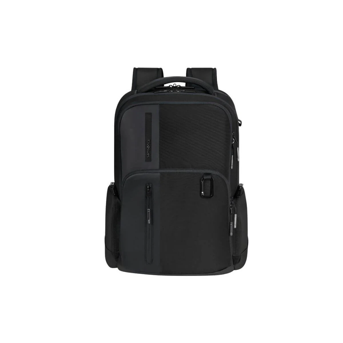 Zaino della linea BIZ2GO di SAMSONITE realizzata in tessuto PET 100% reciclato post-consumo nero con inserti in materiale spalmato. Interno diviso in tre scomparti con tasche accessorie, uno con porta pc e tablet imbottito. Capienza pc 15.6″. Porta USB integrata per poter caricare i tuoi dispositivi ovunque tua sia. Chiusura con zip. Bagaglio gratuito con Easyjet.