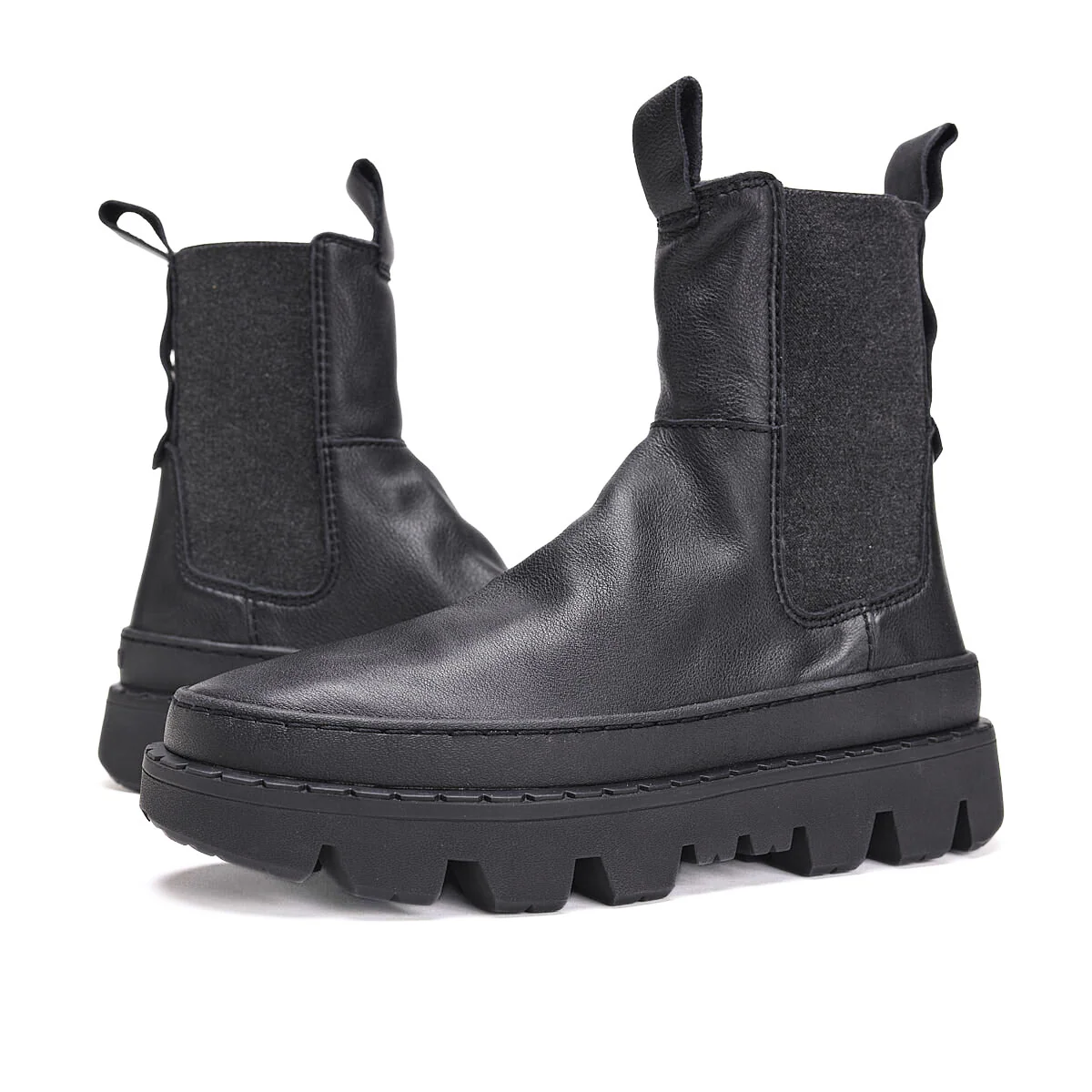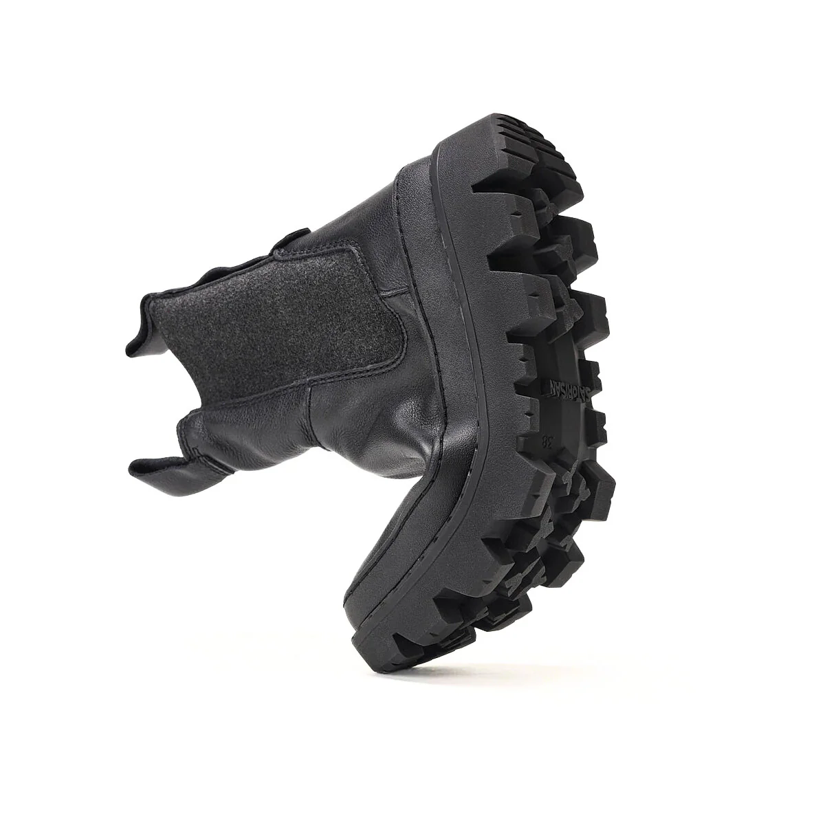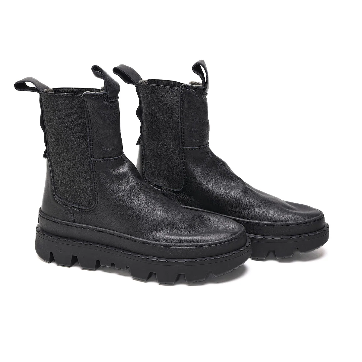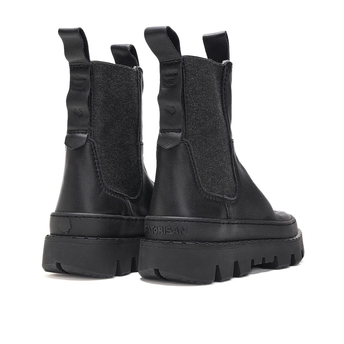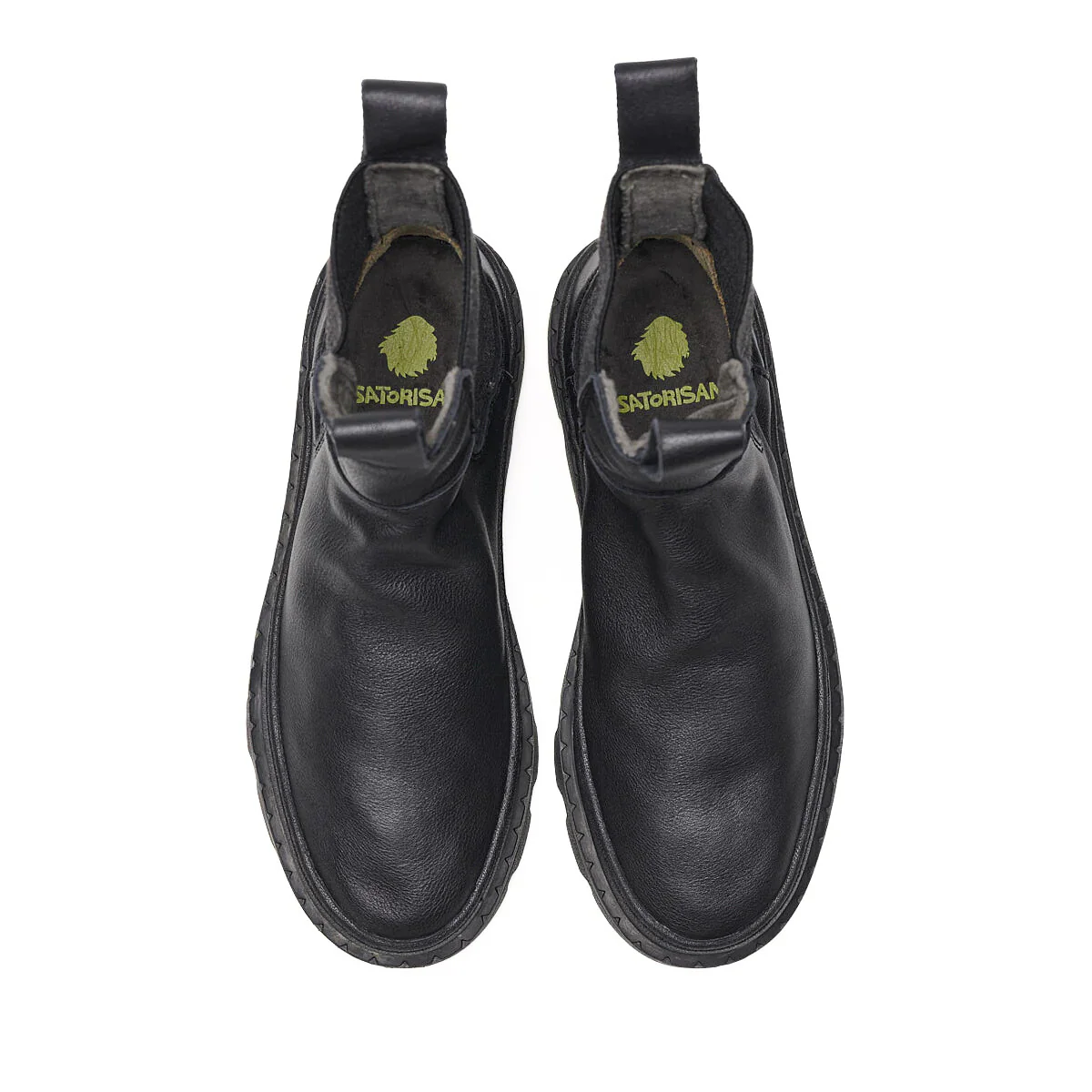 Stivaletto modello beatles da donna di SATORISAN modello UNALOME, realizzato in pelle nera con inserti in camoscio elasticizzato. Interno in tessuto e sottopiede in tessuto. Suola in gomma carrarmato (altezza 6cm).