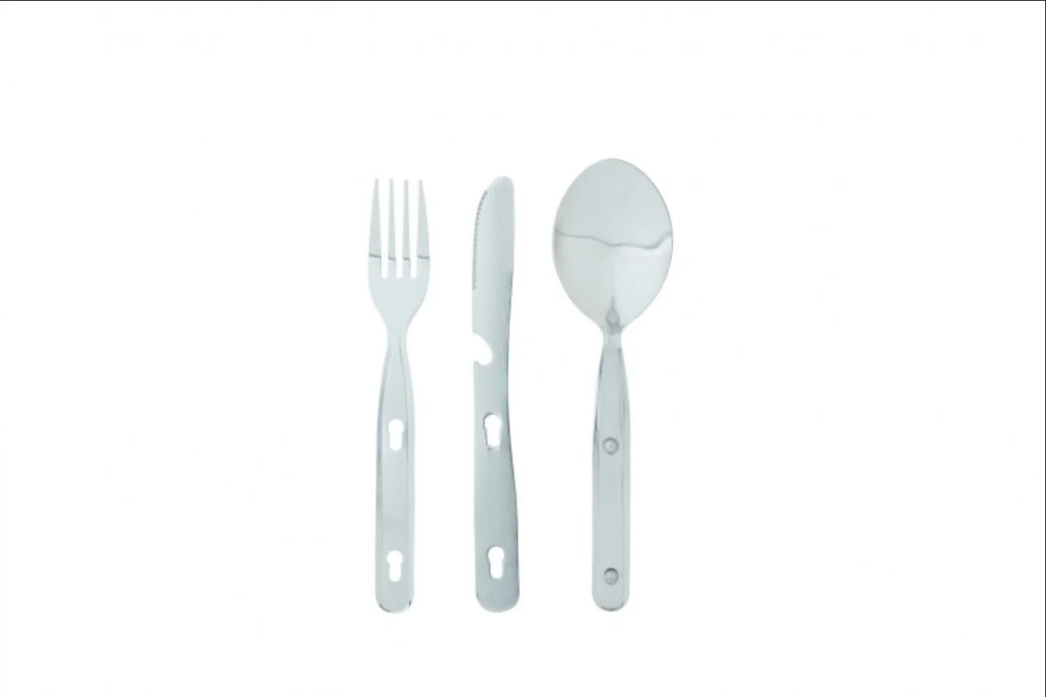 Set di cucchiaio, forchetta, coltello multiuso in acciaio inox.