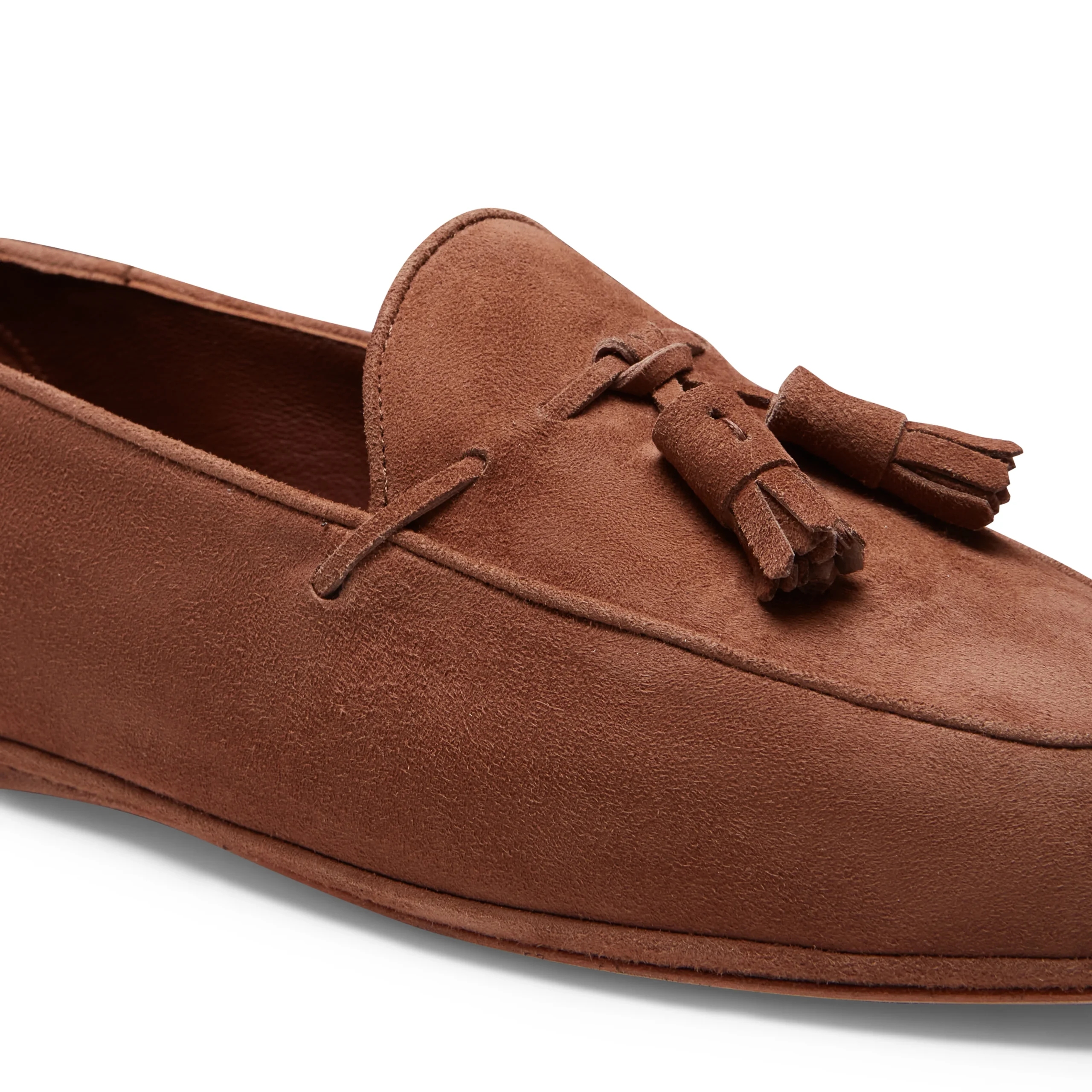 Lussuosa pantofola Brera in morbida pelle scamosciata color cognac. Caratterizzata dalla lavorazione a sacchetto, una tecnica artigianale che prevede la cucitura della fodera attorno alla forma come un guanto, dando vita a una calzatura priva di cuciture visibili. Questa lavorazione assicura un comfort superiore e un’estetica estremamente raffinata. La suola morbida con texture effetto nabuck e il tallone ripiegabile consentono di indossarla sia indoor che outdoor, interpretando i momenti di relax con un perfetto equilibrio tra versatilità e stile.