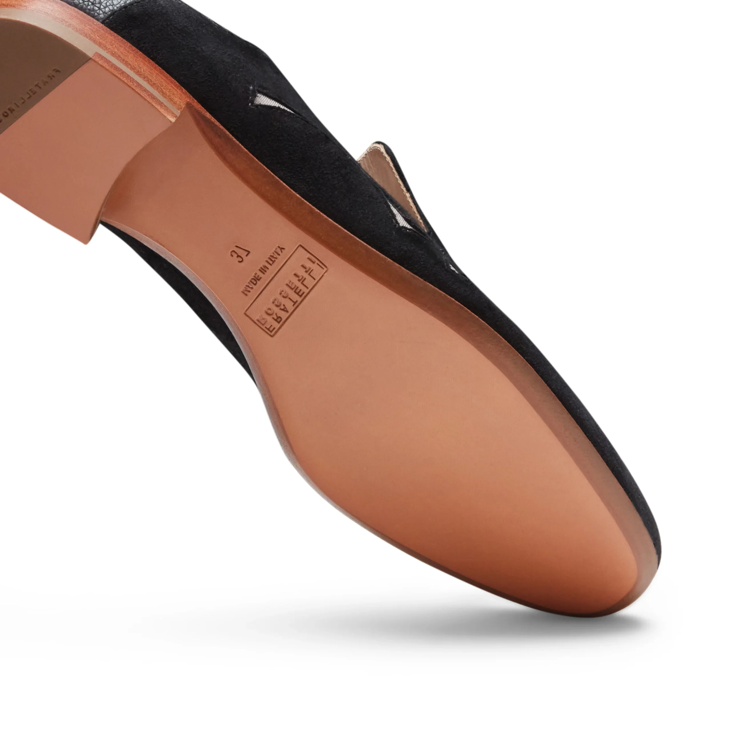 Liconica slipper Hobo in morbida pelle scamosciata nera si arricchisce di raffinate trasparenze, dove il disegno del fiore è reinterpretato con un delicato effetto vedo-non-vedo. Femminile e sofisticato, il modello è caratterizzato da tallone ripiegabile e nappe oversize tono su tono. Suola in cuoio.