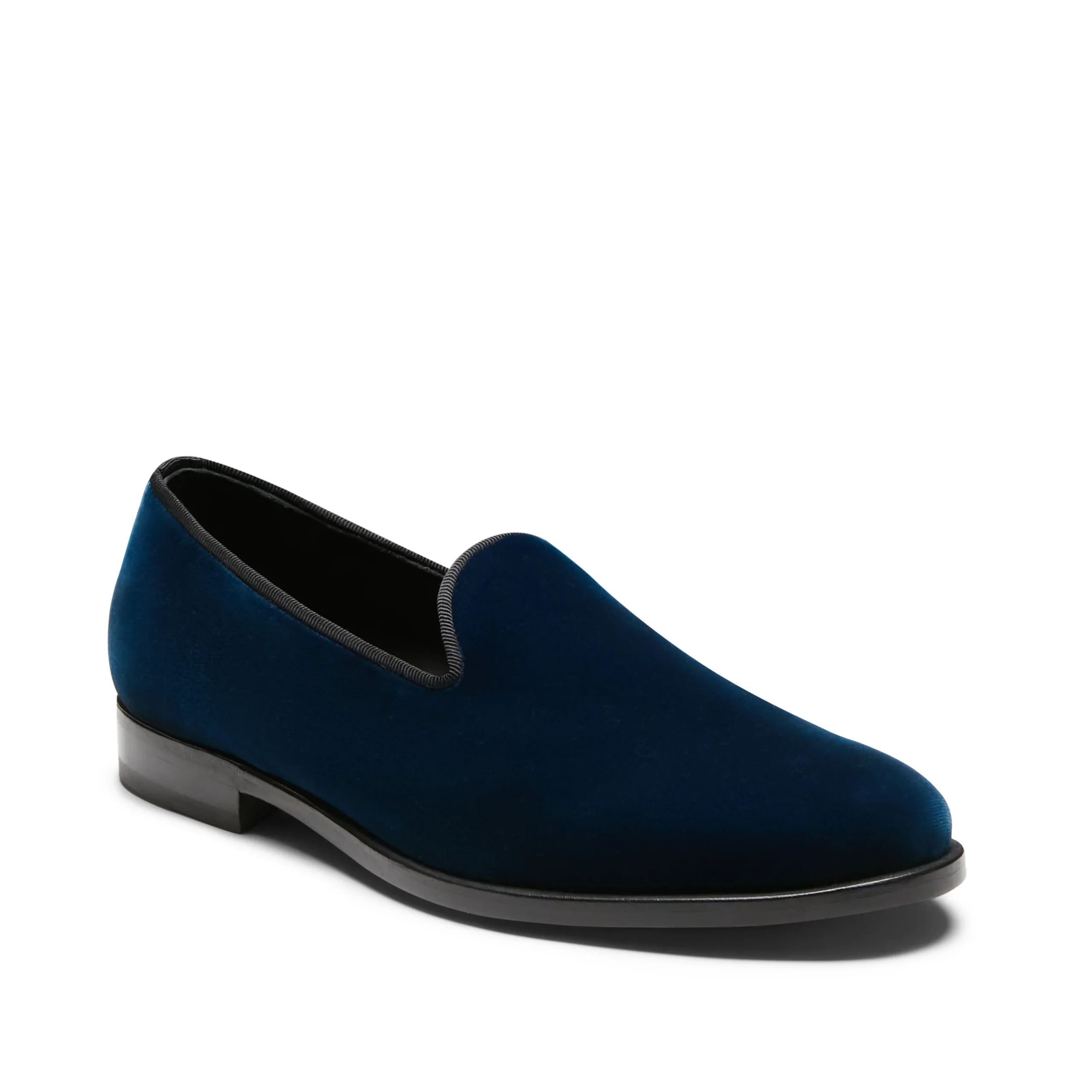 Slipper dal look sartoriale, realizzata in morbido velluto color bluette. Modello che si caratterizza per la linea sobria ed elegante con inserti in gros-grain nero. Perfetta per completare gli outfit formali con un tocco ricercato. Art. 15086