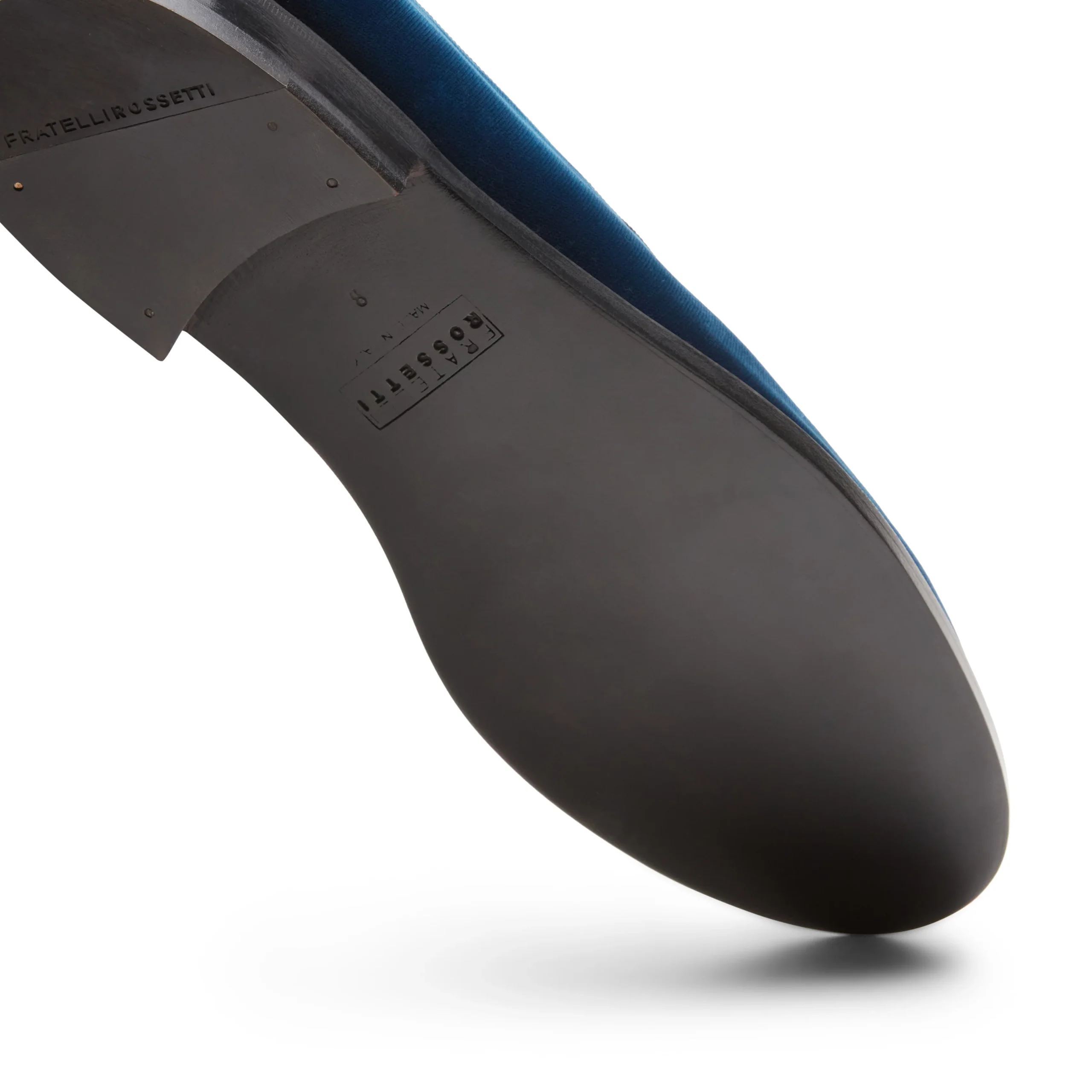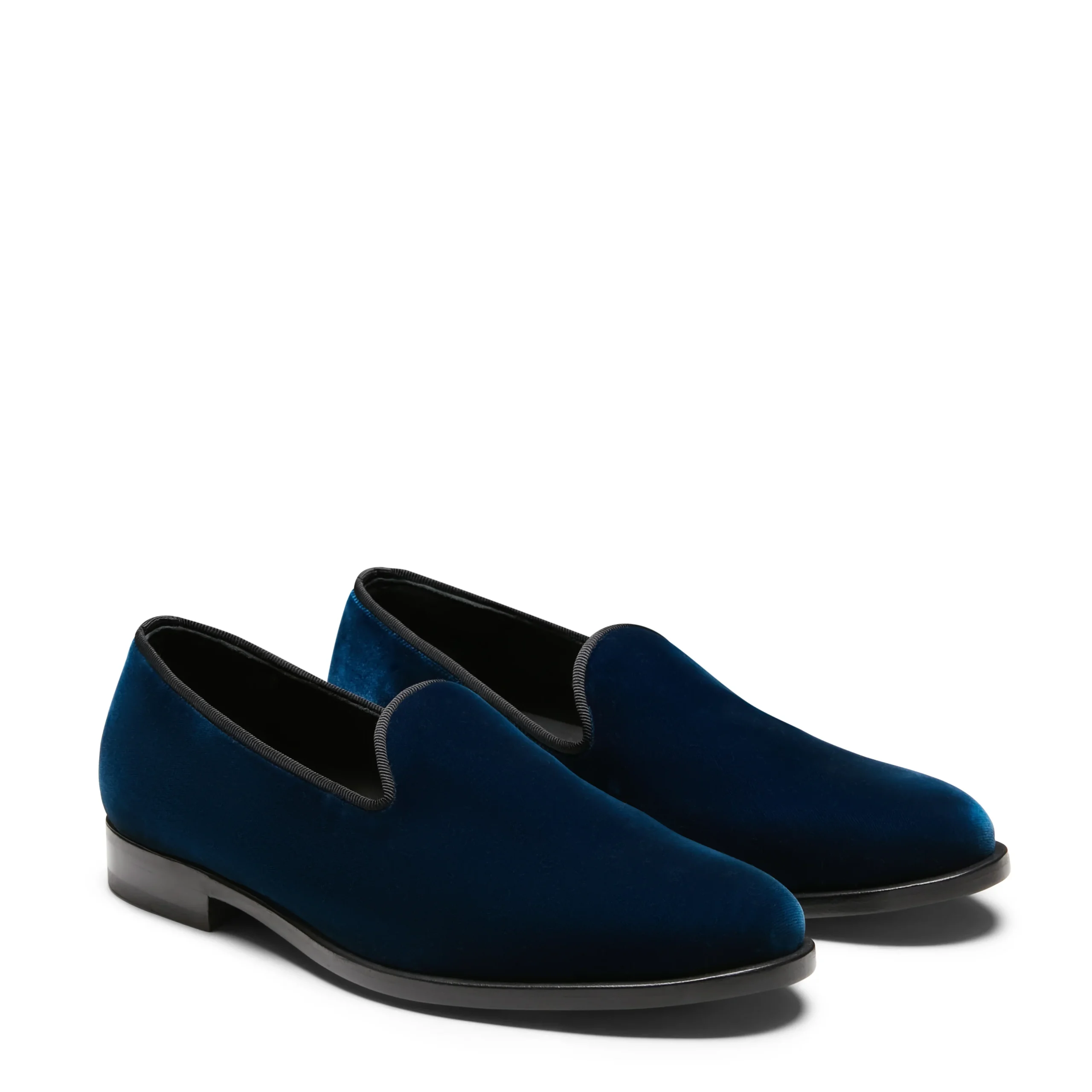 Slipper dal look sartoriale, realizzata in morbido velluto color bluette. Modello che si caratterizza per la linea sobria ed elegante con inserti in gros-grain nero. Perfetta per completare gli outfit formali con un tocco ricercato.