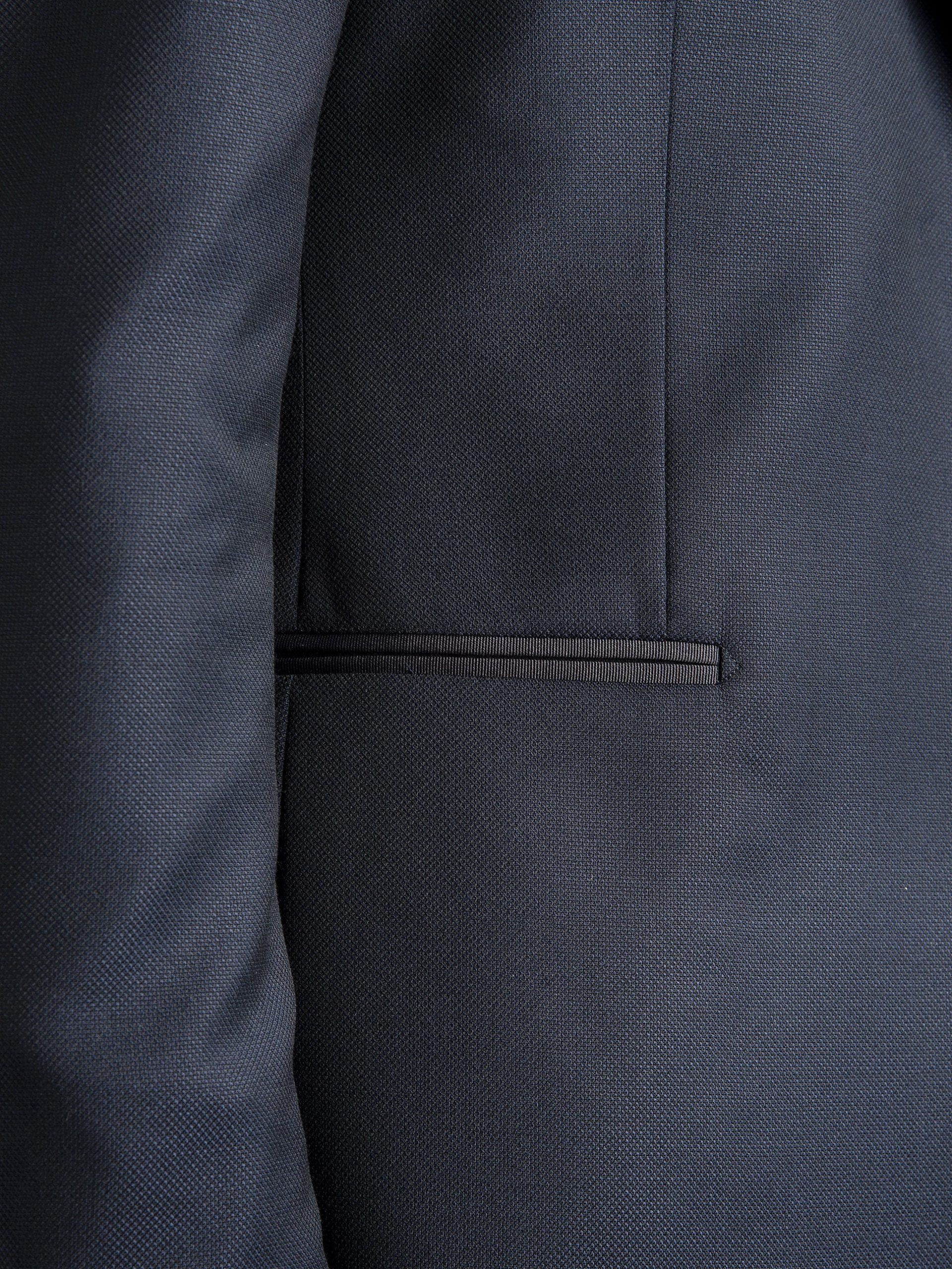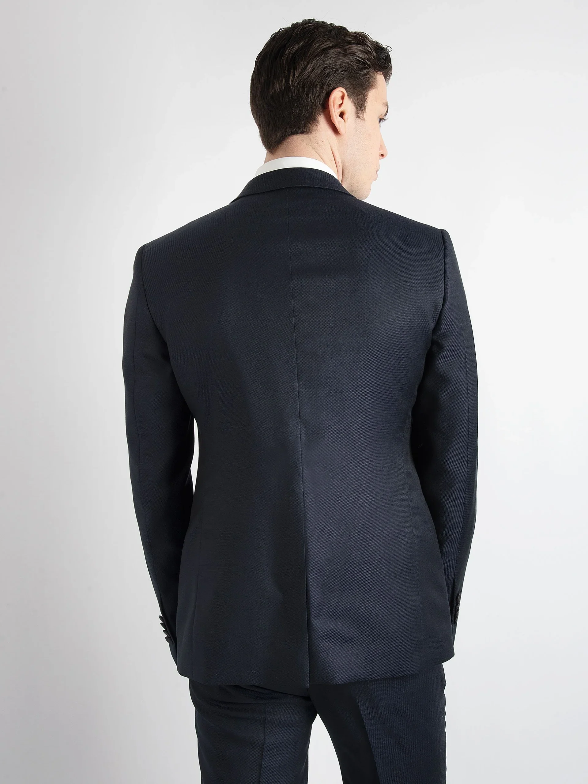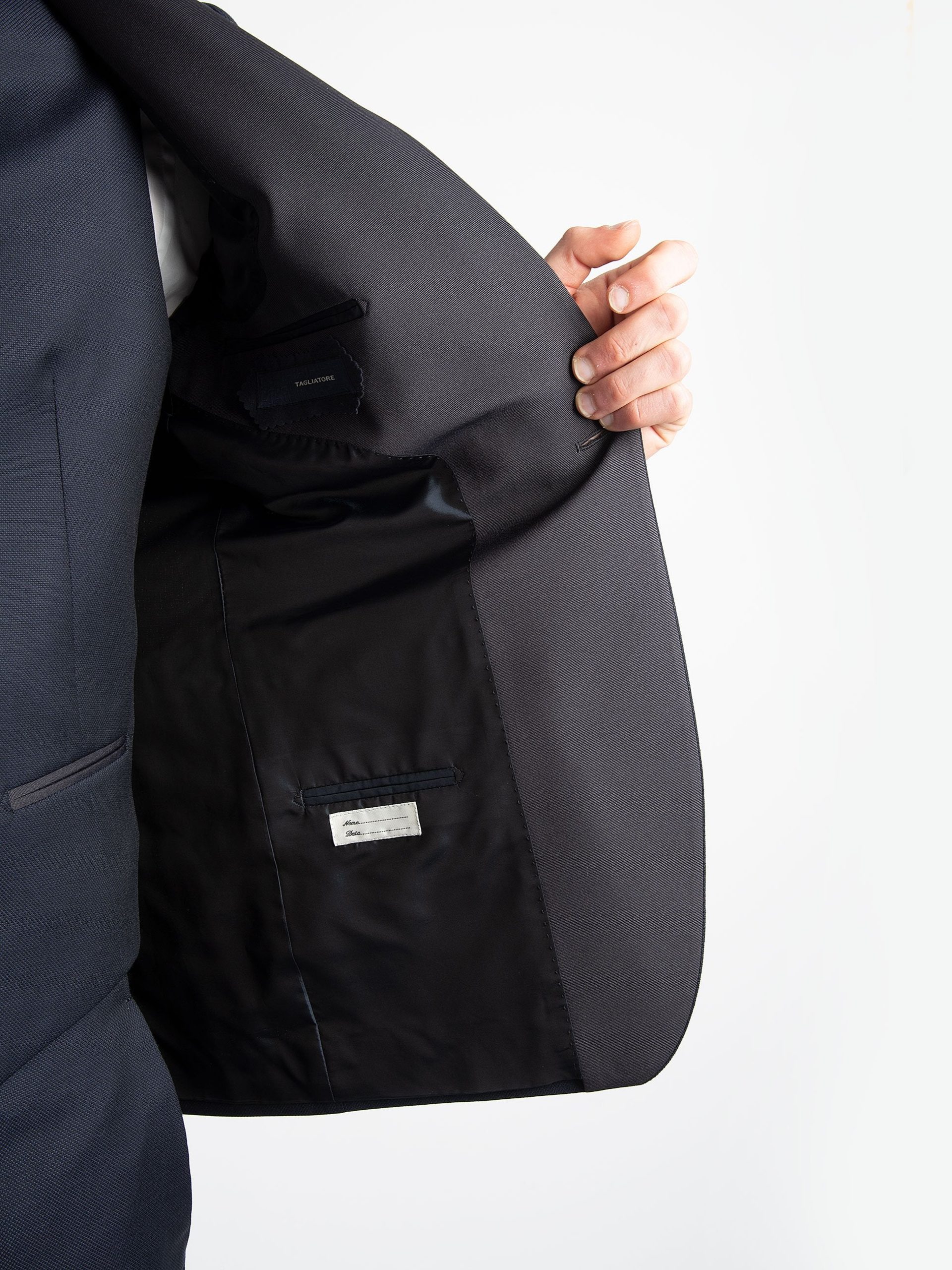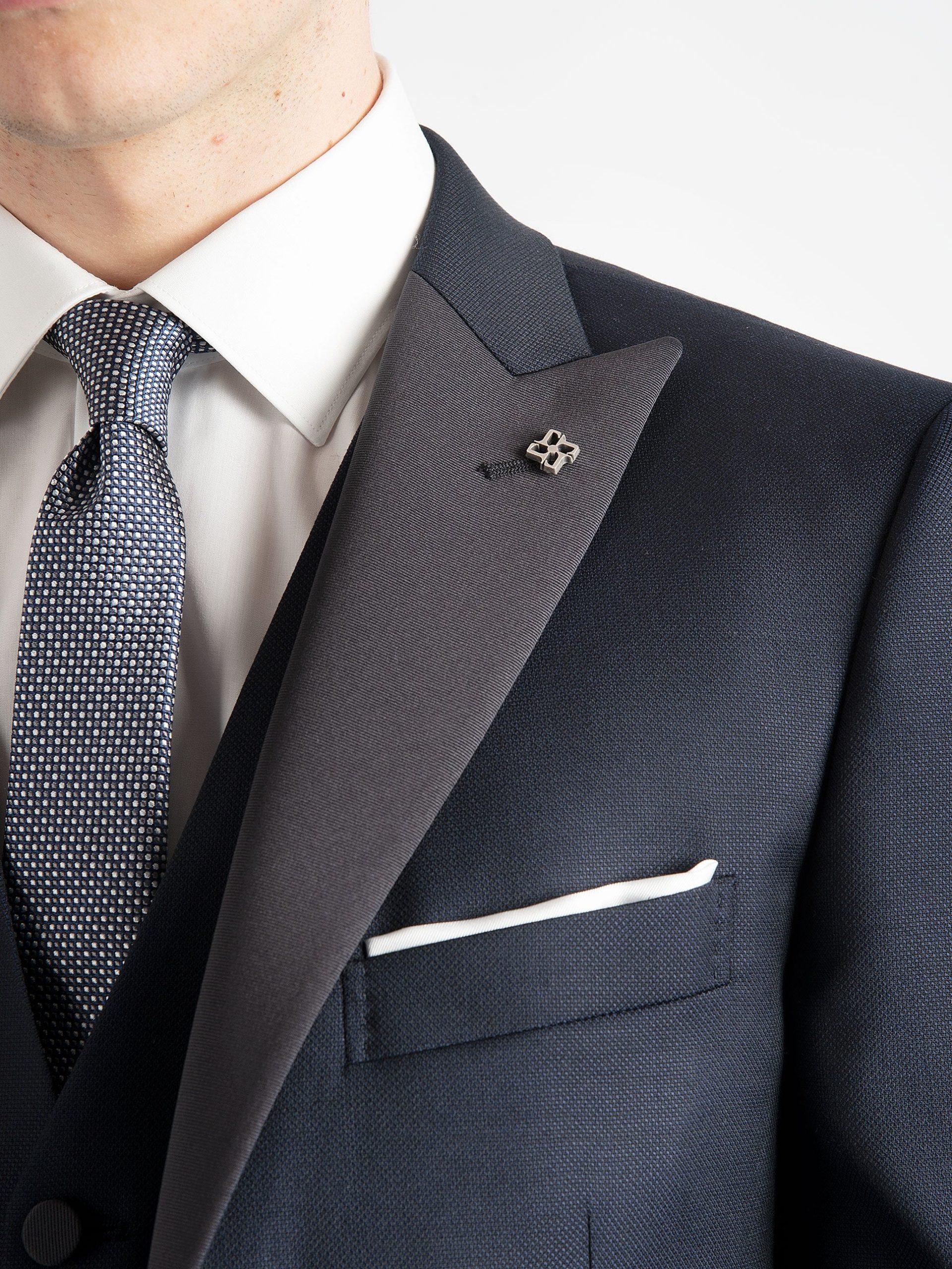 - Smoking sartoriale tre pezzi in 100% lana micro lavorata blu.