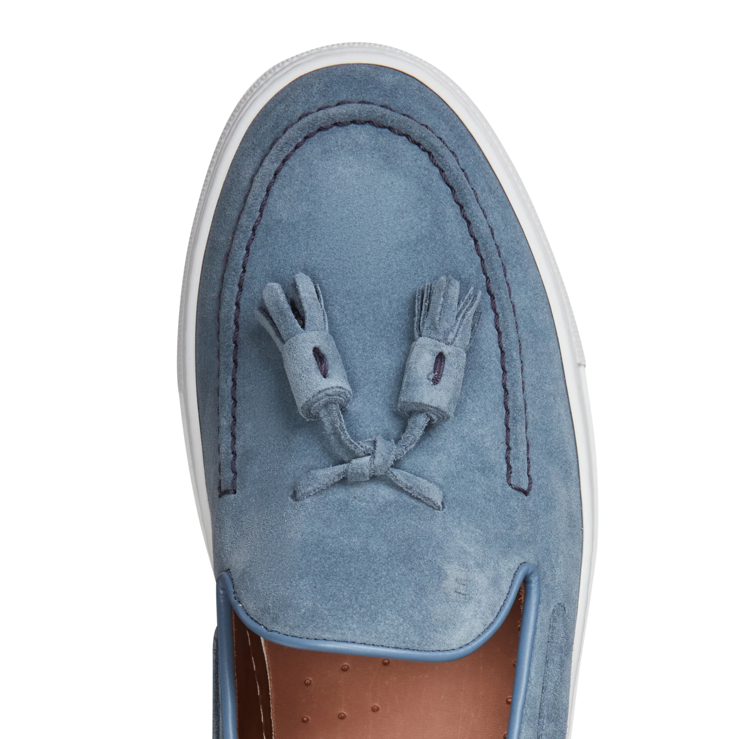 Sneaker con fondo in gomma a cassetta realizzata in morbida pelle scamosciata color blu avio. L’iconico mocassino Brera viene rivisitato in chiave sportiva per unire lo stile casual all’eleganza timeless che lo contraddistingue. Suola in gomma con battistrada personalizzato.