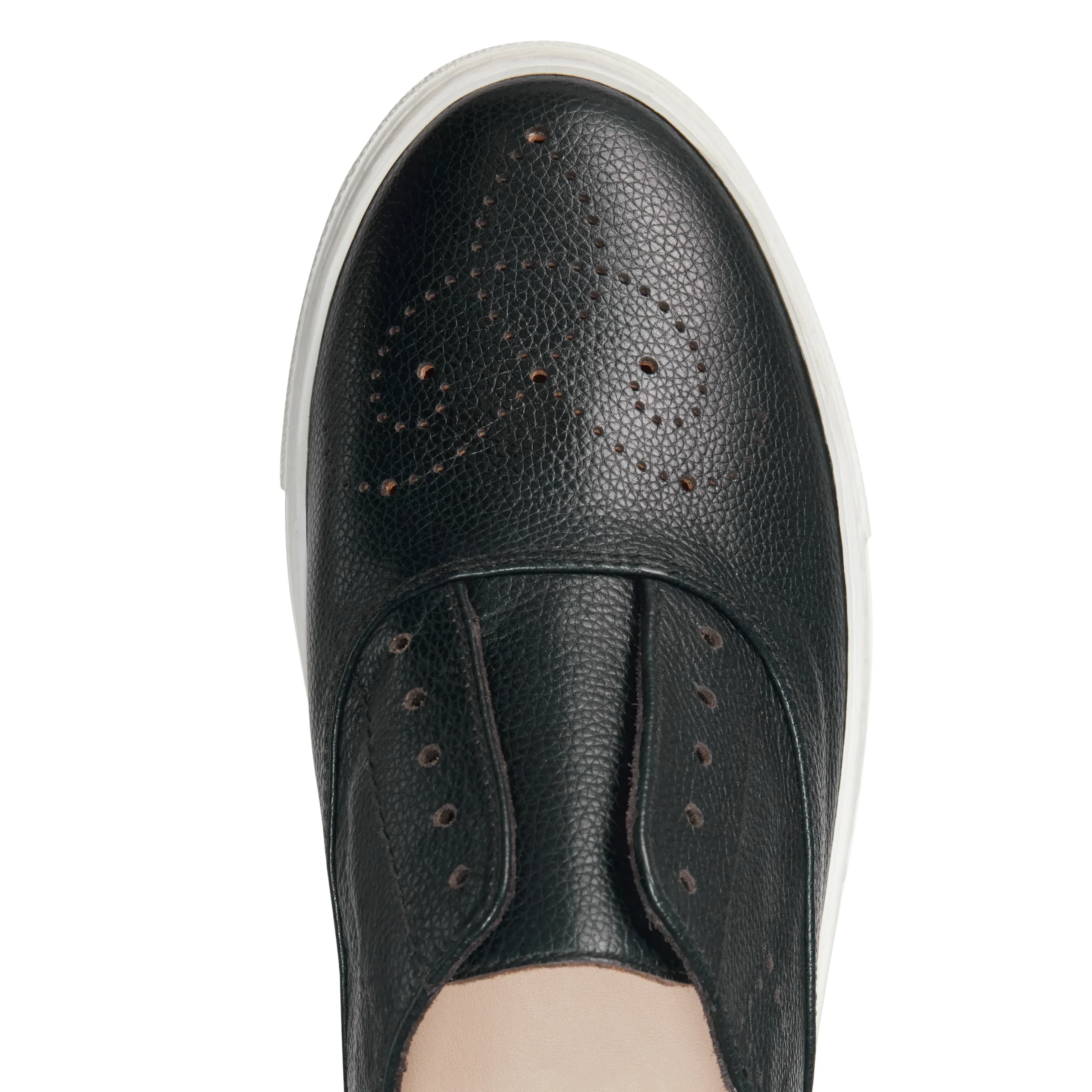 Iconica sneaker Hobo Sport con fondo a cassetta e dettagli di forature, realizzata in morbida pelle nera con grana naturale. Calzatura casual e raffinata che può essere indossata senza lacci grazie a pratici elastici interni. Suola in gomma con battistrada personalizzato.Art. 74709