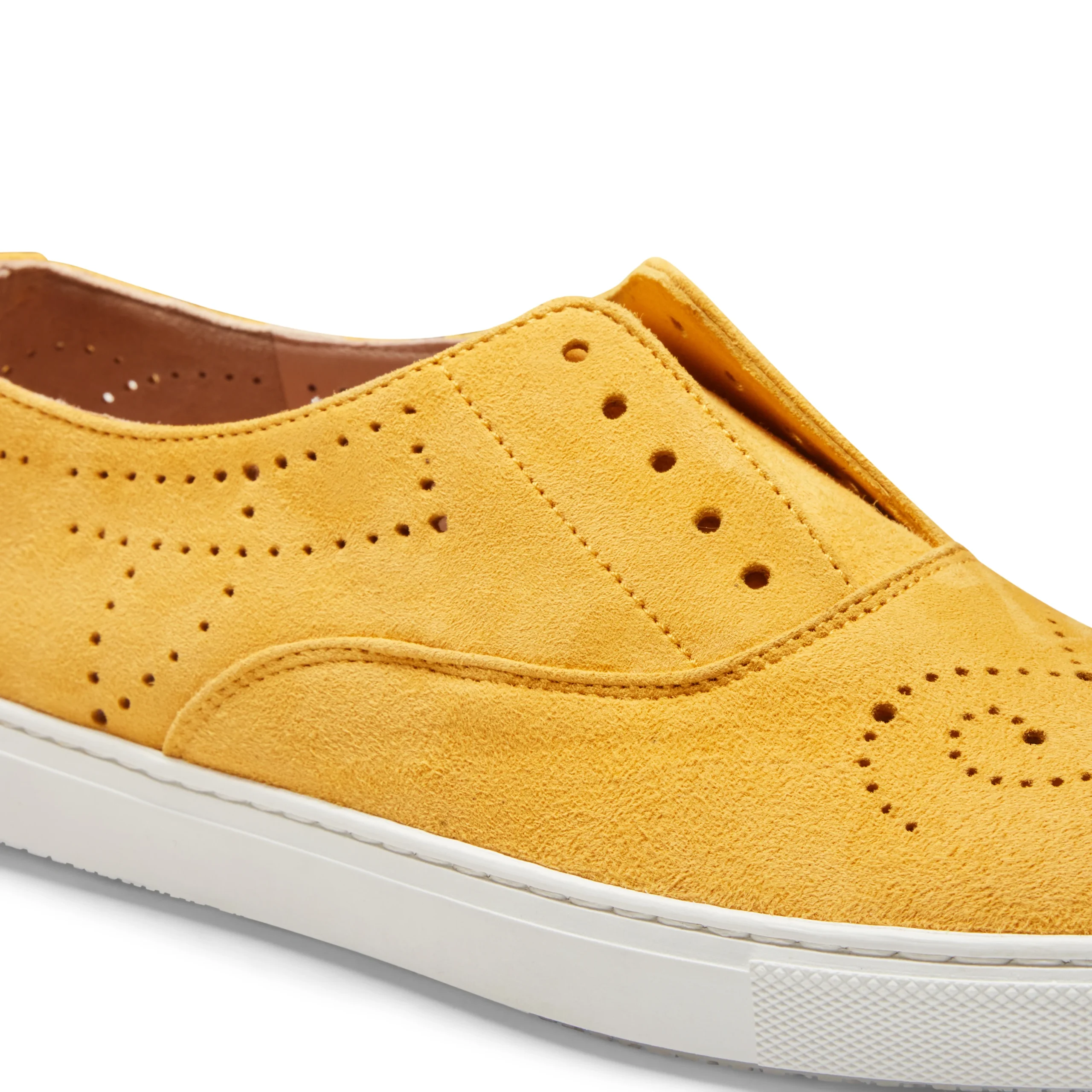 Iconica sneaker Hobo Sport con fondo a cassetta e dettagli di forature, realizzata in morbida pelle scamosciata color giallo. Calzatura casual e raffinata che può essere indossata senza lacci grazie a pratici elastici interni. Suola in gomma con battistrada personalizzato.