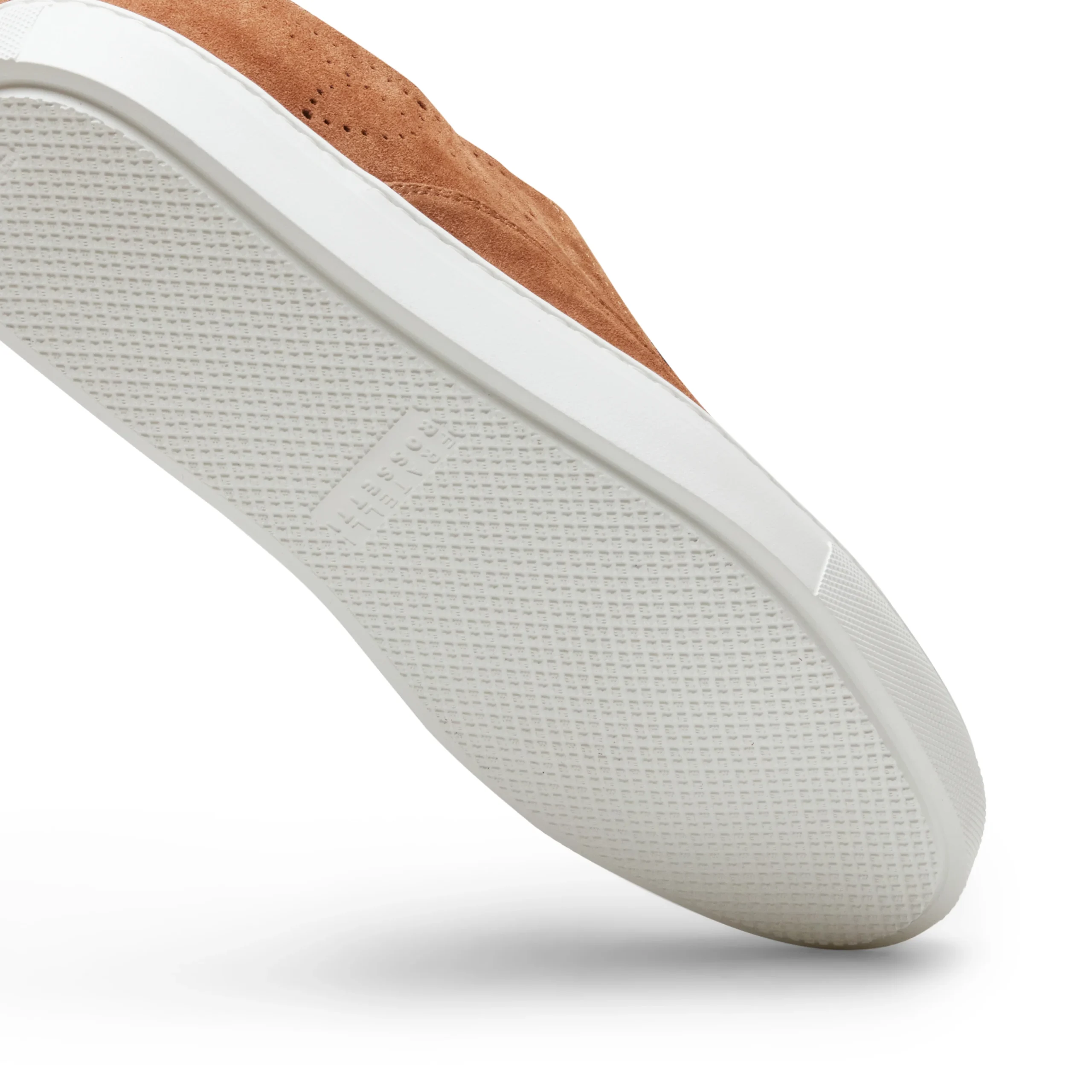 Sneaker Hobo Sport con fondo a cassetta e dettagli di forature, realizzata in morbida pelle scamosciata color tabacco. Calzatura casual e raffinata che può essere indossata senza lacci grazie a pratici elastici interni. Suola in gomma con battistrada personalizzato.