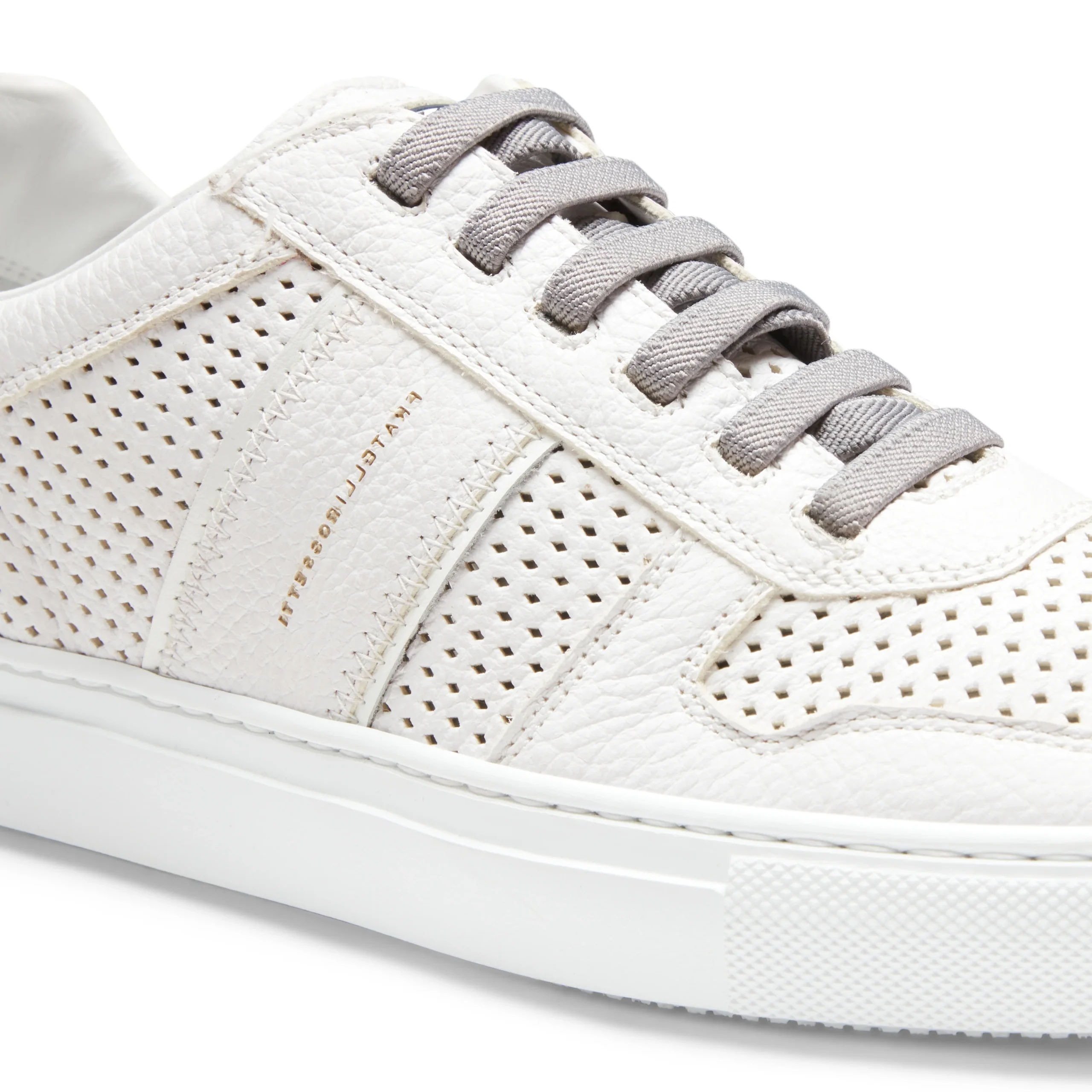 Sneaker con fondo in gomma a cassetta dal design essenziale e contemporaneo. Realizzata in morbida pelle bianca traforata, dona un’immagine fresca e raffinata. Calzatura versatile, ideale per un’eleganza disinvolta e quotidiana.