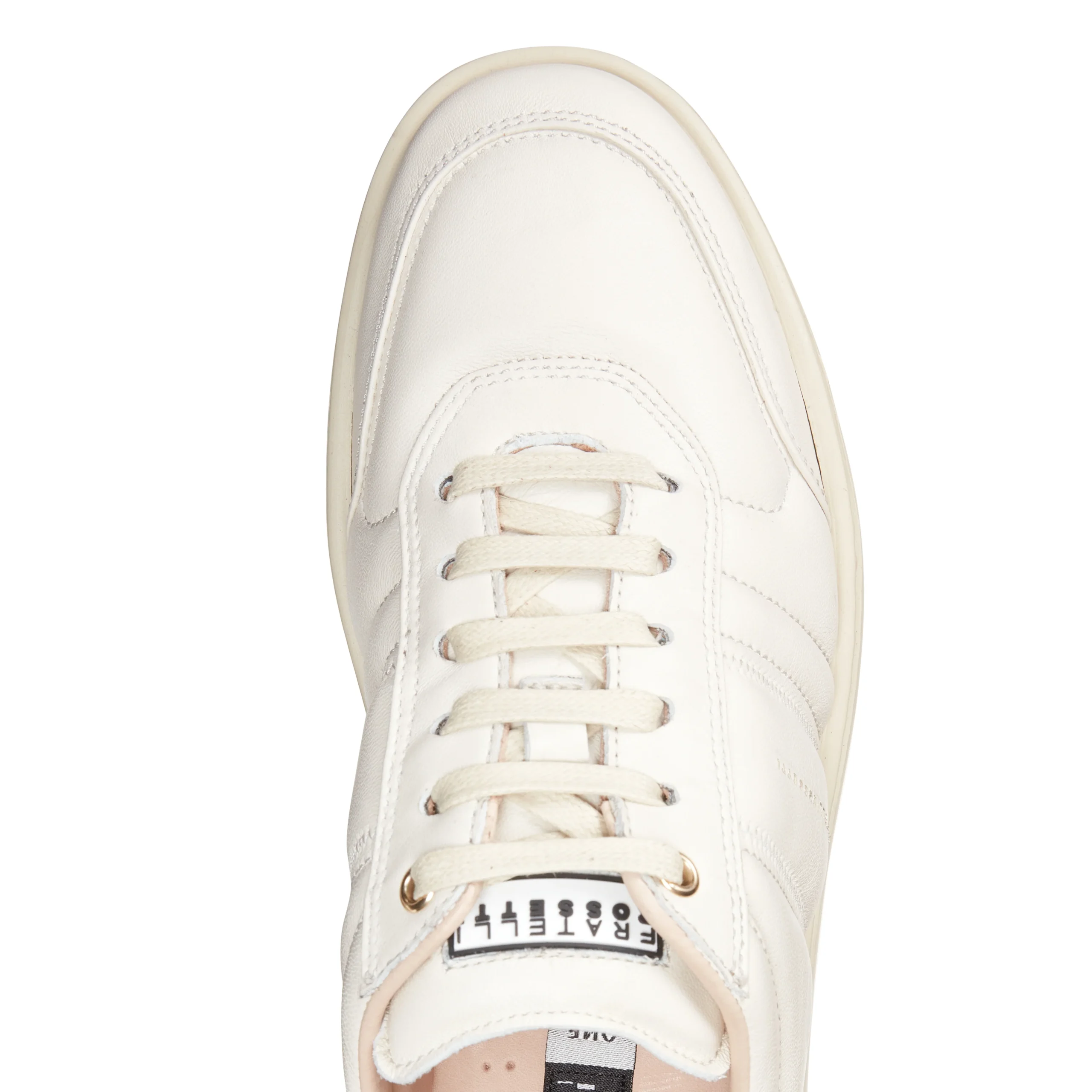 Stile sportivo e dinamico per la sneaker in morbida pelle color latte con dettagli imbottiti in rilievo ad effetto tridimensionale che conferiscono carattere al modello. Caratterizzata dal fondo a cassetta in gomma con battistrada personalizzato antiscivolo.