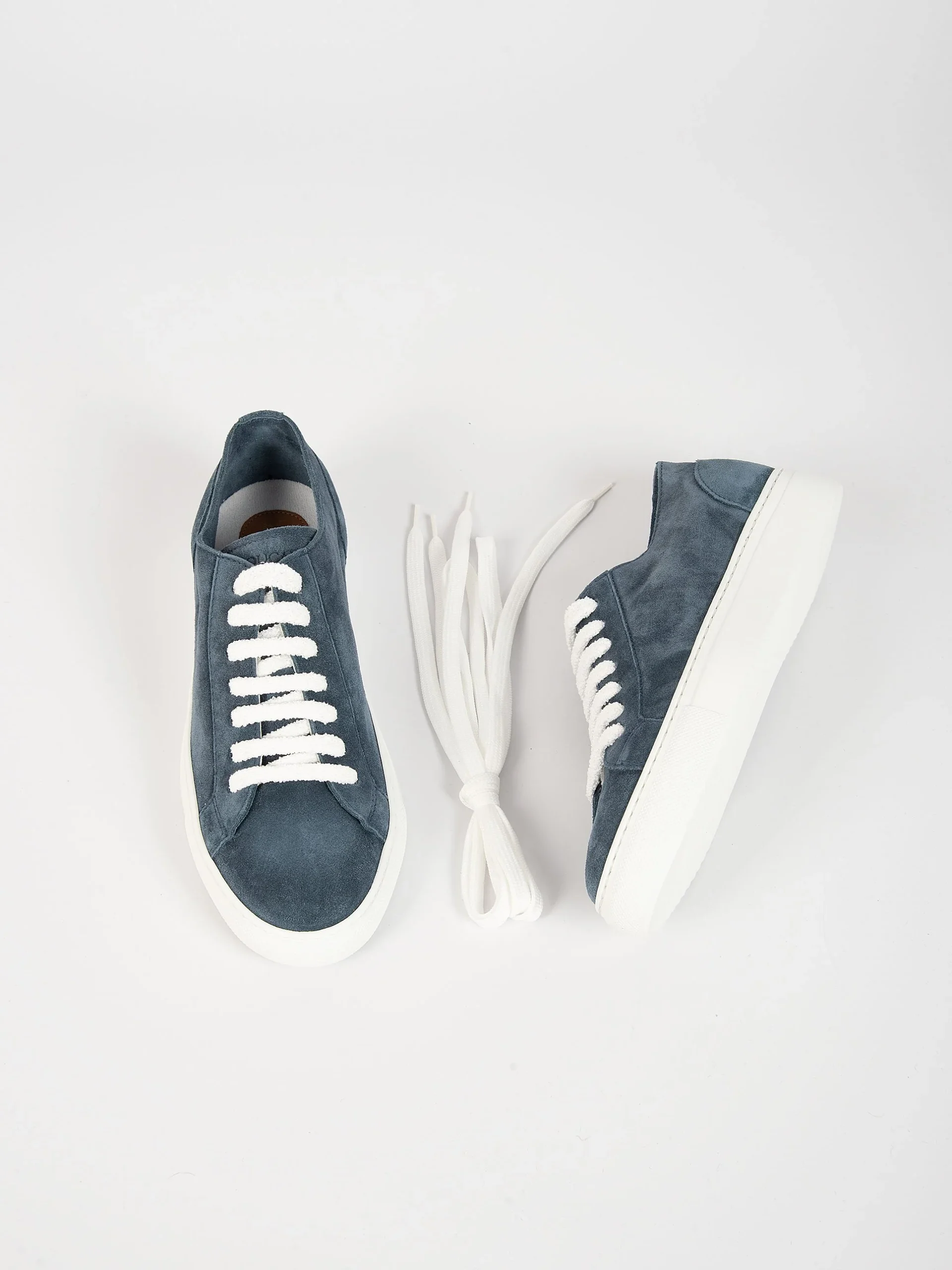 Mod: DU2335ERICUZ106IB22 Sneaker artigianale semi foderata. Suede lavata con cuciture a vivo. Allacciatura a sette occhielli con lacci in spugna. Logo inciso sulla linguetta e rinforzo sul tacco. Fondo in gomma vulcanizzata con brevetto LiveTech®. Soletta interna ergonomica e lacci in cotone di ricambio. 100% Made in Italy. Calzata comoda.