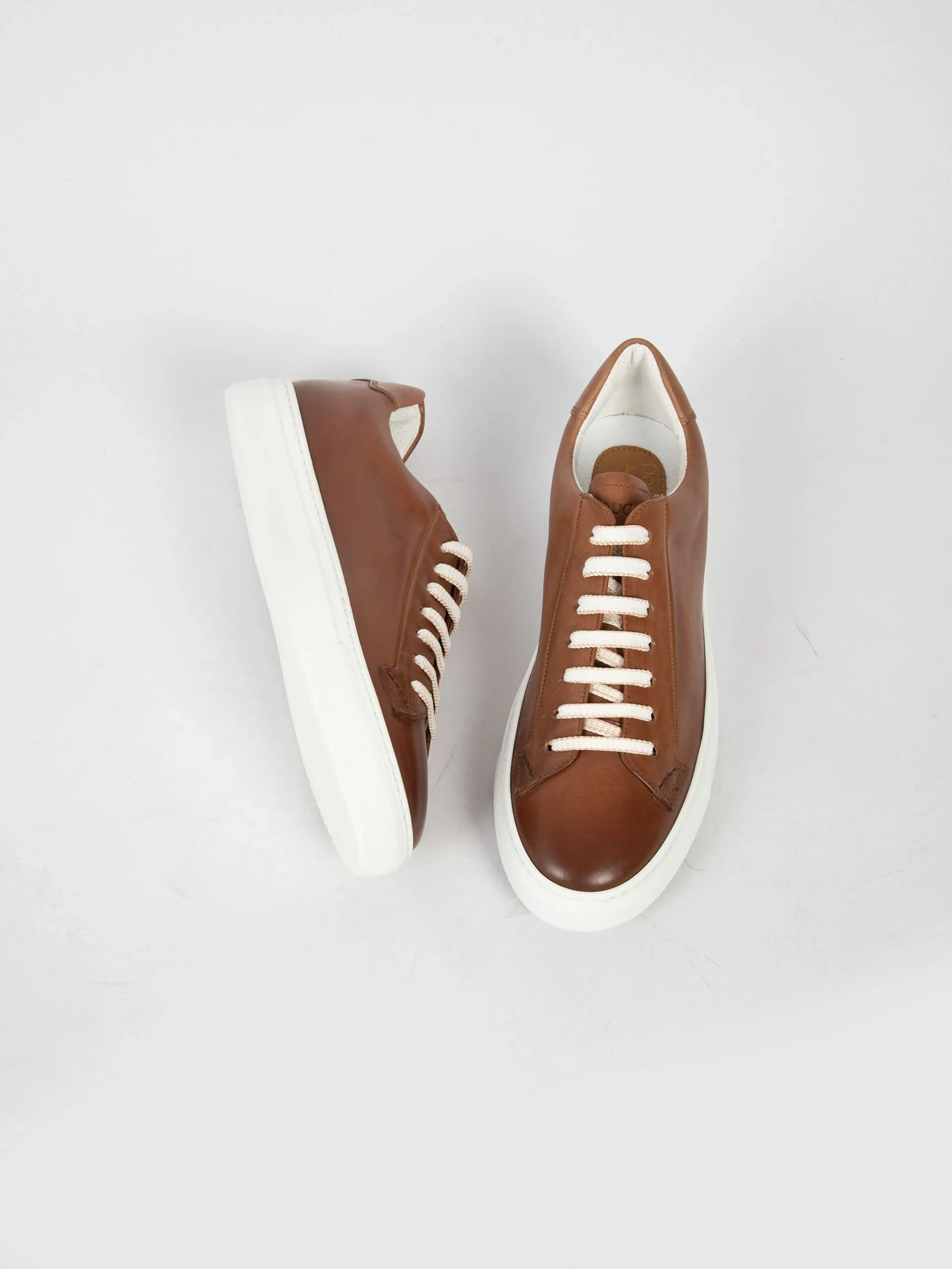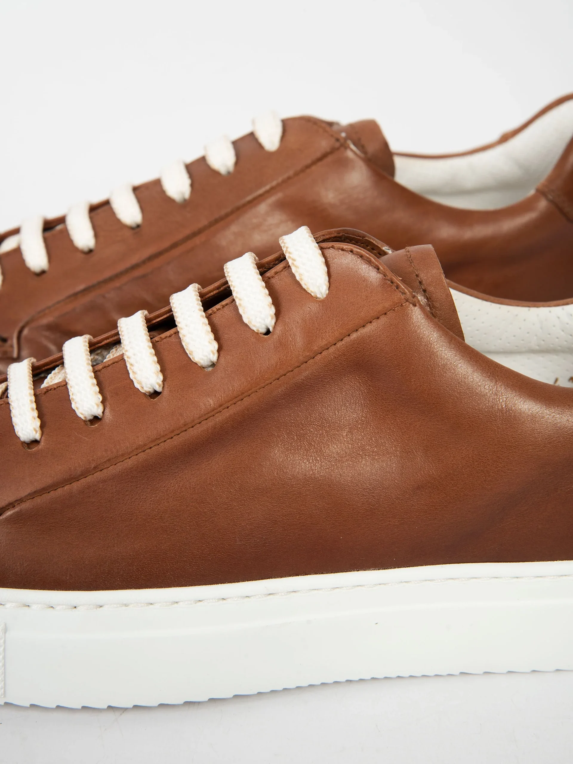 - Sneaker artigianale in pelle liscia anticata e sfumata.