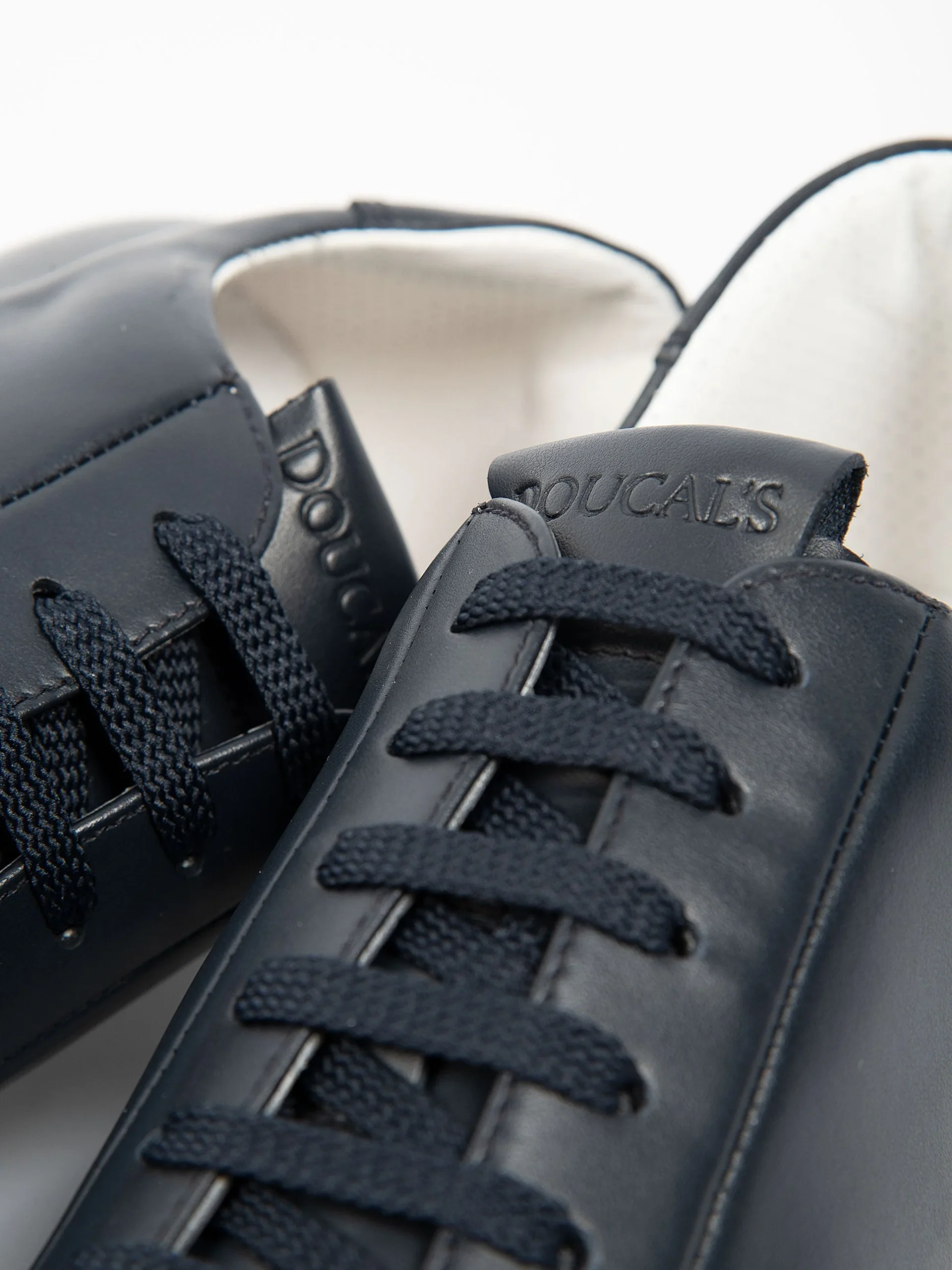 Mod: DU1796ERINUV055IB00 Sneaker artigianale in pelle liscia. Fodera interna in pelle traforata. Allacciatura a sette occhielli con lacci in cotone. Logo inciso sulla linguetta e rinforzo sul tacco. Fondo in gomma vulcanizzata con brevetto LiveTech®. Soletta interna ergonomica. 100% Made in Italy. Calzata comoda rispetto alla norma.