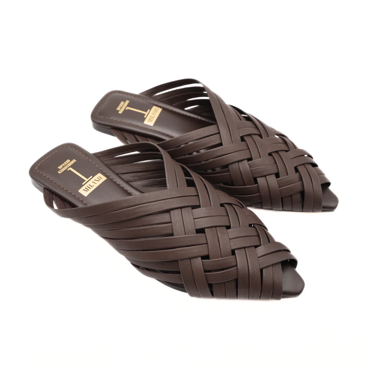 Ciabatta da donna di SPAZIO CORRIDONI. Tomaia realizzata pelle intrecciata testa di moro. Interno e sottopiede, foderati in pelle. Suola in cuoio. Ideale per le tue giornate estive.