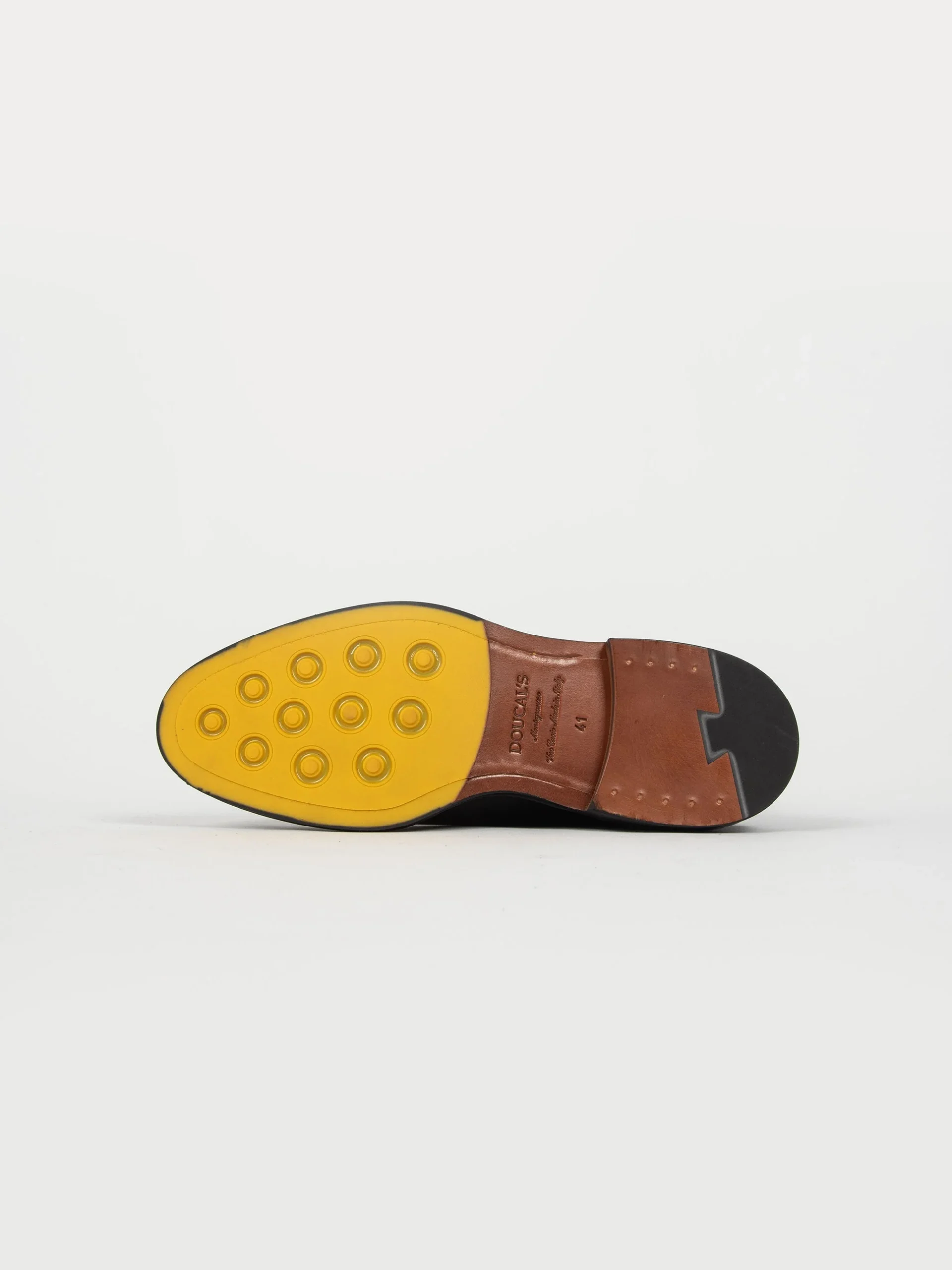 - Suola artigianale in cuoio con inserti antiscivolo in gomma.
