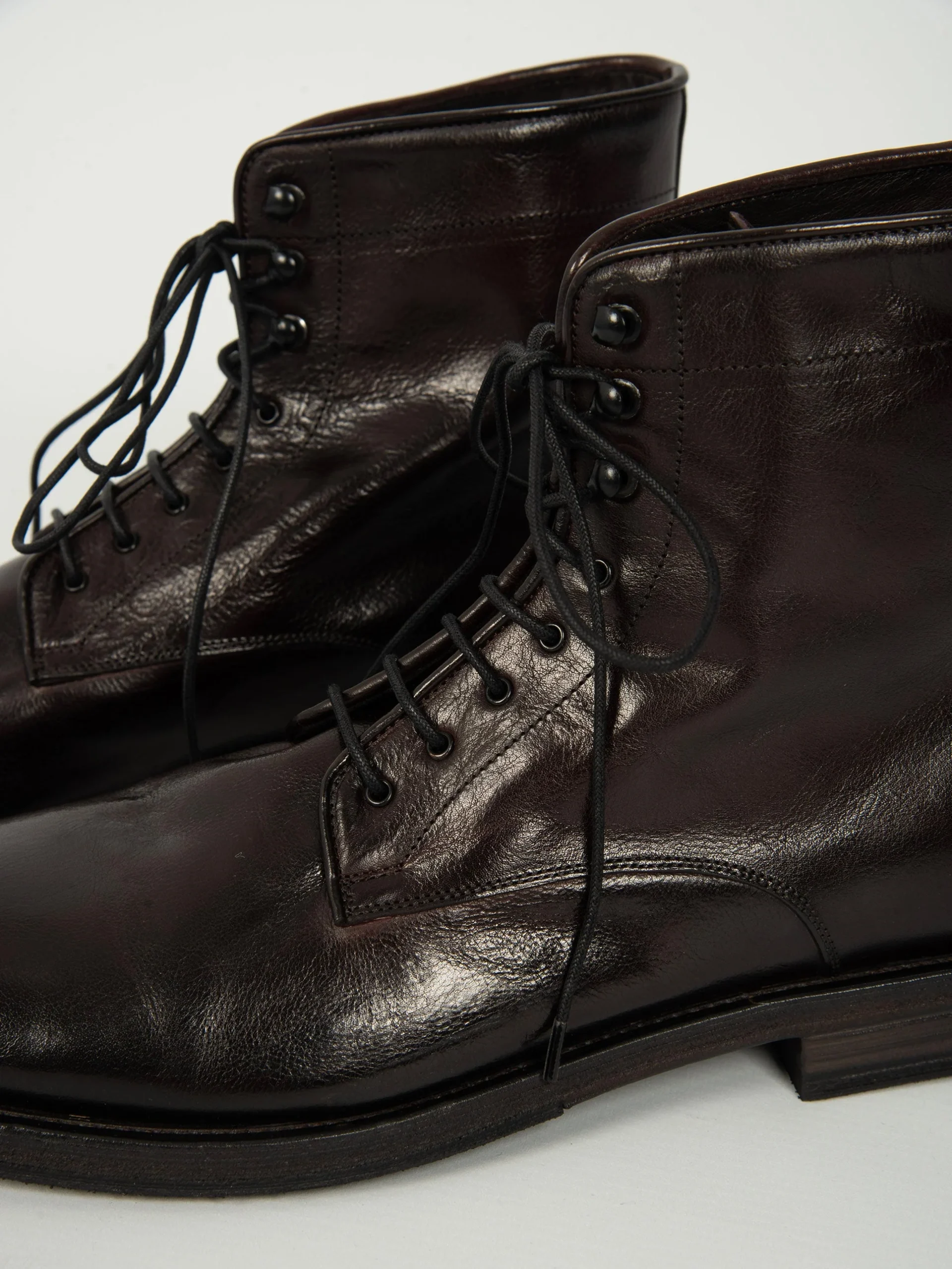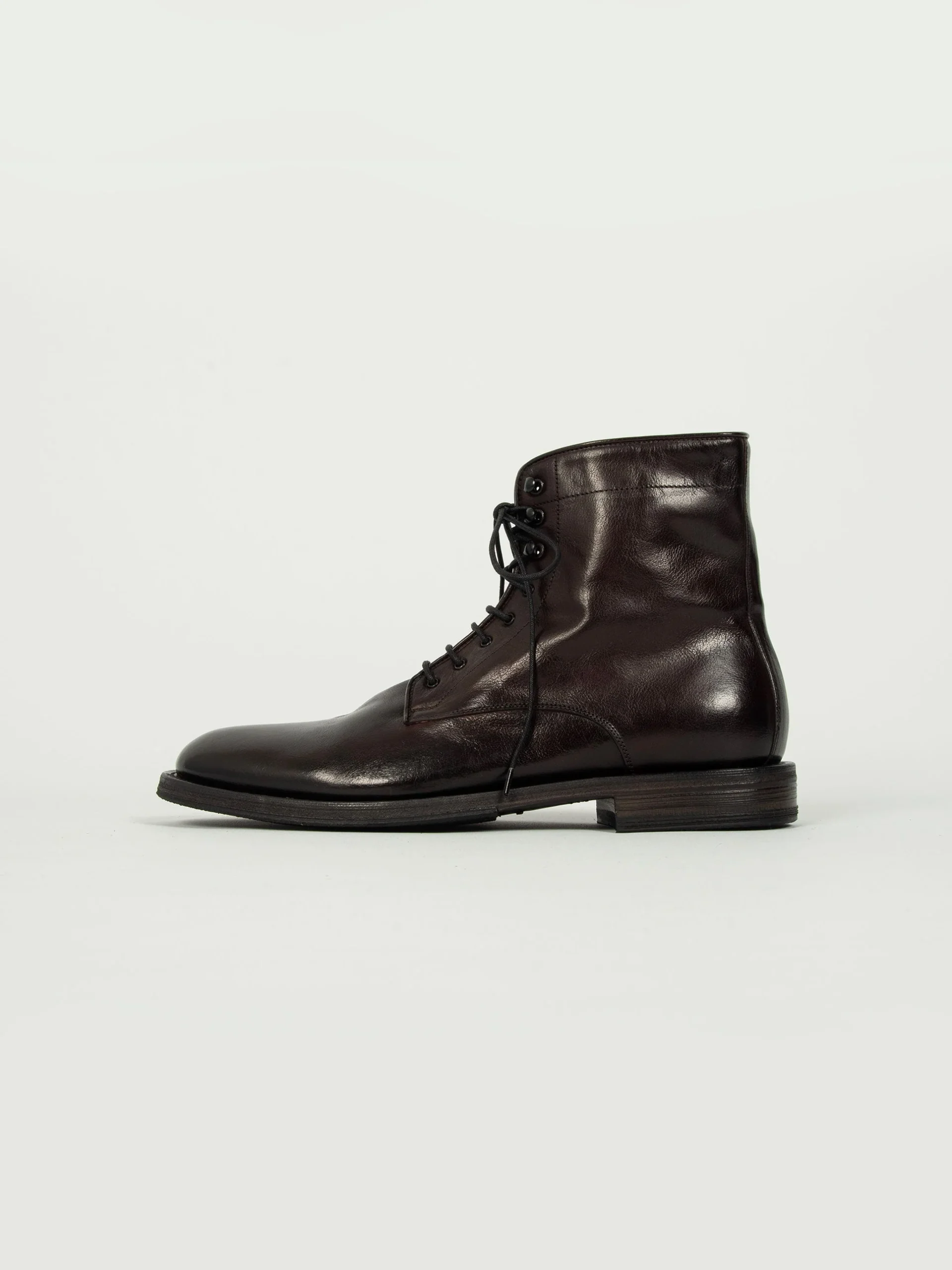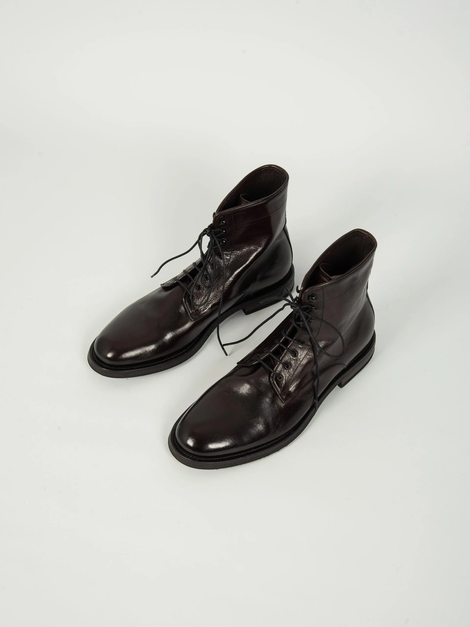 Mod: 15883F LAGOS AUBERGINE 44317 Anfibio artigianale in pelle di bufalo tamponata a mano. Modello con punta tonda leggermente affusolata. Classica allacciatura anfibio con lacci in cuoio e gancetti. Suola ibrida in cuoio e inserti antiscivolo. Altezza tacco 25mm. Prodotto 100% made in Italy. Calzata ampia, si consiglia un numero in meno rispetto alla norma.
