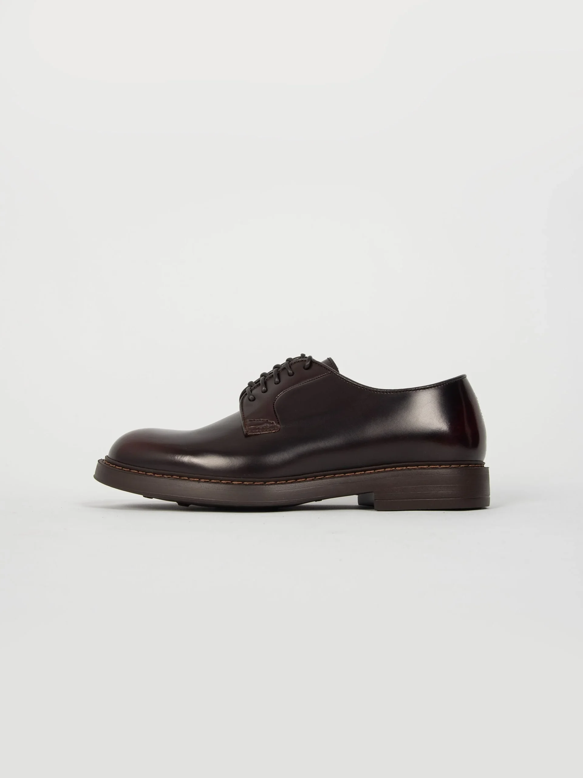 - Allacciatura centrale a cinque occhielli con laccio in pelle.
