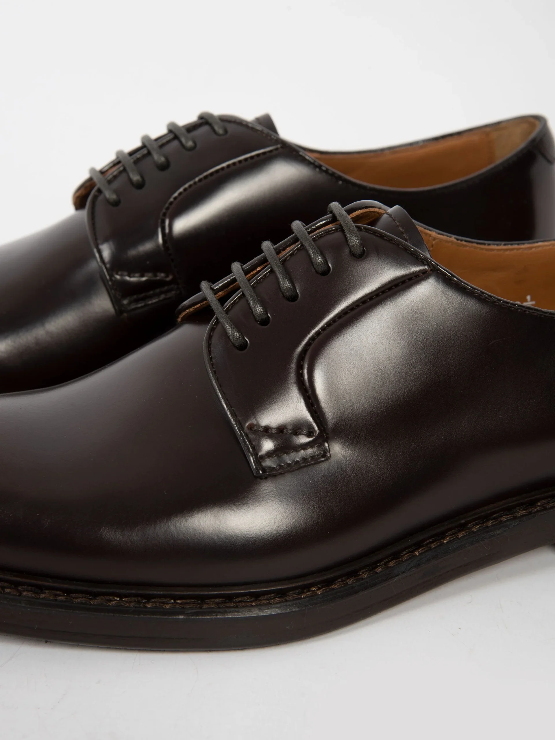 - Stringata artigianale in 100% pelle liscia testa di moro.
