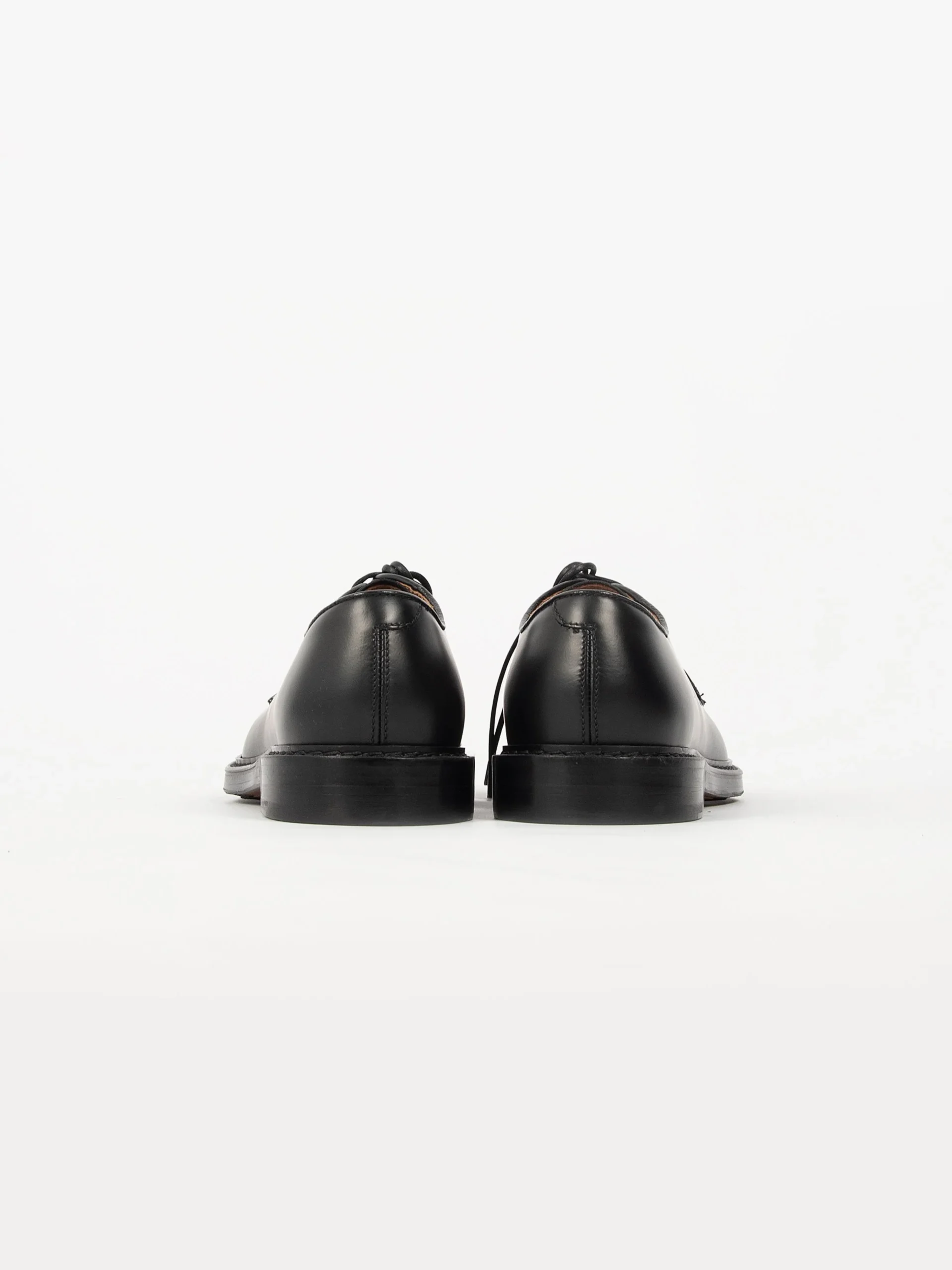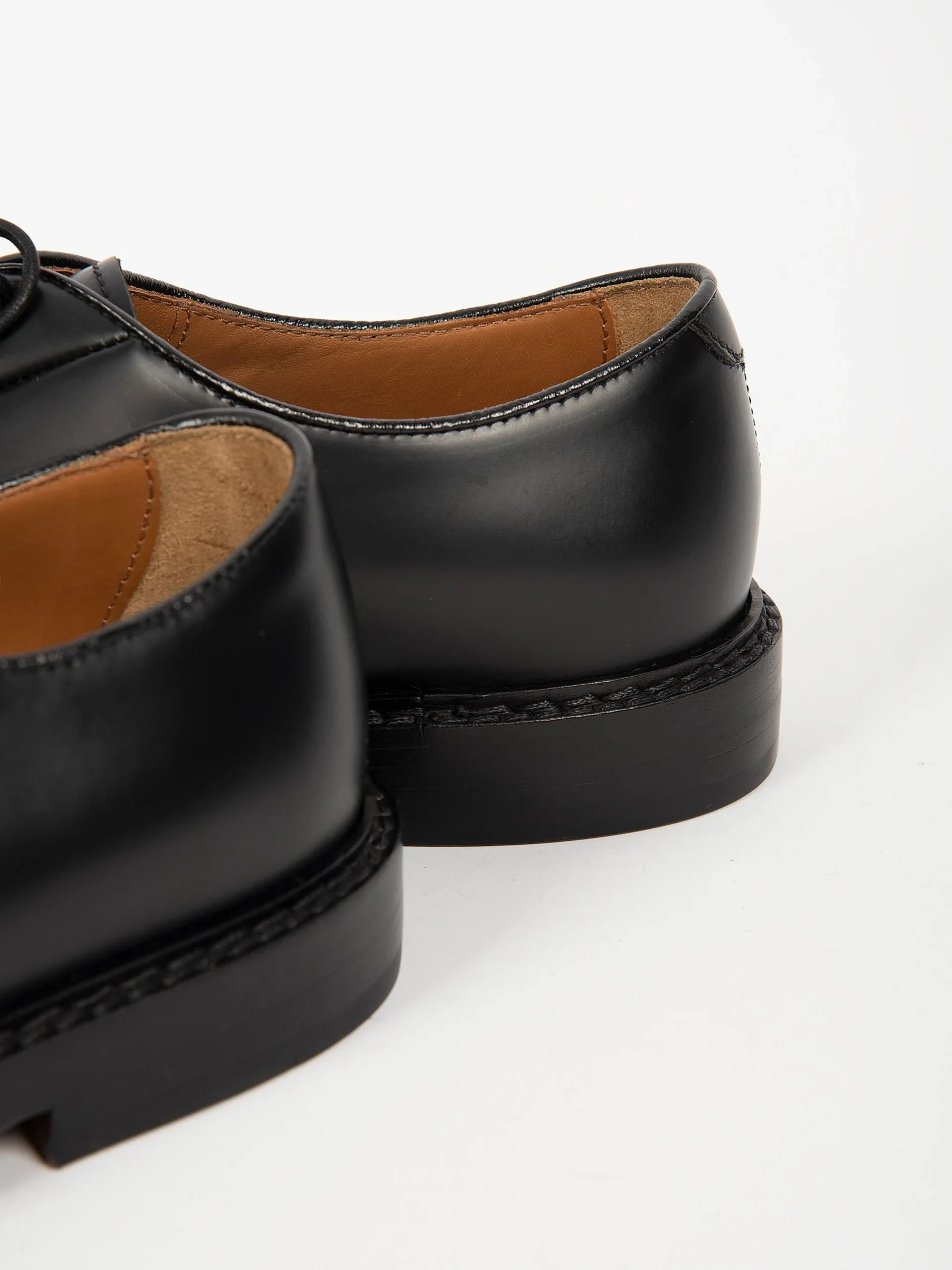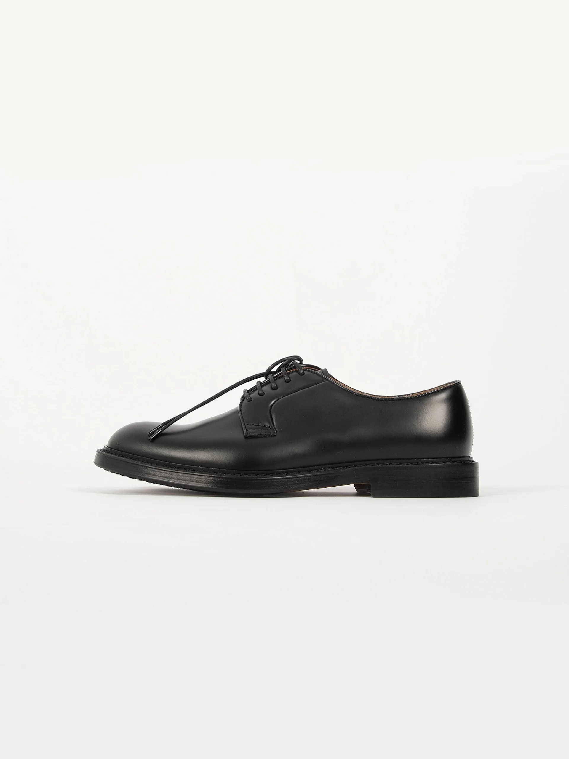 Mod: DU13 SAVOUF Stringata artigianale in 100% pelle liscia nera. Allacciatura centrale a cinque occhielli con laccio in pelle. Suola ibrida in cuoio con inserti anti scivolo in gomma. Pianta larga. 100% costruzione artigianale italiana. Calzata ampia, si consiglia un numero in meno rispetto alla norma.