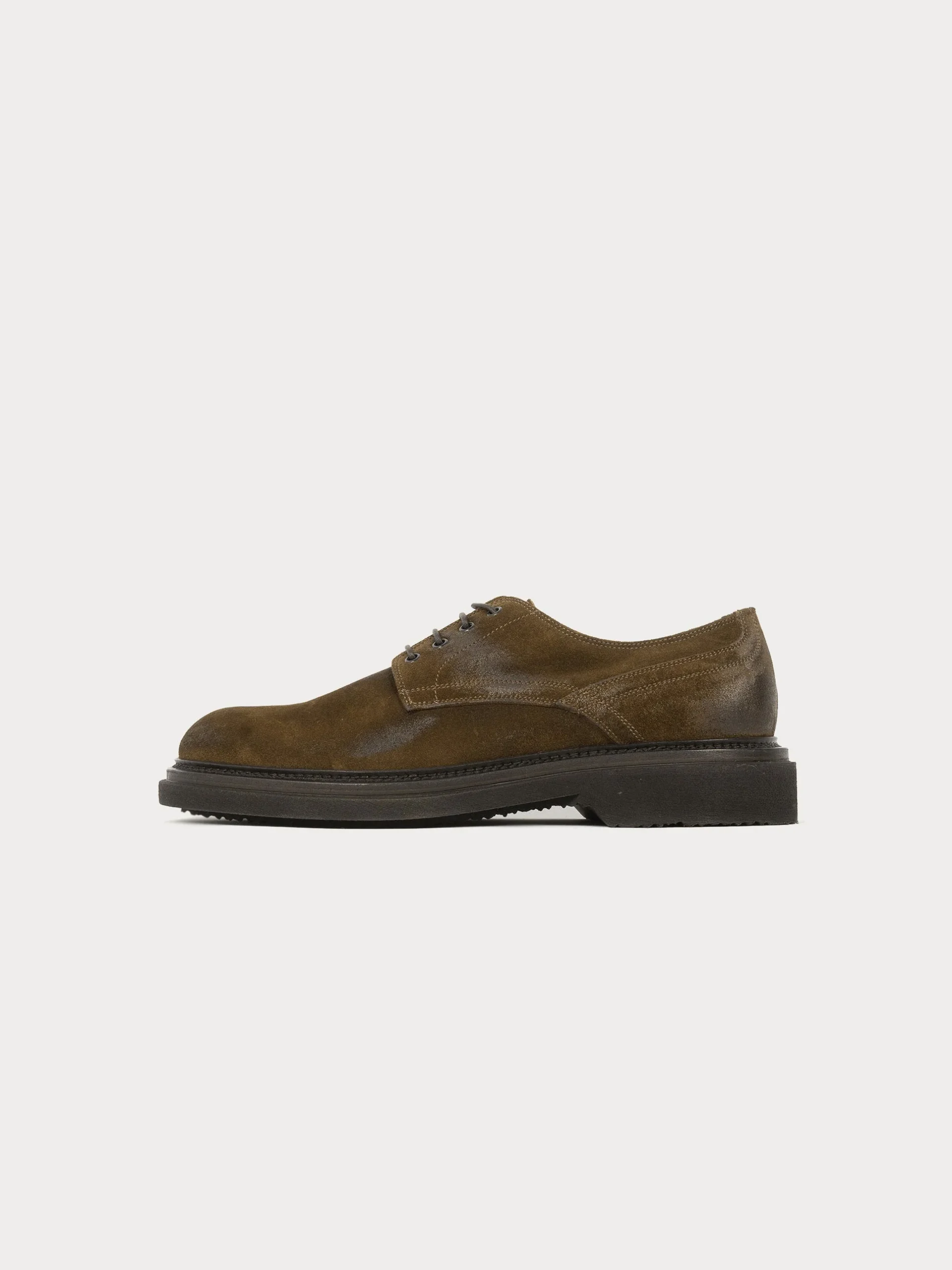 Mod: 18384A PERRY MIGNOLE 46712 Stringata artigianale in morbida suede spazzolato. Modello con punta tonda leggermente affusolata. Classica allacciatura con lacci in cuoio. Fondo in gomma extralight con guardolo caricato in cuoio. Prodotto 100% made in Italy. Calzata ampia, si consiglia un numero in meno rispetto alla norma.