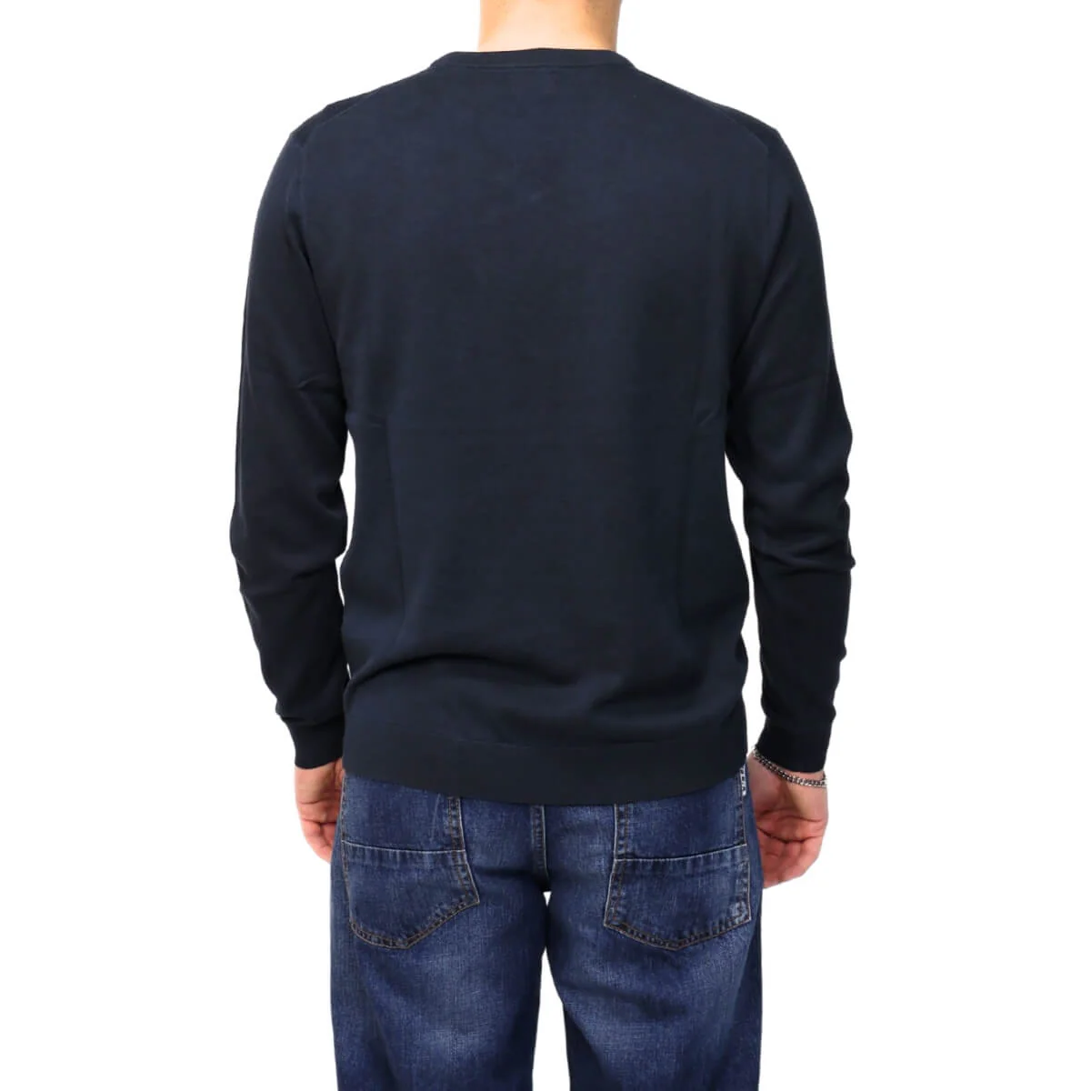 La tonalità blu, profonda e versatile, si integra facilmente in numerosi abbinamenti. Si adatta con naturalezza a denim, pantaloni casual o outfit più ordinati, diventando un elemento affidabile del guardaroba maschile. Il dettaglio del logo aggiunge un segno distintivo discreto che valorizza l’insieme senza eccessi.
