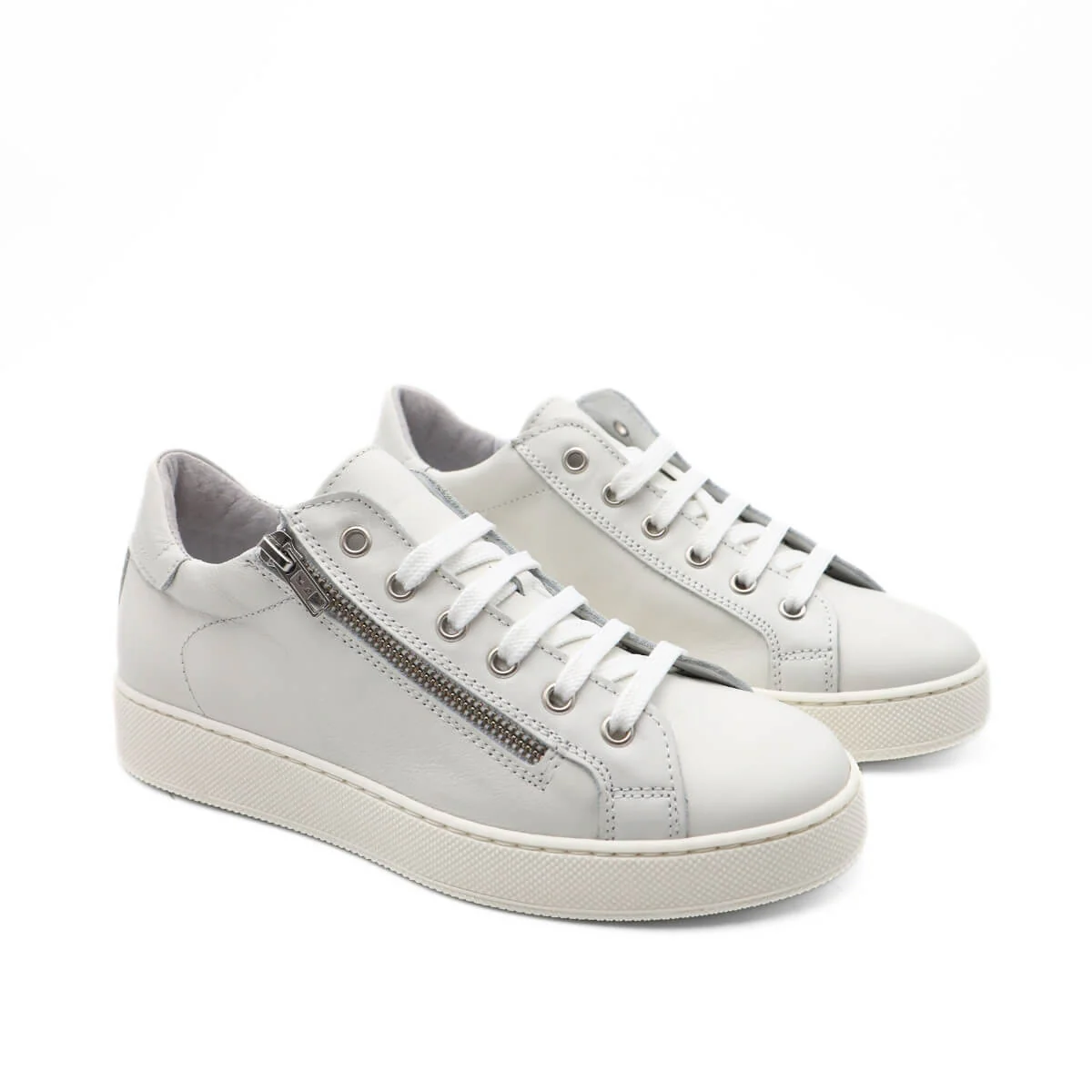 Queste sneakers sono realizzate in pelle bianca, un materiale naturale che trasmette una sensazione di morbidezza al tatto e una piacevole sensazione di comfort. La pelle sulla tomaia dona un aspetto pulito e luminoso al bianco, rendendo la sneaker adatta a numerose combinazioni di abbigliamento. Le superfici in pelle si apprezzano per la loro morbidezza e per la sensazione di qualità quando le tocchi, dando un senso di cura artigianale.