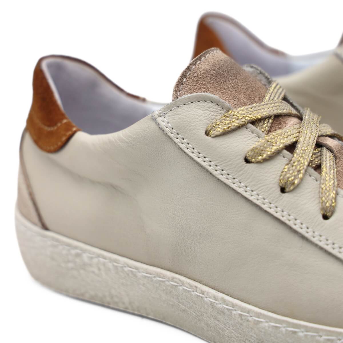 Quando le tocchi, la pelle si presenta liscia e piacevole, con una sensazione al tatto che trasmette cura artigianale e materiali selezionati. Il colore neutro si adatta con naturalezza a diverse combinazioni di abbigliamento, dal casual urbano agli outfit più curati, rendendo queste sneakers una scelta facile da inserire in molte situazioni quotidiane.